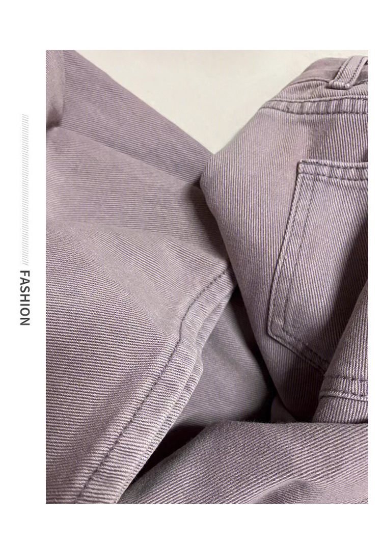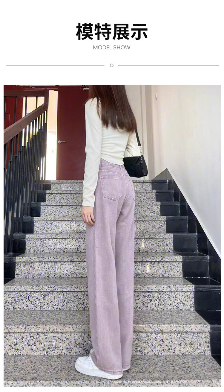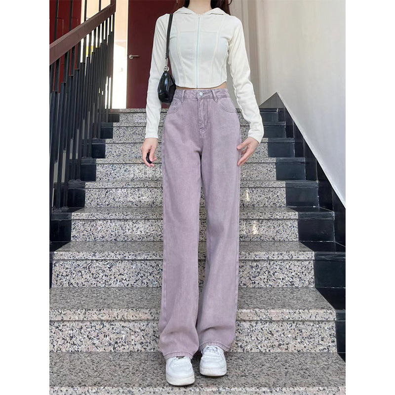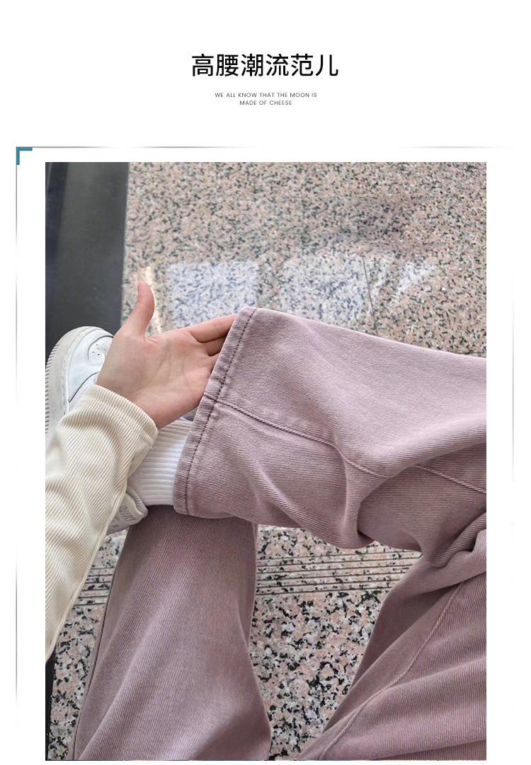오래 된 보라색 스트레이트 청바지 여성의 봄 높은 허리 느슨한 학생 슬리밍 디자인 센스 드레이핑 넓은 다리 바닥 바지스토어 가기