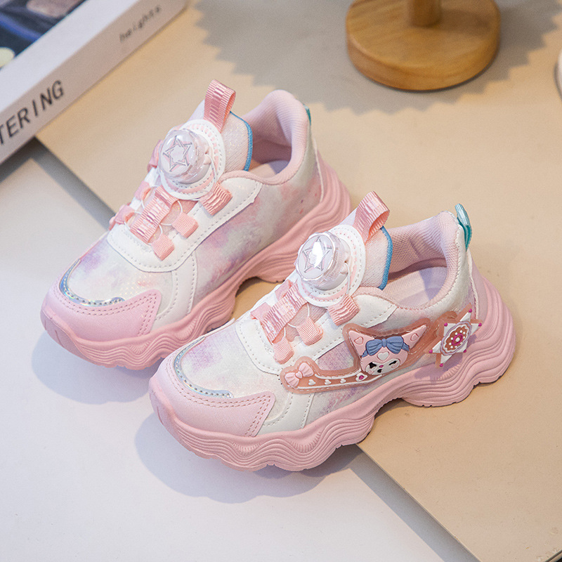 가을 2024 새로운 쿠로미 가죽 어린이 운동화 소녀 공주 신발 회전 버튼 실행 토레 신발