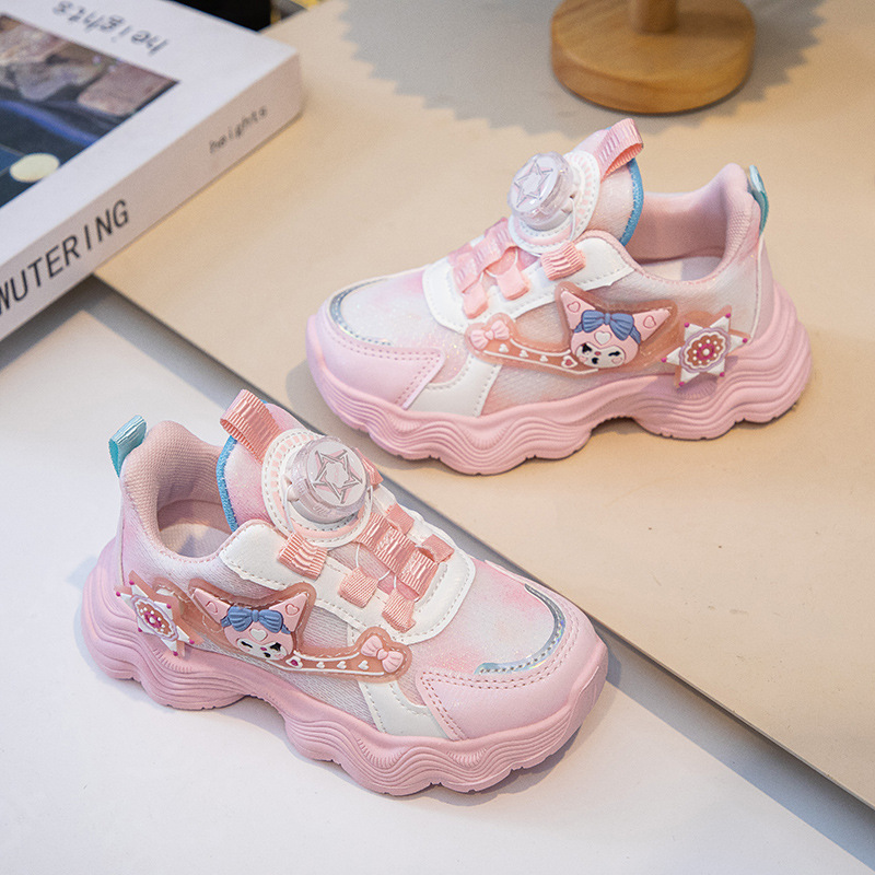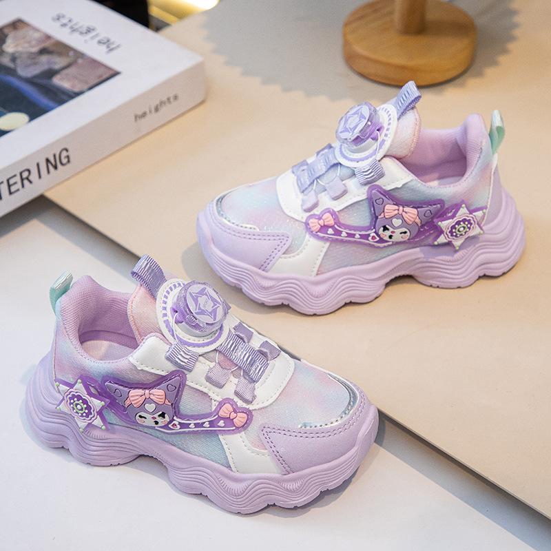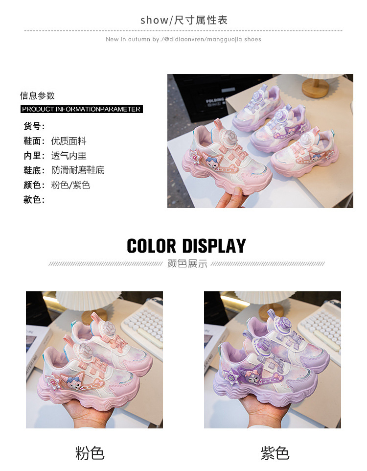 가을 2024 새로운 쿠로미 가죽 어린이 운동화 소녀 공주 신발 회전 버튼 실행 토레 신발스토어 가기