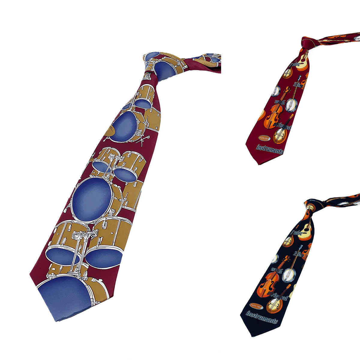 국경 간 AliExpress temu 남성 8cm 악기 개성 넥타이, 기타 드럼 세트 패션 넥타이, 칼라