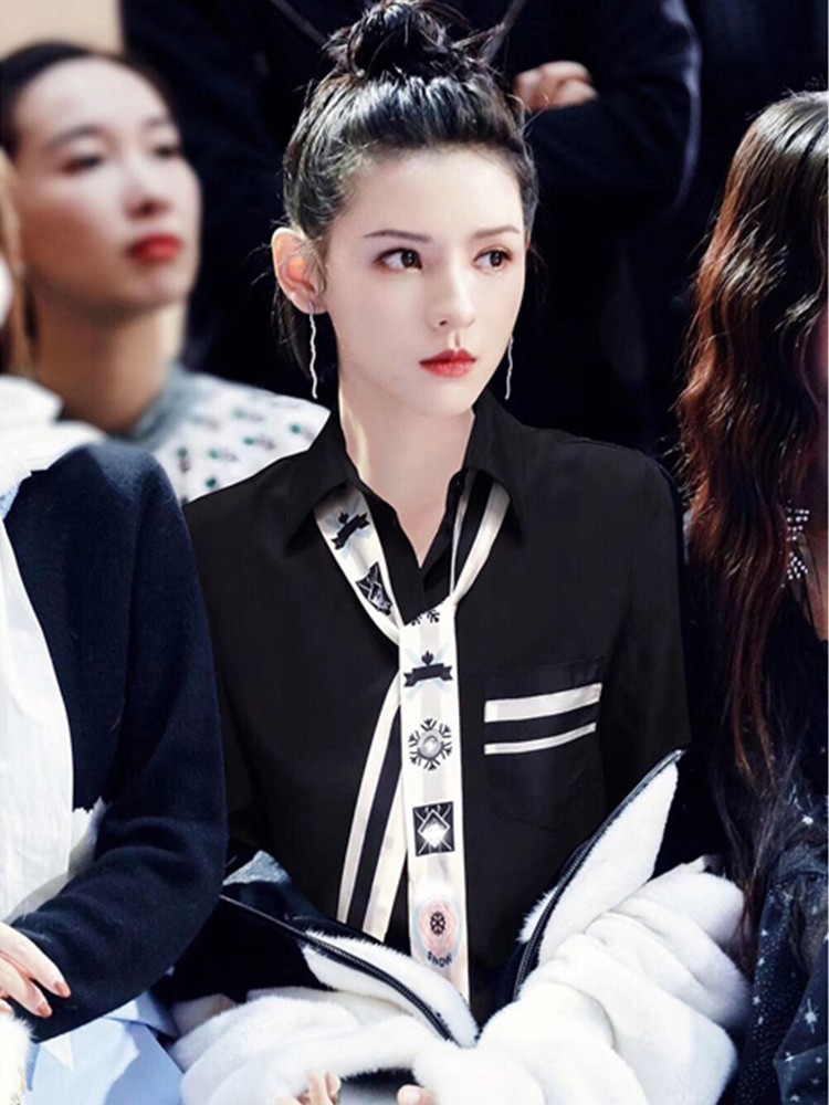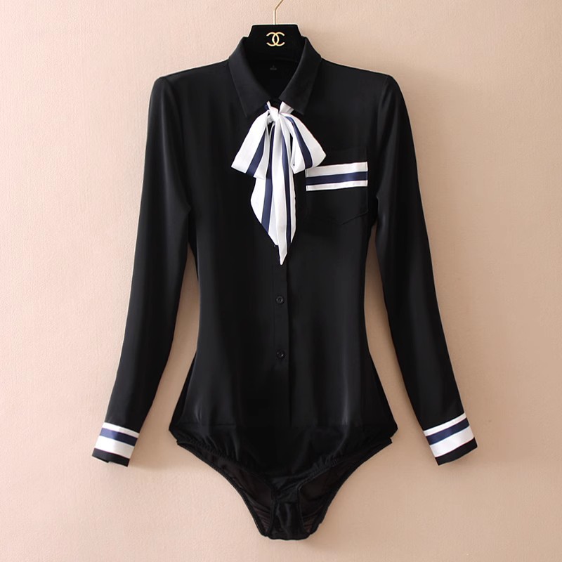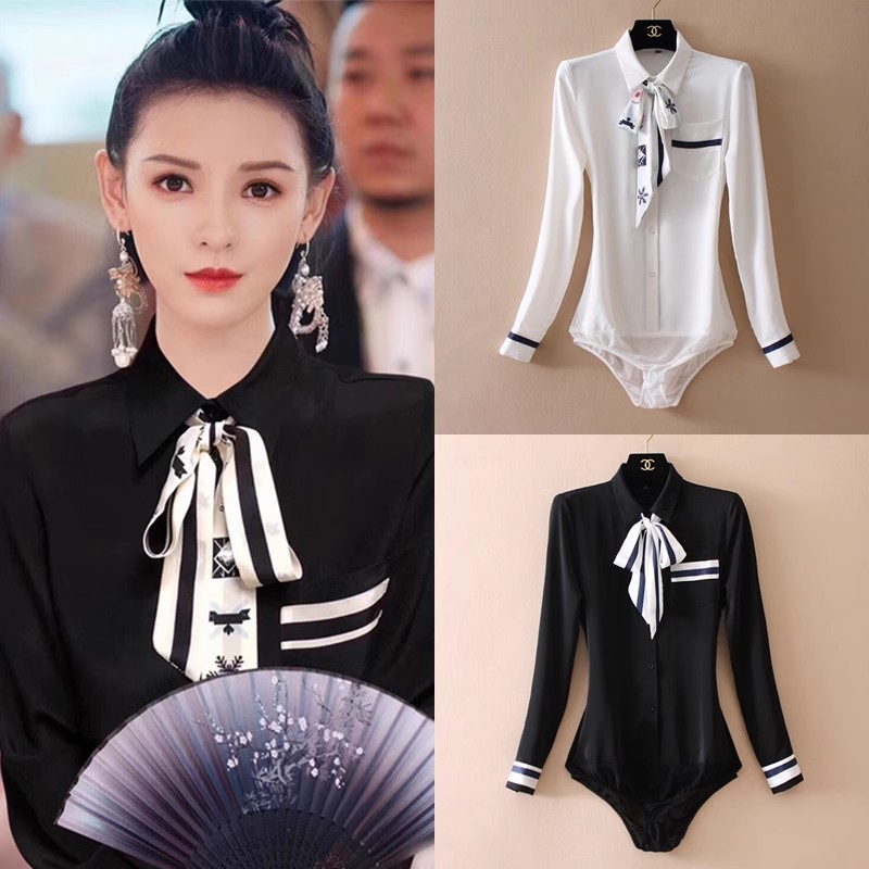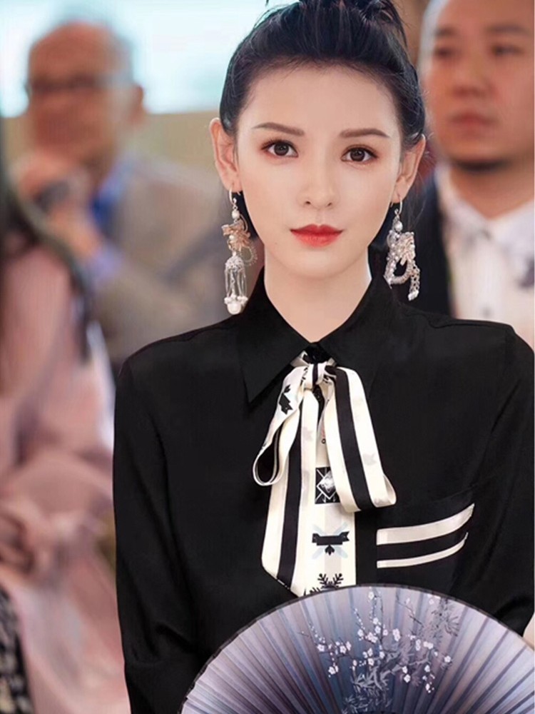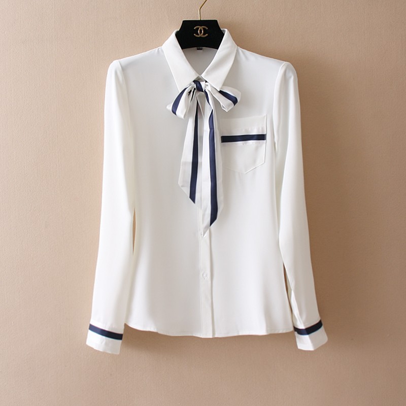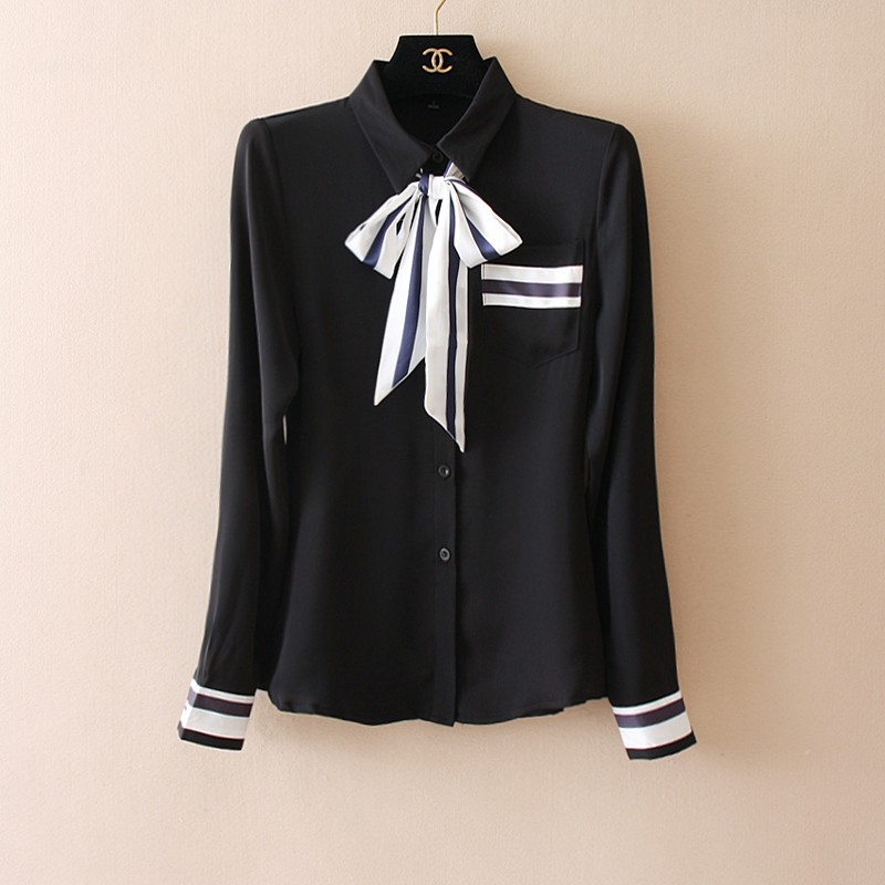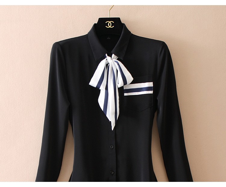 리본 활 고급 긴 소매 쉬폰 주름 방지 셔츠 여성용 Crotch OL 새로운 블랙 원피스와 스타스토어 가기