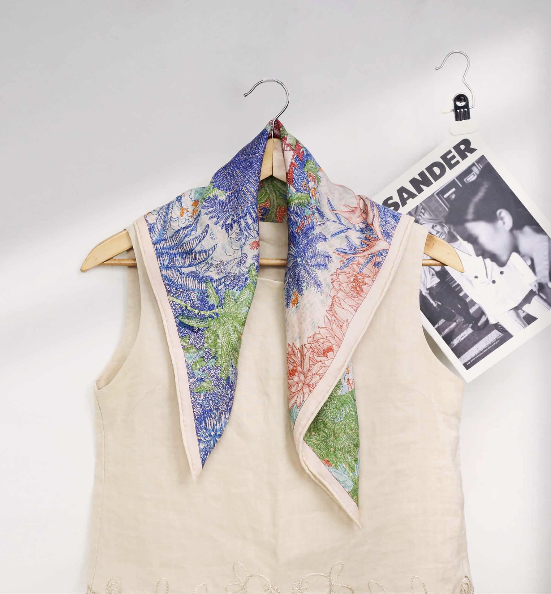 [푸바오 열대 우림] 새로운 양면 다른 색상의 실크 울 중간 사각형 스카프 실크 울 다용도 스카프 여성용 숄 스카프