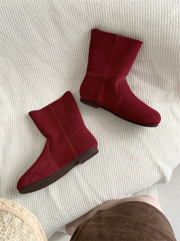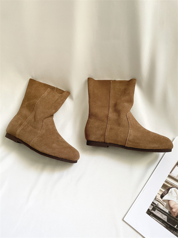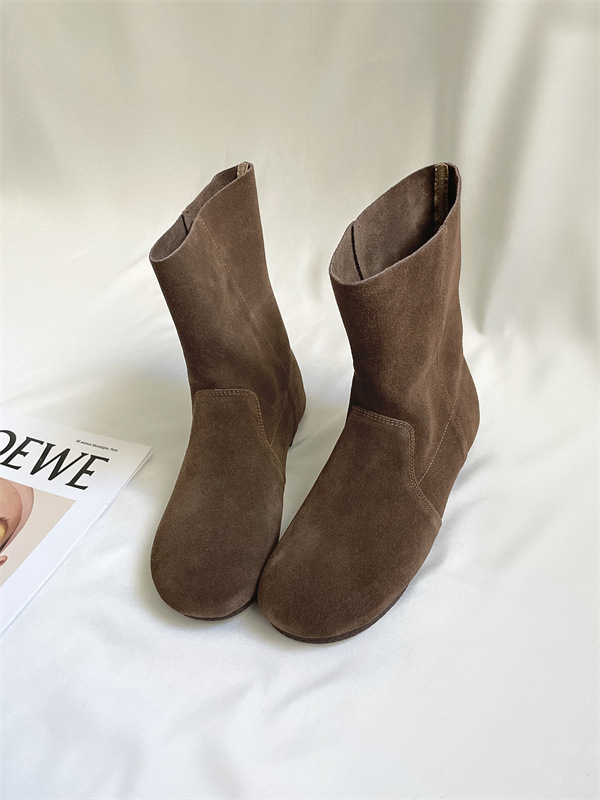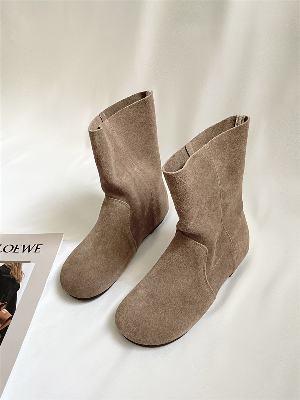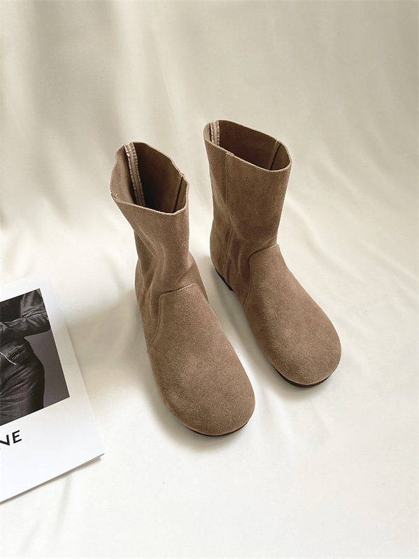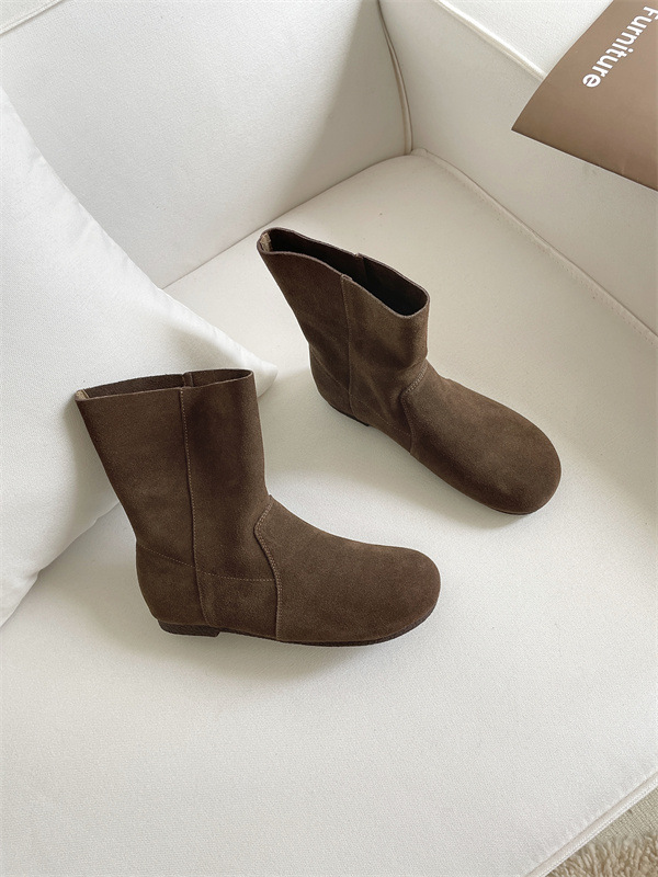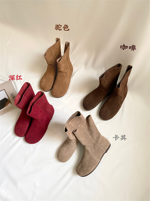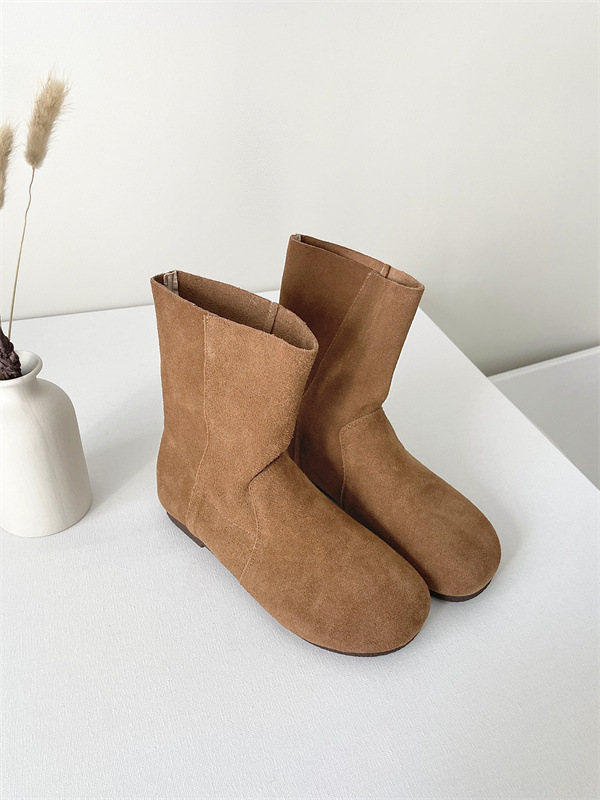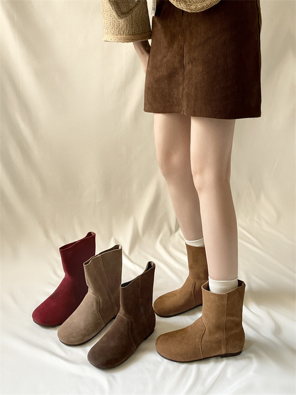 라운드토 천연가죽 숏부츠 레트로 마틴부츠 여성화 2025 가을 겨울 신상 스웨이드 가죽 슬립온 앵클부츠