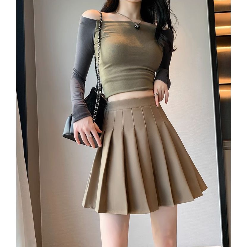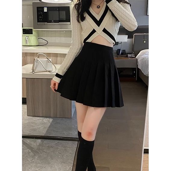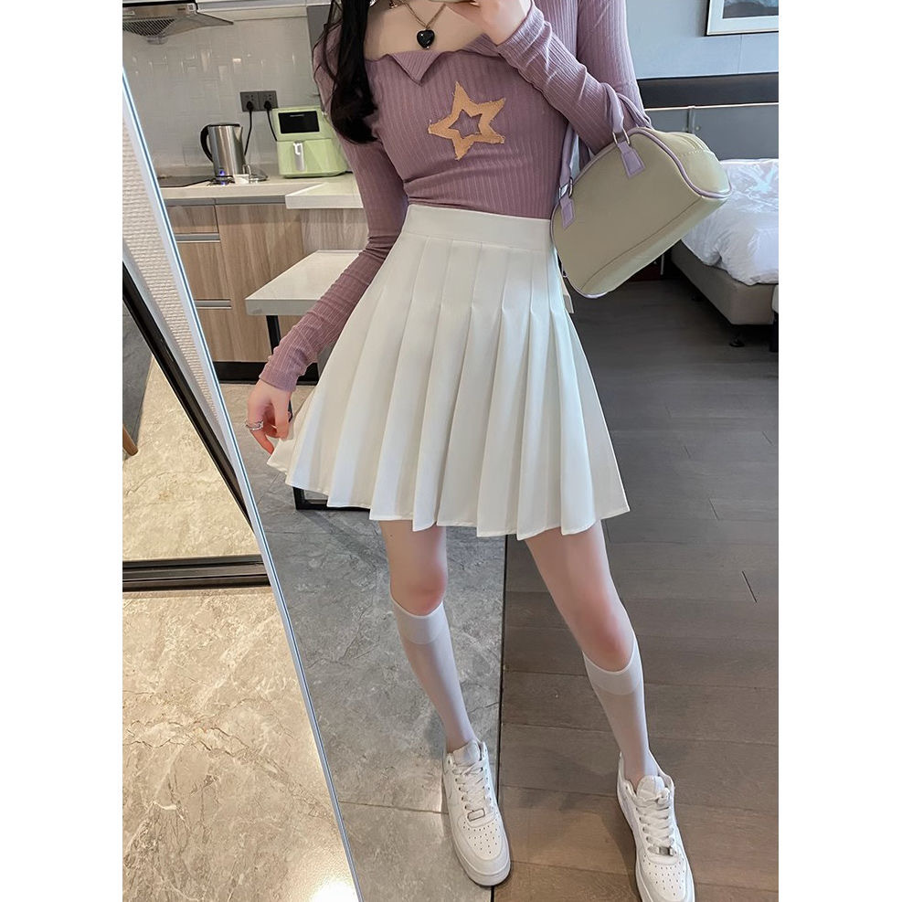 한국식 주름 치마 여성의 가을과 겨울 2024 새로운 높은 허리 슬리밍 jk 짧은 치마 작은 A 라인 스커트스토어 가기