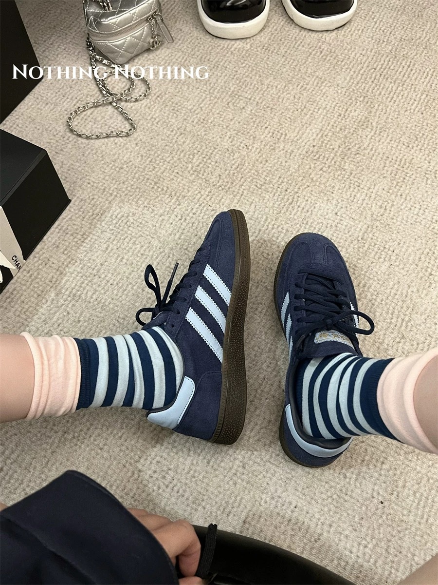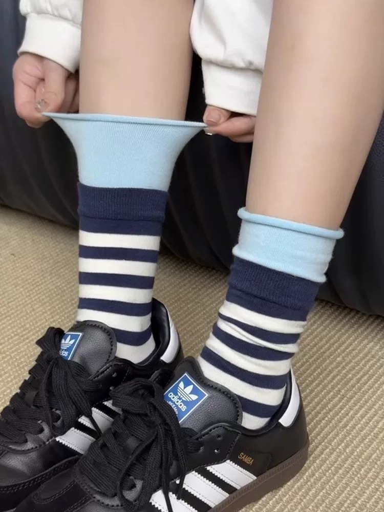 줄무늬 양말 여성의 봄과 가을 코튼 중간 길이 양말 더블 Luokou 컬러 매칭 더미 양말 여성용 Ins 세련된 스타킹스토어 가기