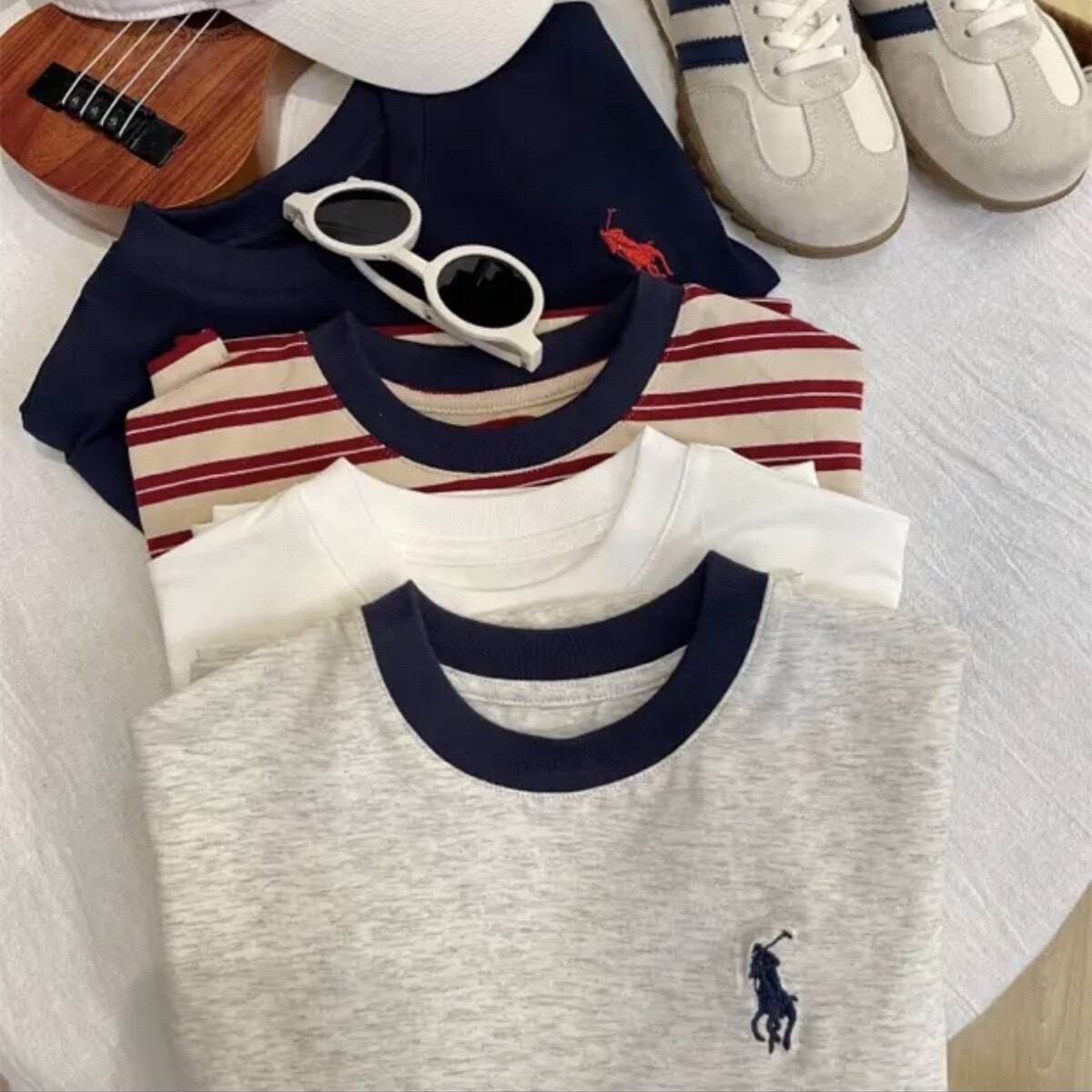 어머니의 어린이 반팔 티셔츠 2024 여름 새 소년과 소녀 줄무늬 아기 여름 서양 스타일 캐주얼 탑