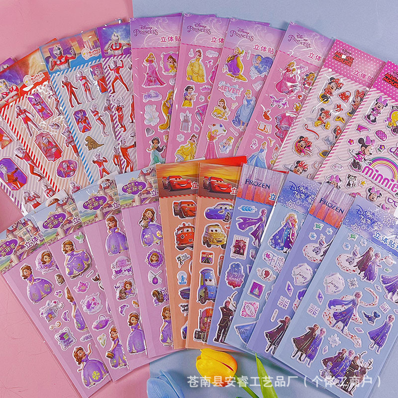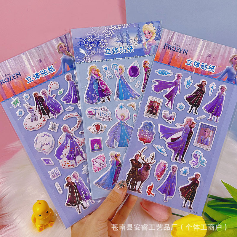 새로운 만화 얼음과 눈 공주 자동차 동물 스티커 어린이 만화 공주 케이크 금박 스티커 귀여운 핸드북스토어 가기
