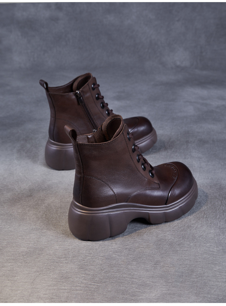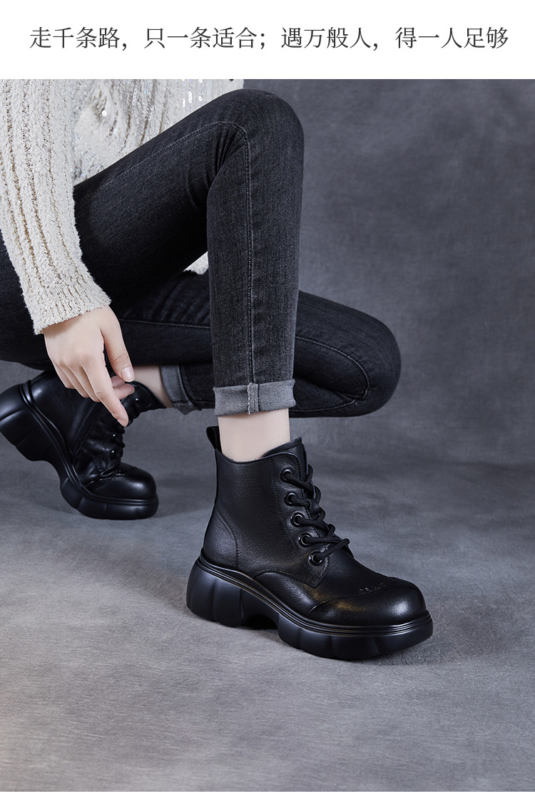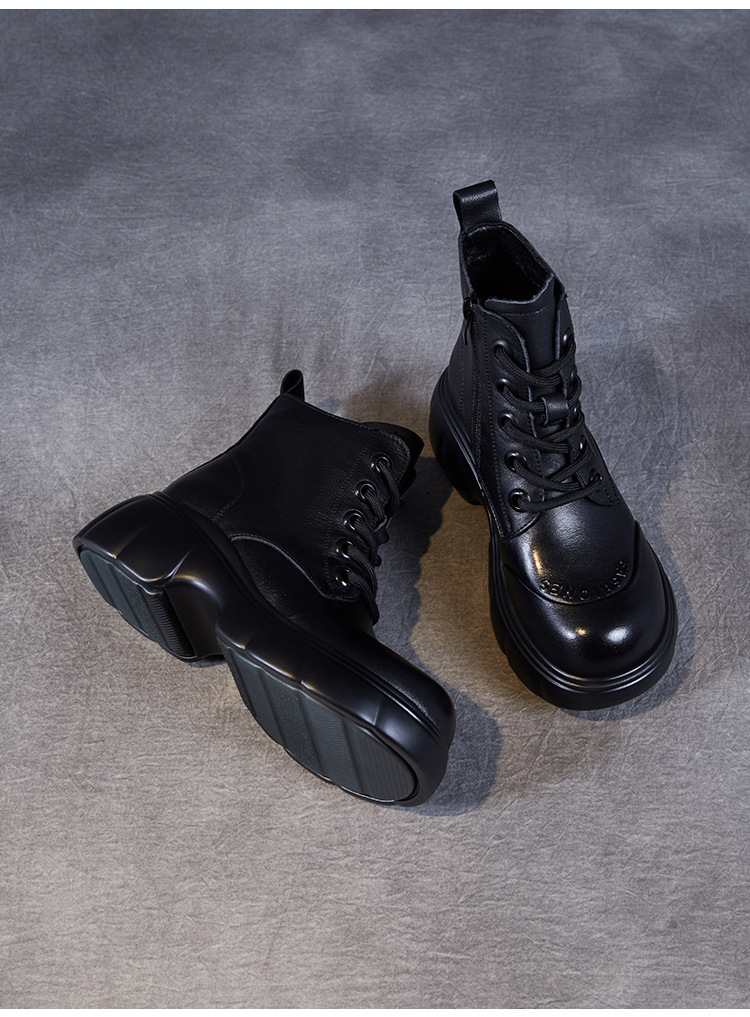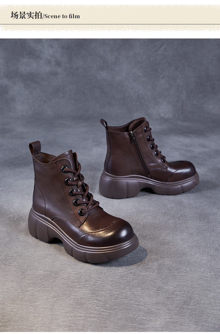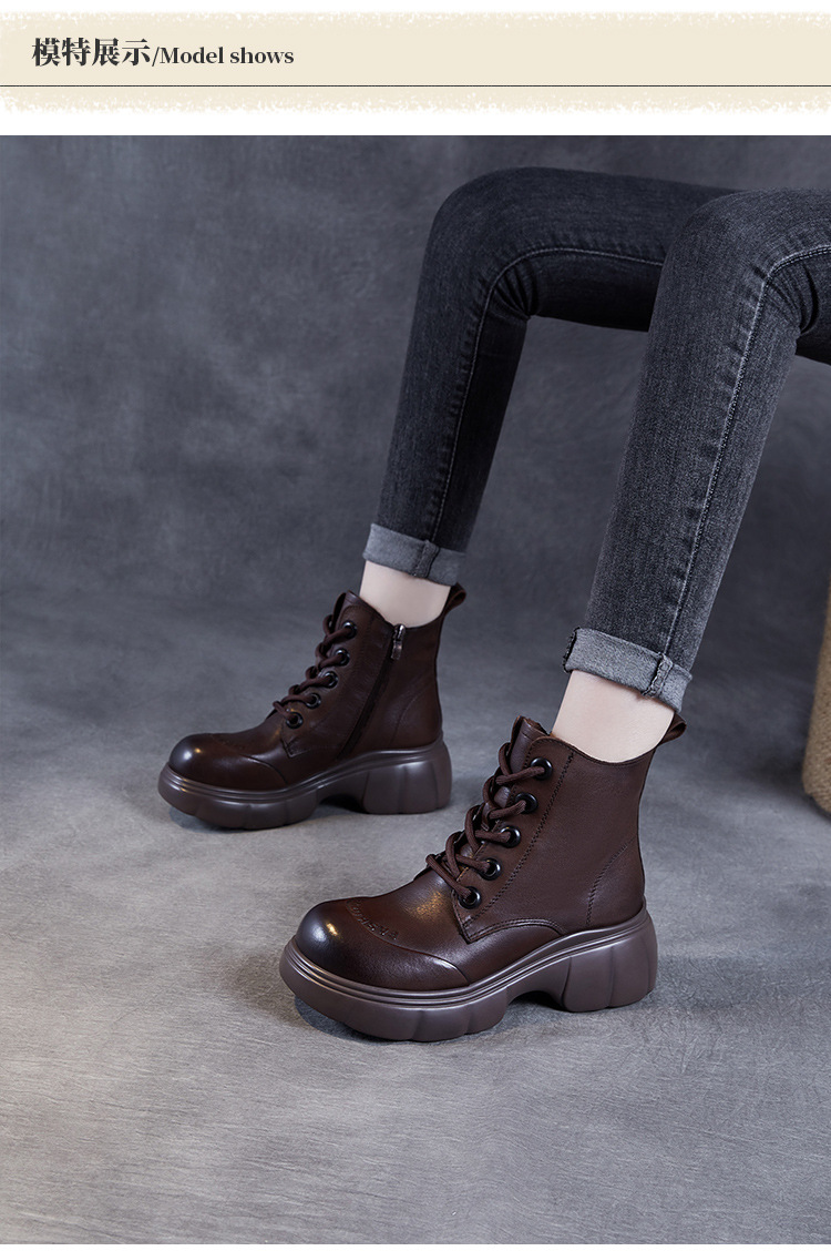 두꺼운 바닥 타이어 바닥 마틴 부츠 여성 청키 힐 라운드 토 짧은 부츠 가을과 겨울 2024 새로운 정품 가죽 복고풍 캐주얼 가죽 신발스토어 가기
