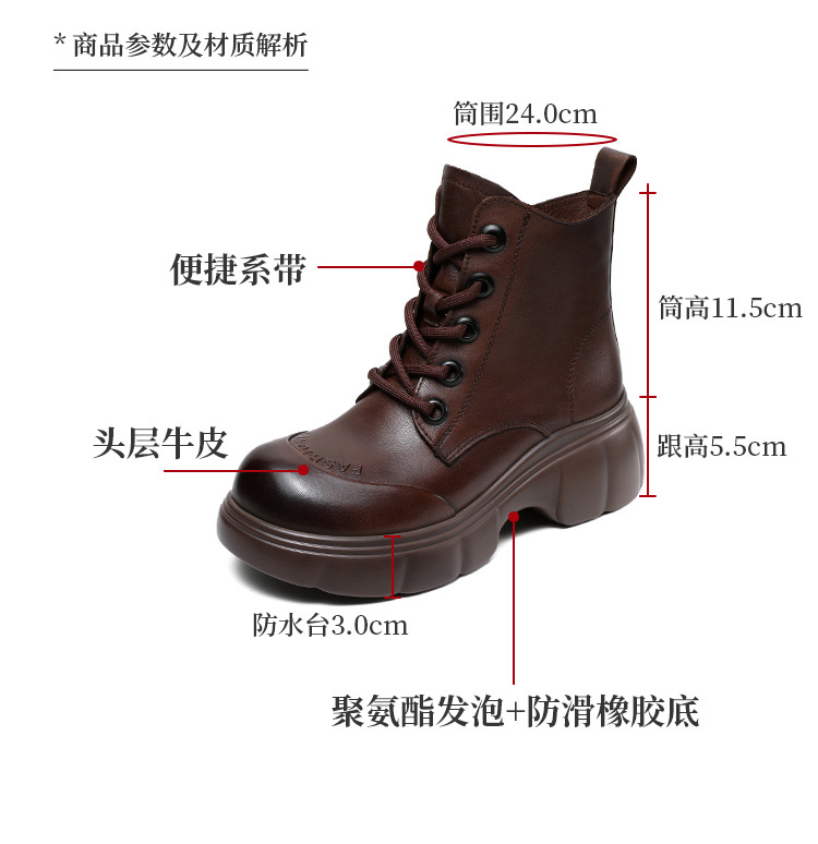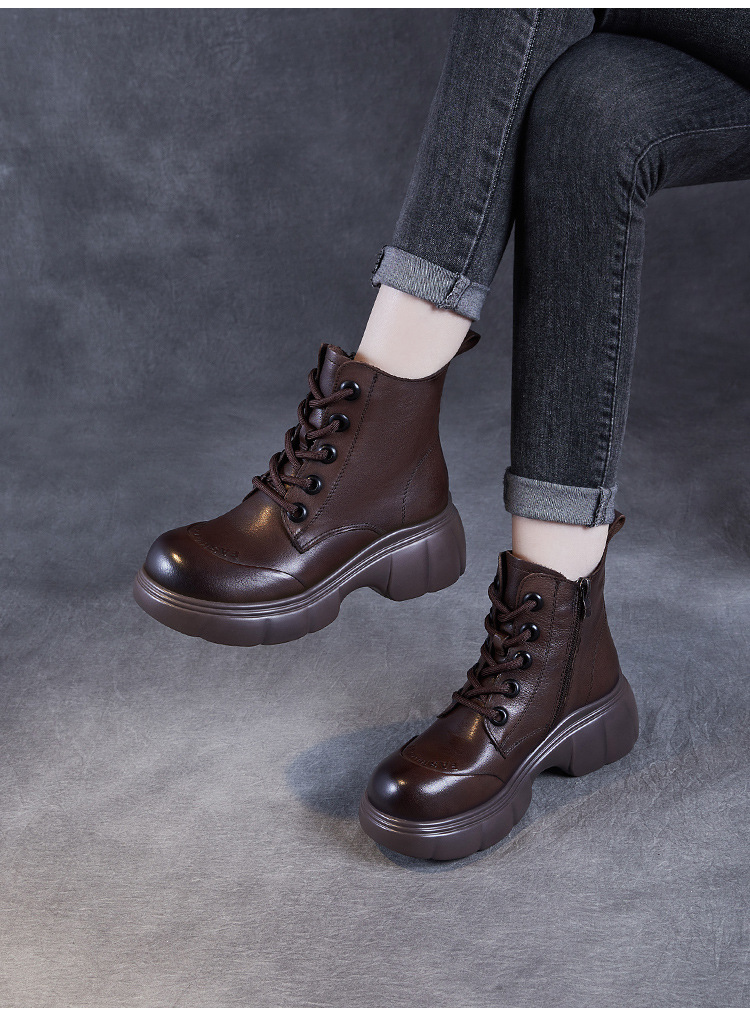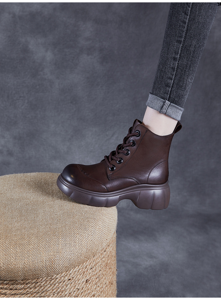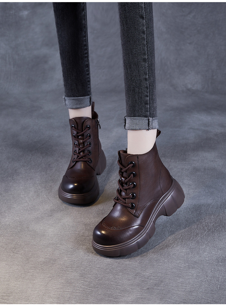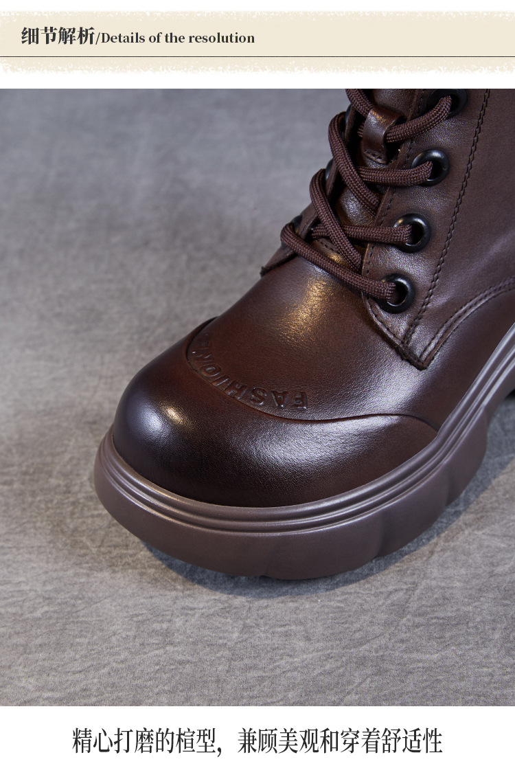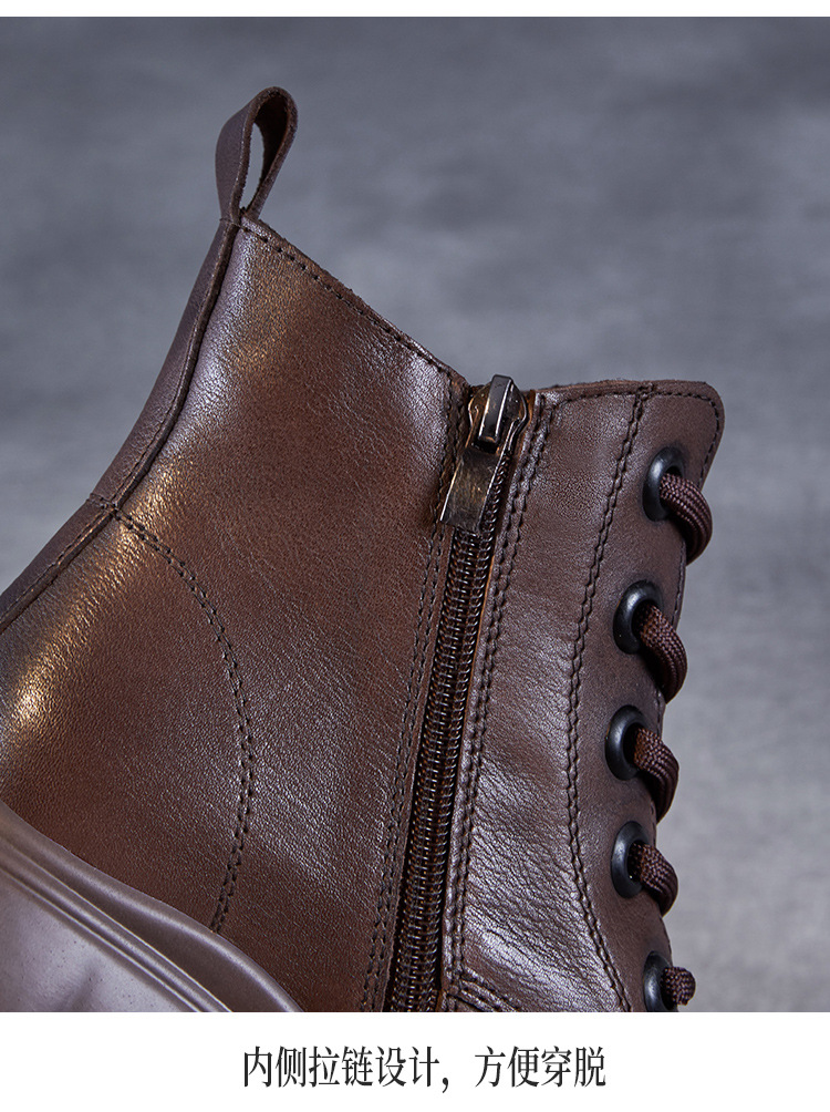 두꺼운 바닥 타이어 바닥 마틴 부츠 여성 청키 힐 라운드 토 짧은 부츠 가을과 겨울 2024 새로운 정품 가죽 복고풍 캐주얼 가죽 신발스토어 가기
