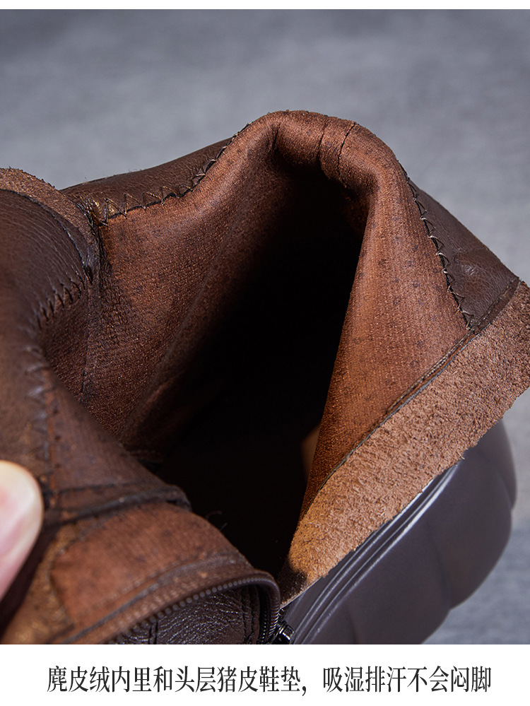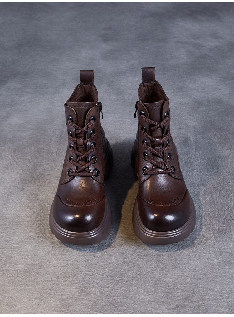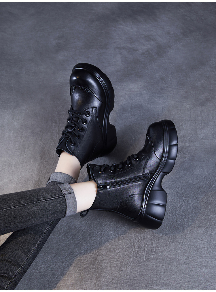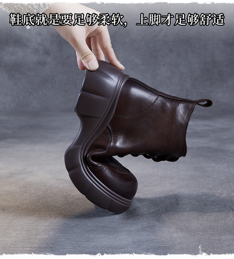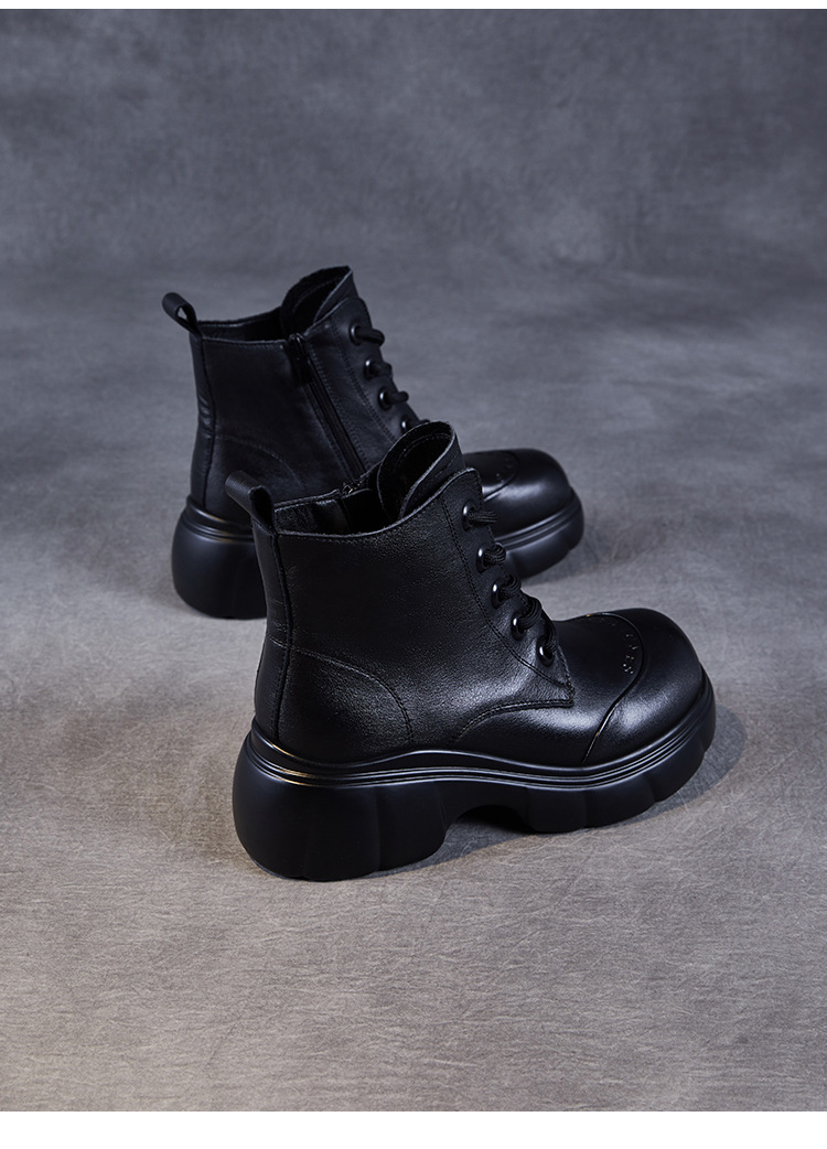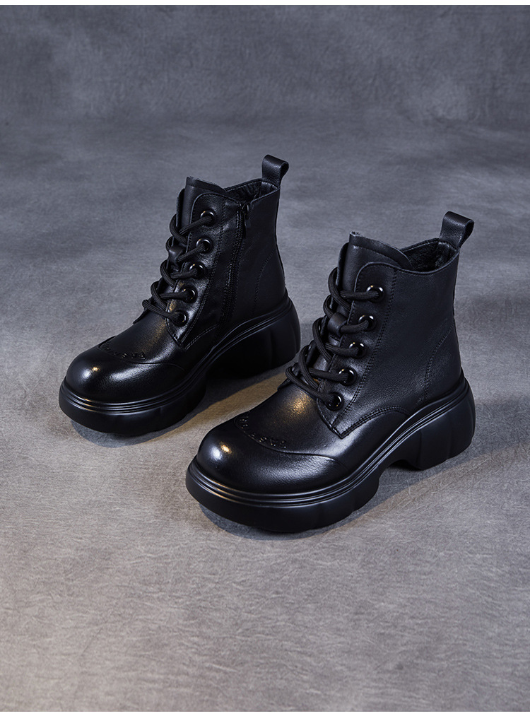두꺼운 바닥 타이어 바닥 마틴 부츠 여성 청키 힐 라운드 토 짧은 부츠 가을과 겨울 2024 새로운 정품 가죽 복고풍 캐주얼 가죽 신발스토어 가기