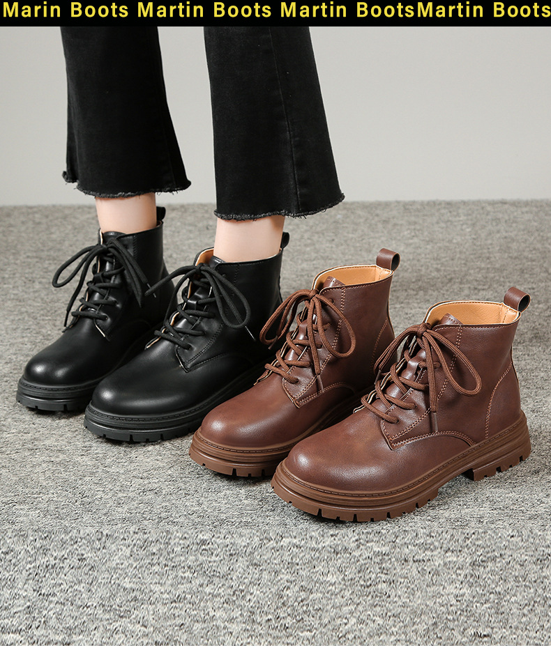 2025 새로운 가을 겨울 여성용 미드 힐 두꺼운 힐 마틴 부츠 영국 스타일 두꺼운 밑창 앞 레이스 업 라운드 투 오토바이 여성용 짧은 부츠 유행스토어 가기