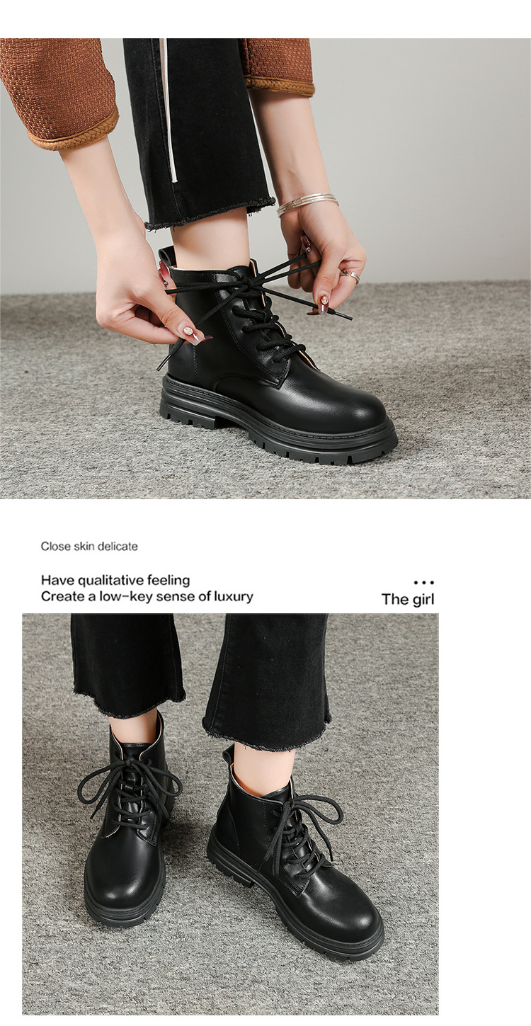 2025 새로운 가을 겨울 여성용 미드 힐 두꺼운 힐 마틴 부츠 영국 스타일 두꺼운 밑창 앞 레이스 업 라운드 투 오토바이 여성용 짧은 부츠 유행