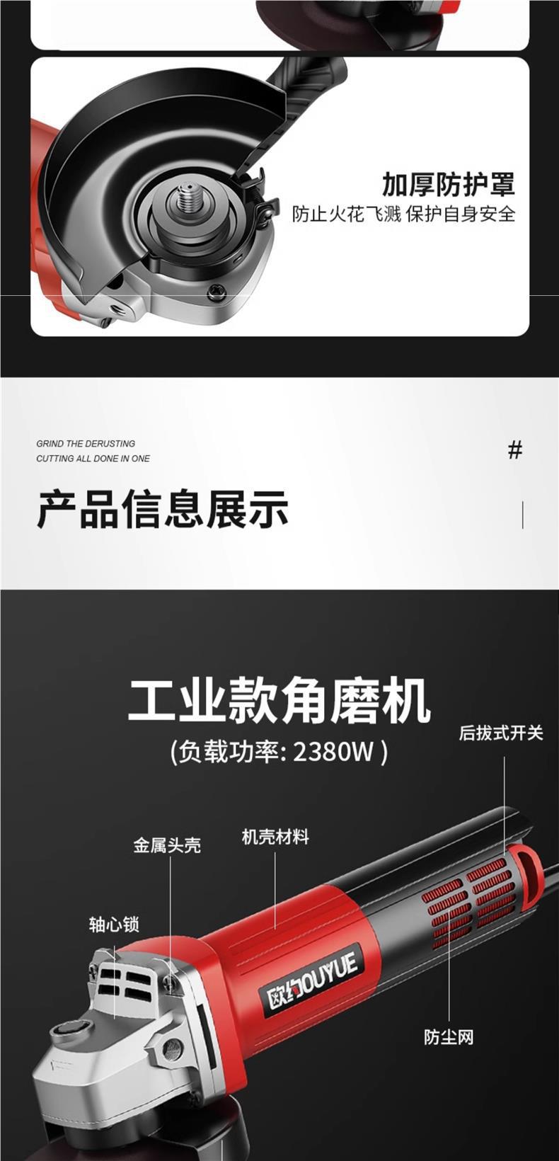 Ouyo 다기능 가정용 앵글 그라인더 샌딩 머신 전기 핸드 그라인딩 및 커팅 머신 전기 그라인딩 머신 핸드 헬드 폴리싱 머신