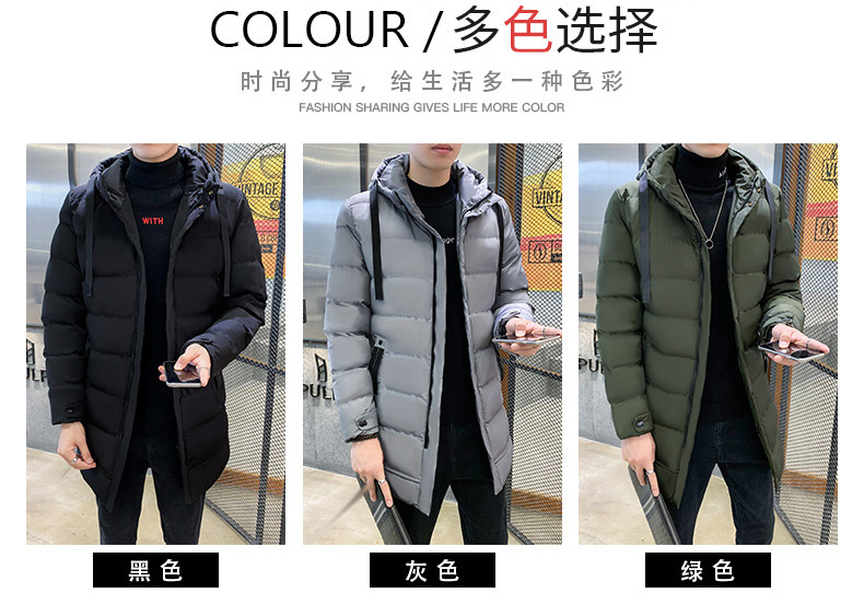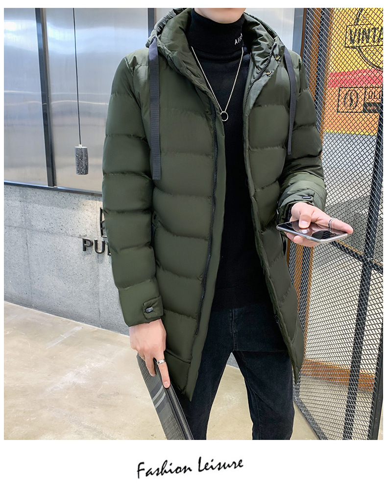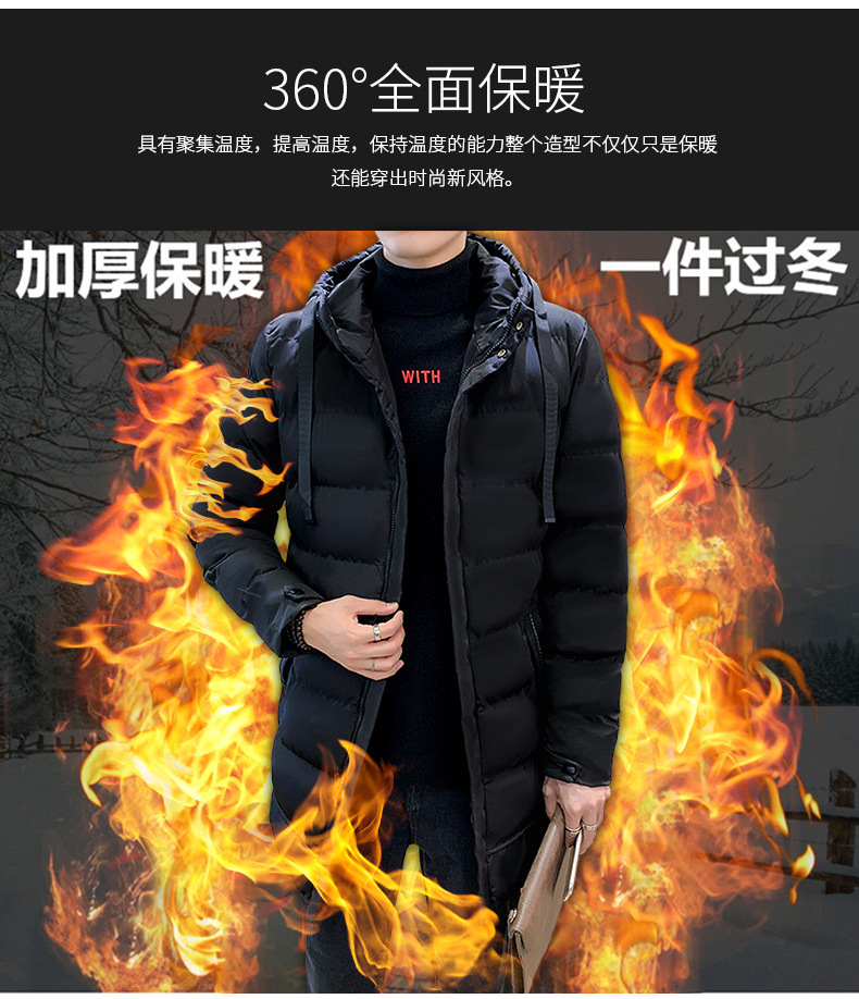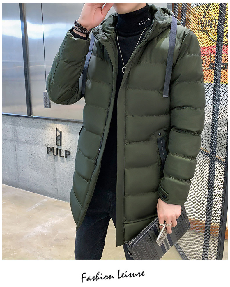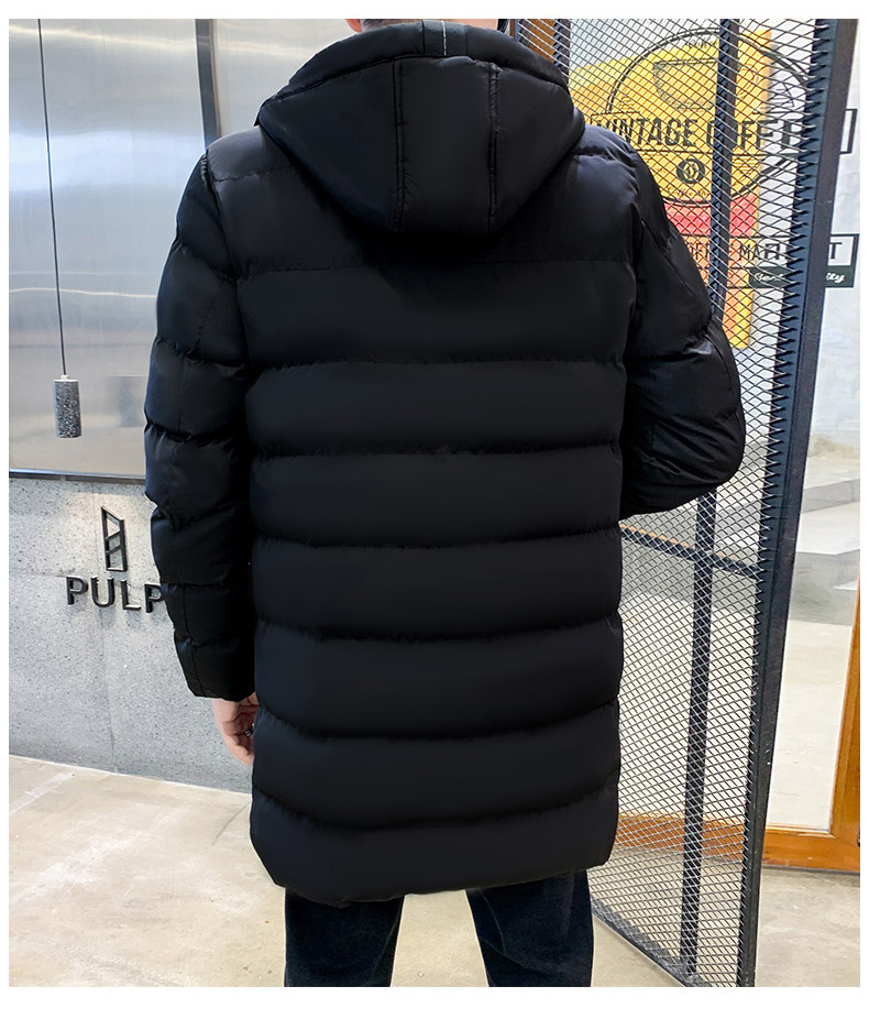 플러스 사이즈 남자 가을 및 겨울 면화 옷 남자 중간 길이의 후드 코트 두꺼운 따뜻한 남성면 패딩 코트 긴 무릎 길이 95스토어 가기