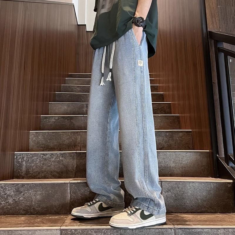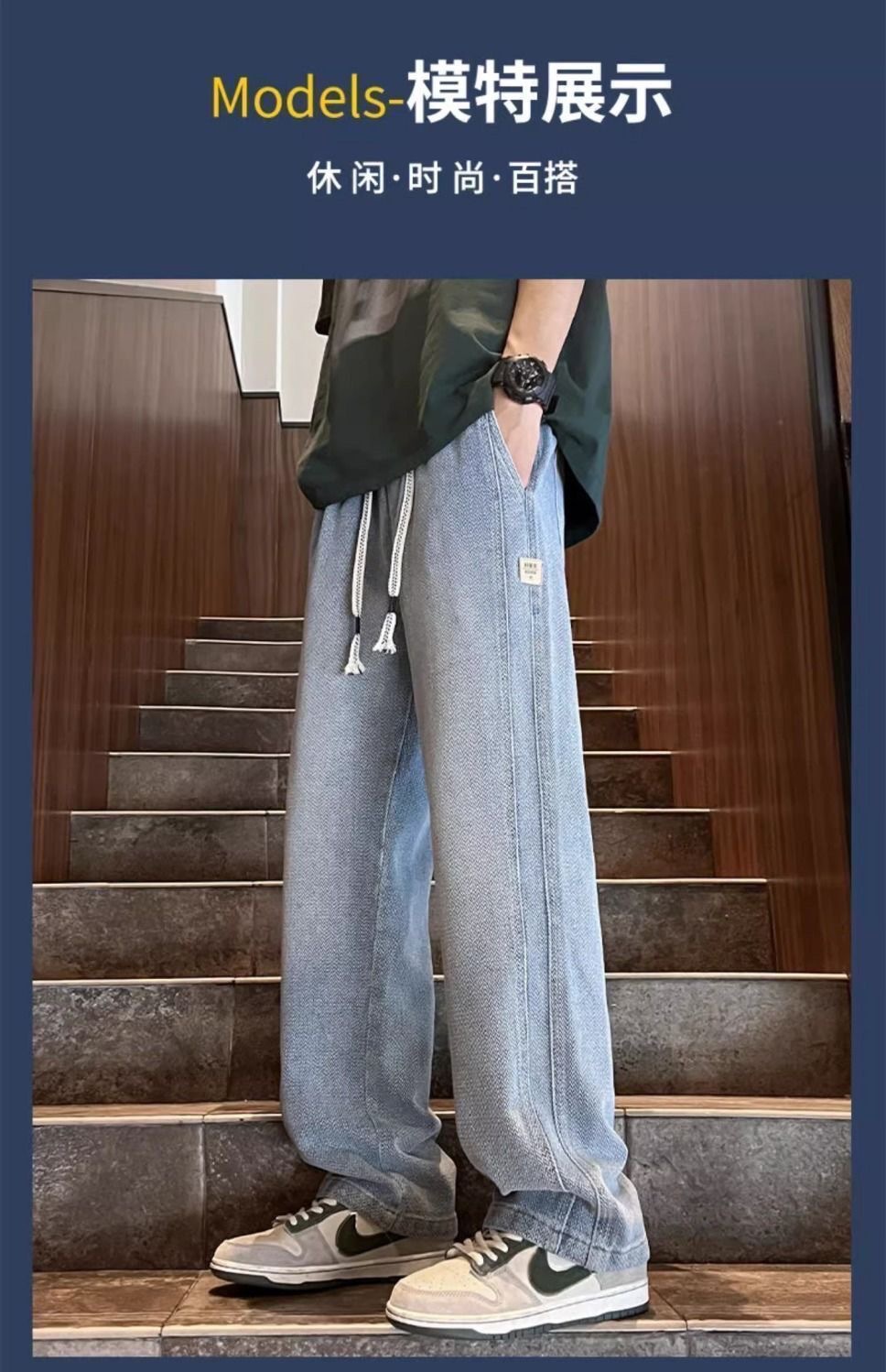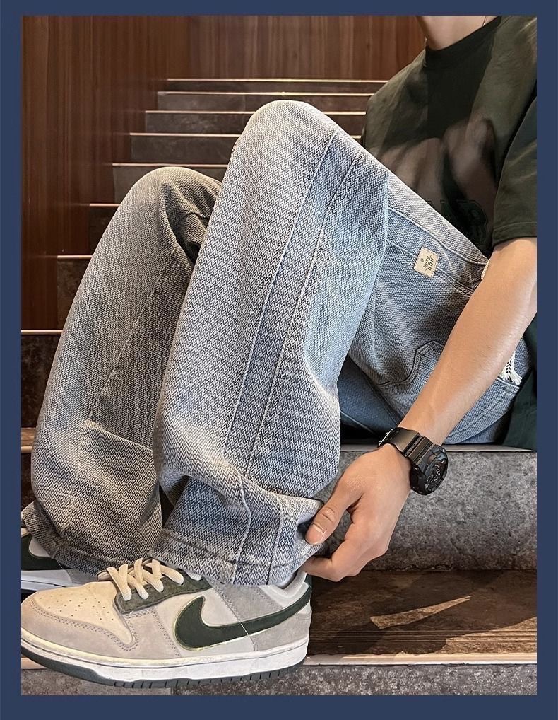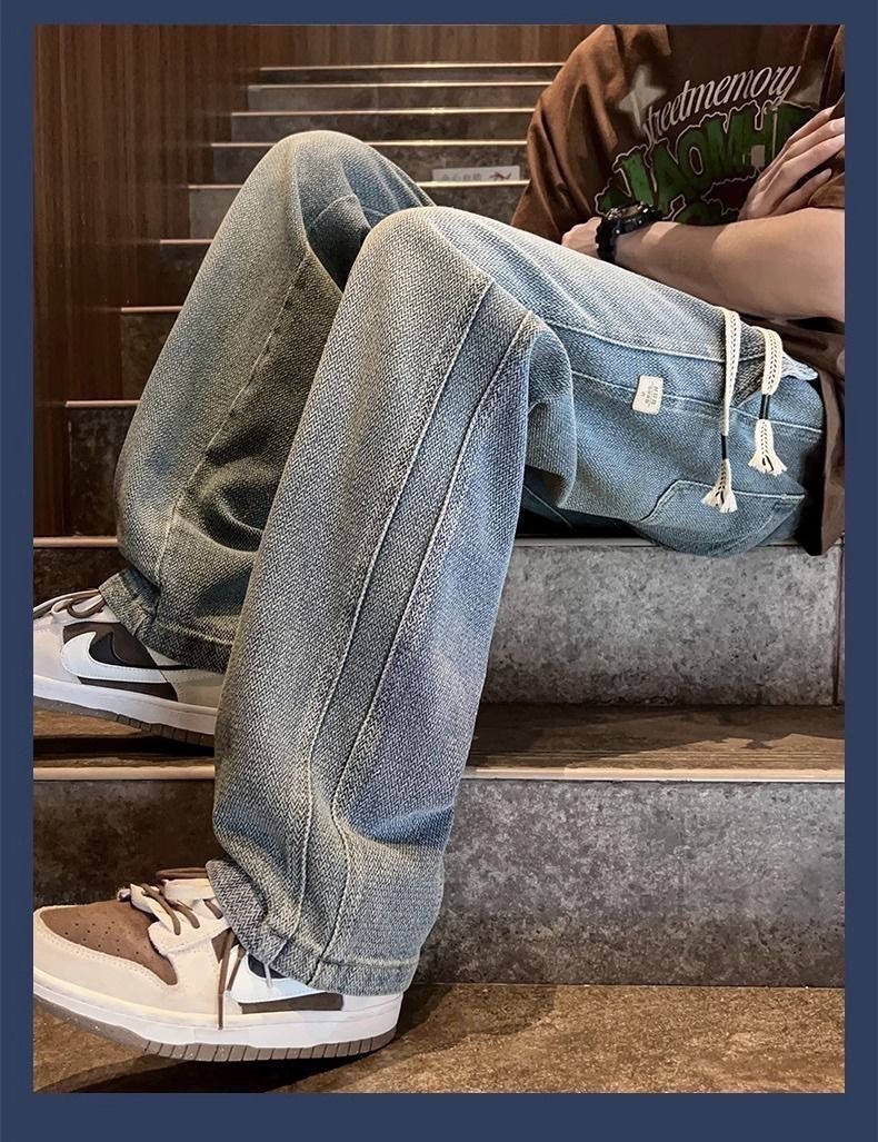 새로운 스타 패턴 복고풍 남성 청바지 봄과 가을 유행 미국 스타일 캐주얼 느슨한 넓은 다리 스트레이트 바지스토어 가기