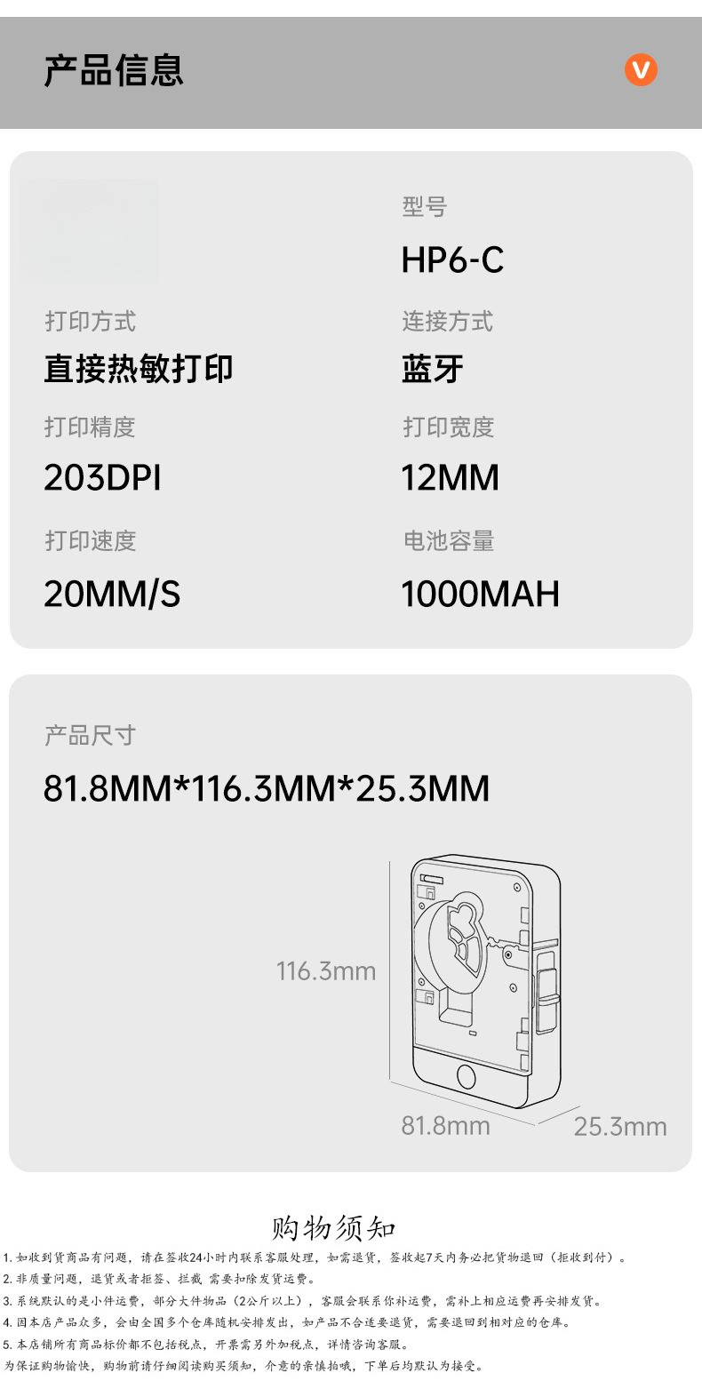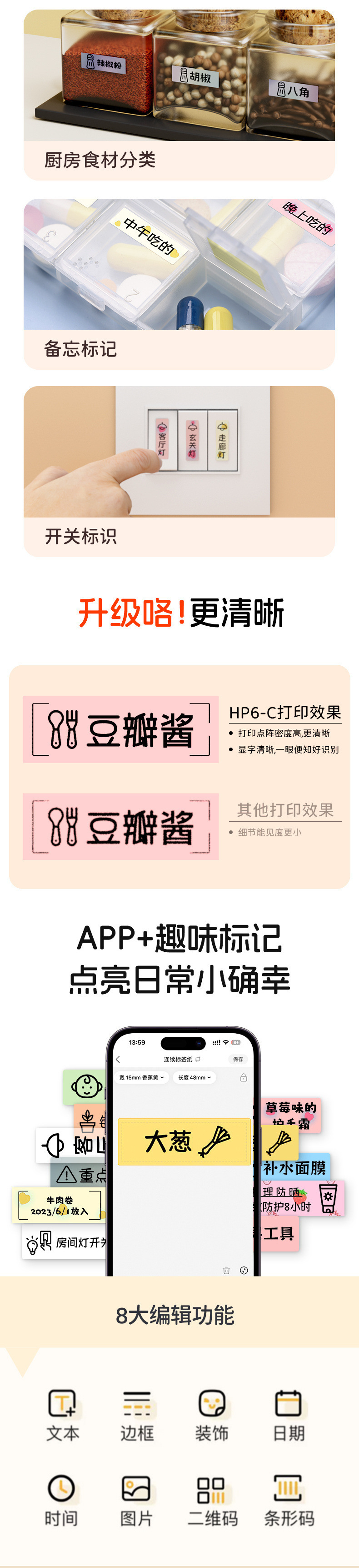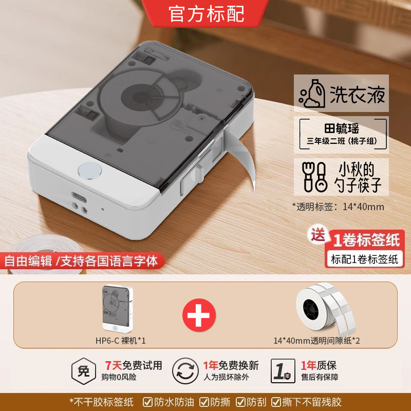 HP6C 라벨 기계 열 휴대용 홈 작은 라벨 기계 스마트 프린터 이름 스티커 메모 블루투스스토어 가기