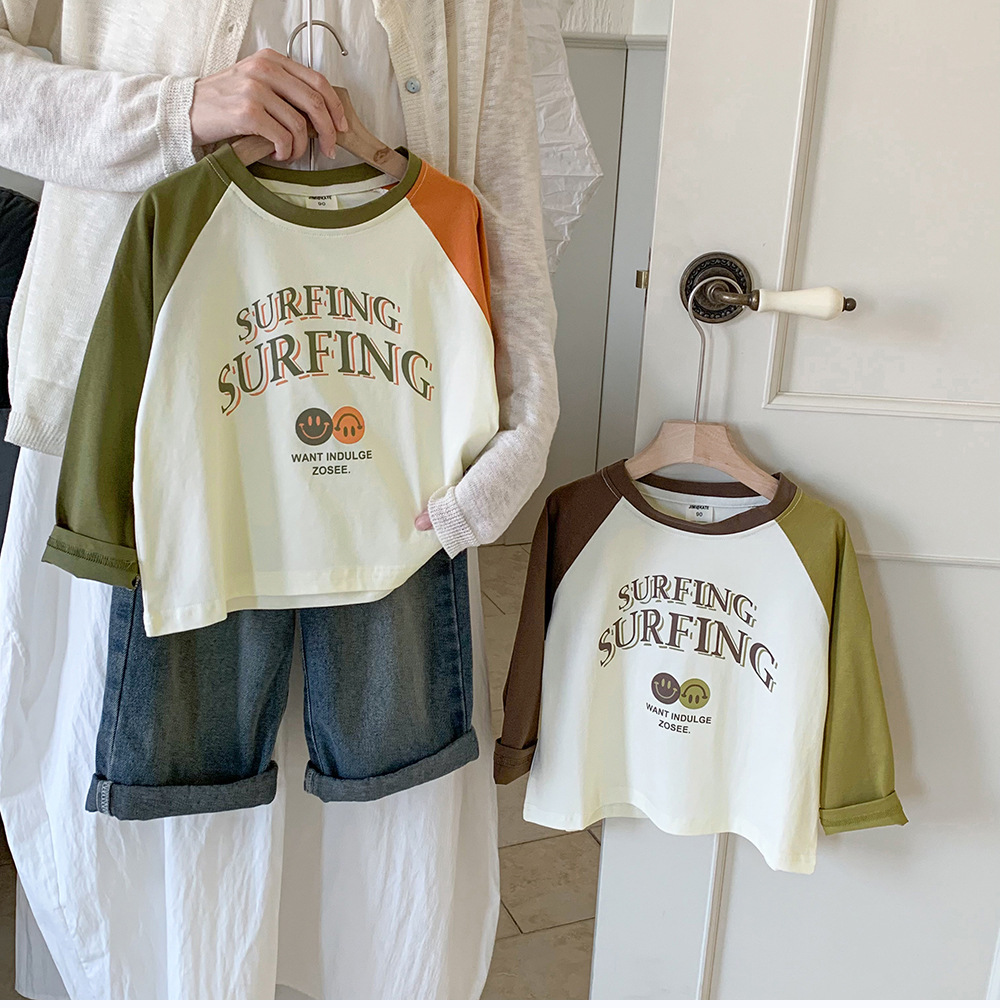 작은 C 급우 2024 새로운 가을 어린이 티셔츠 한국식 라글란 소매 바닥 셔츠 소년 긴팔 티셔츠 조수스토어 가기