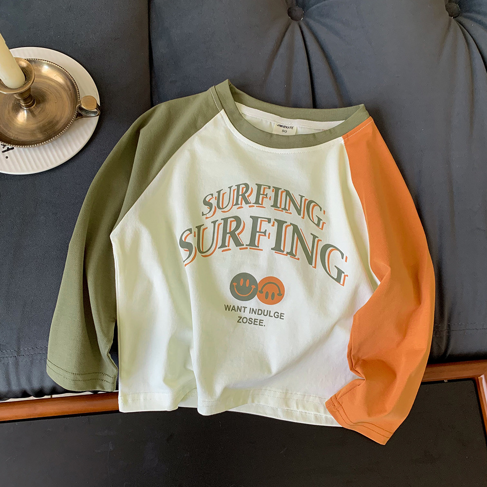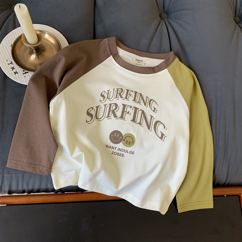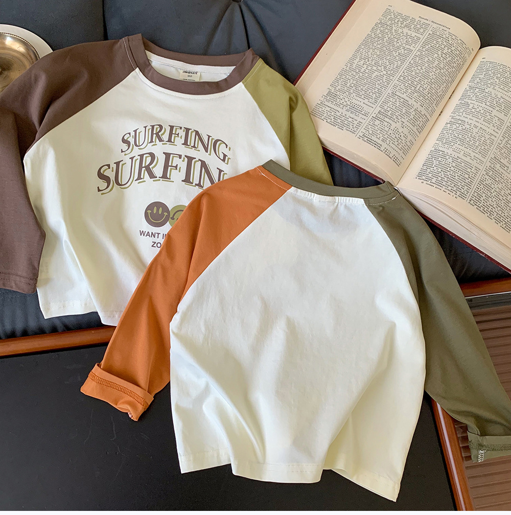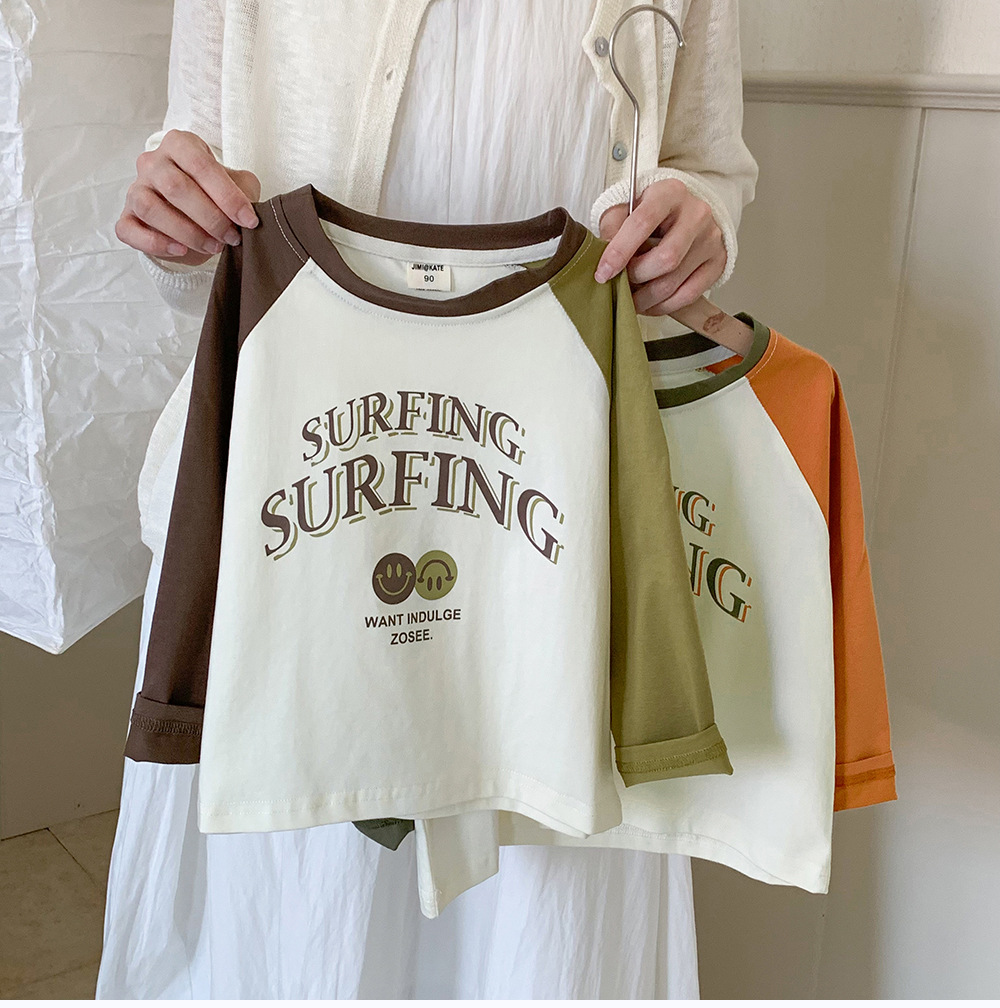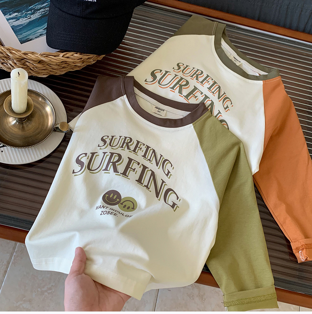 작은 C 급우 2024 새로운 가을 어린이 티셔츠 한국식 라글란 소매 바닥 셔츠 소년 긴팔 티셔츠 조수