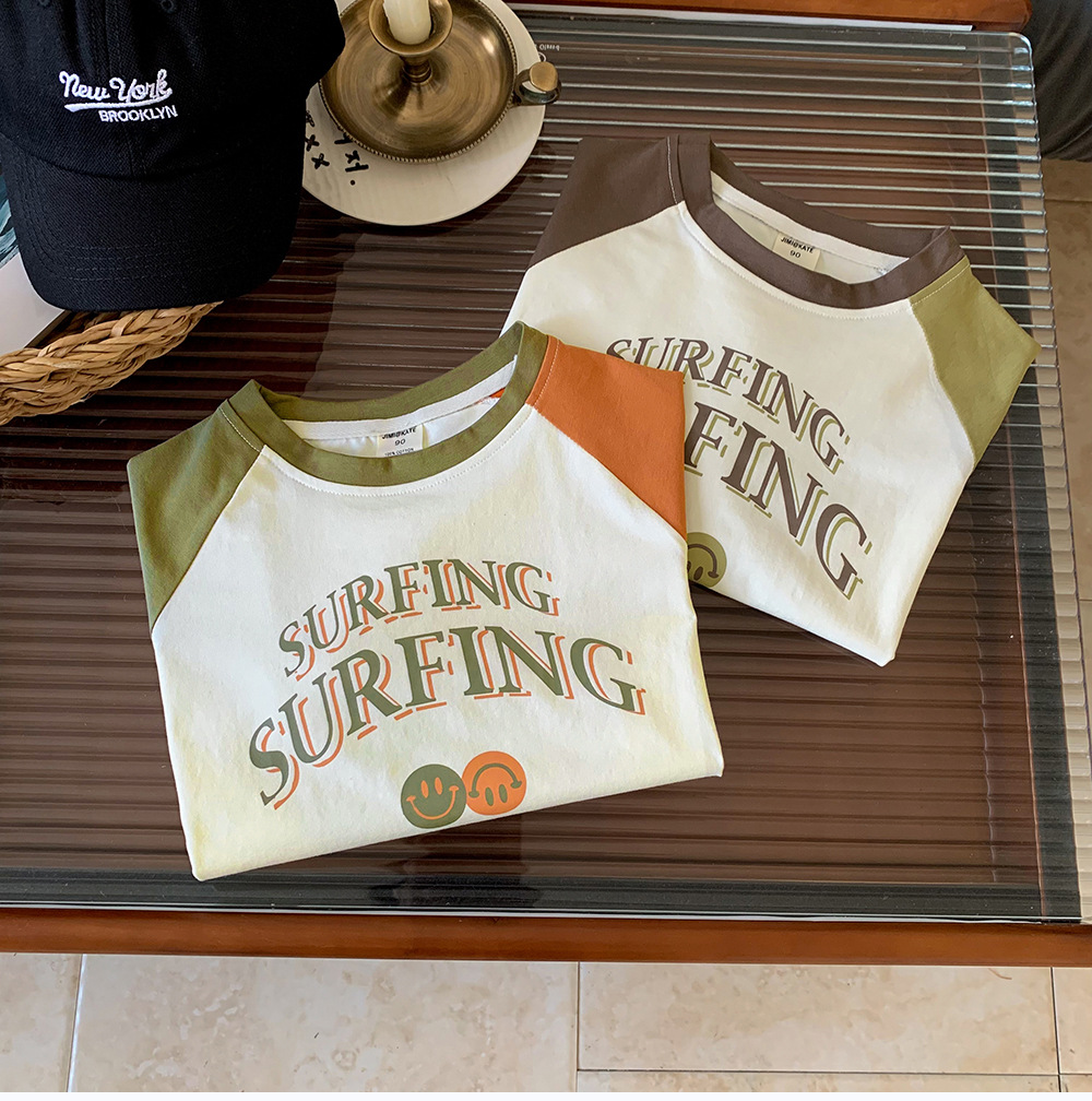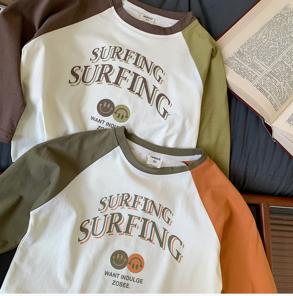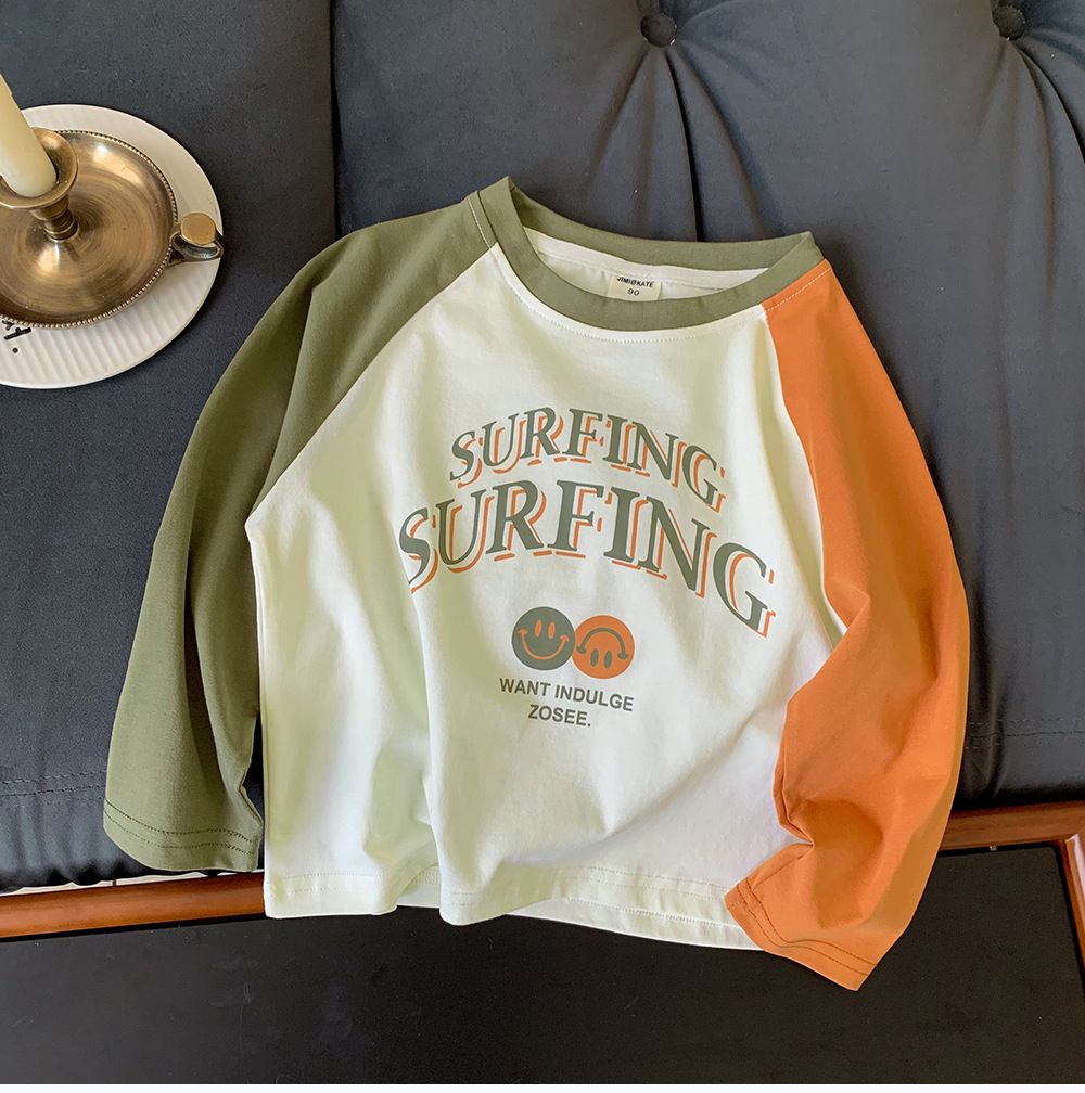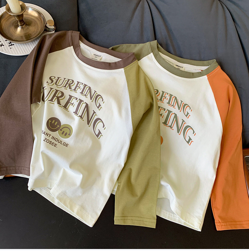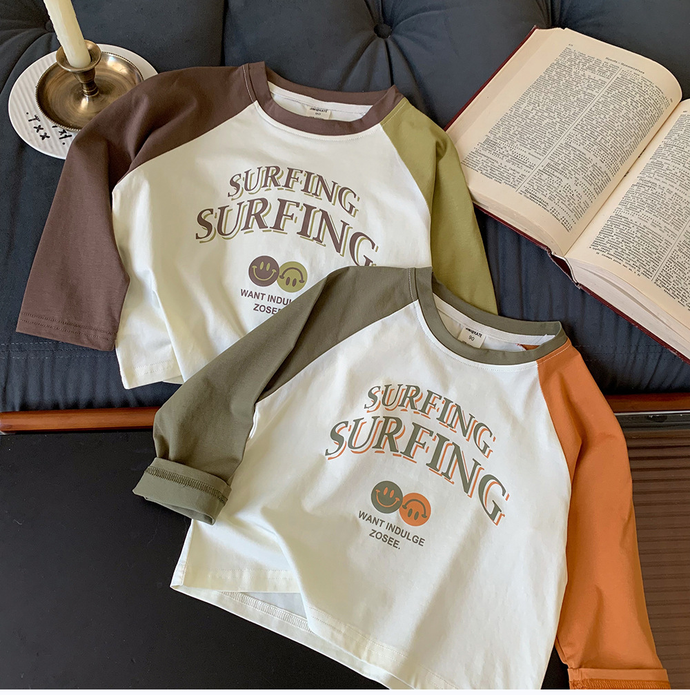 작은 C 급우 2024 새로운 가을 어린이 티셔츠 한국식 라글란 소매 바닥 셔츠 소년 긴팔 티셔츠 조수