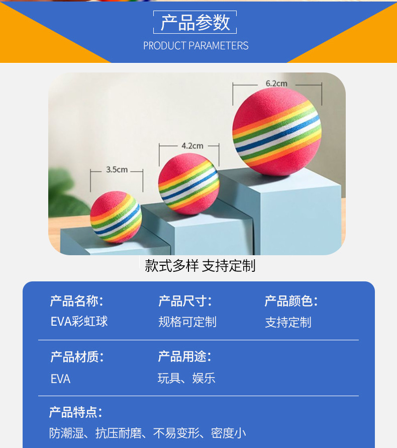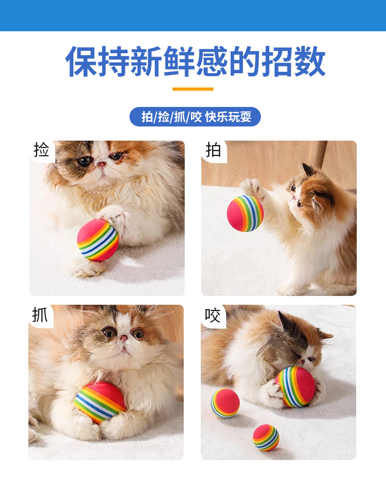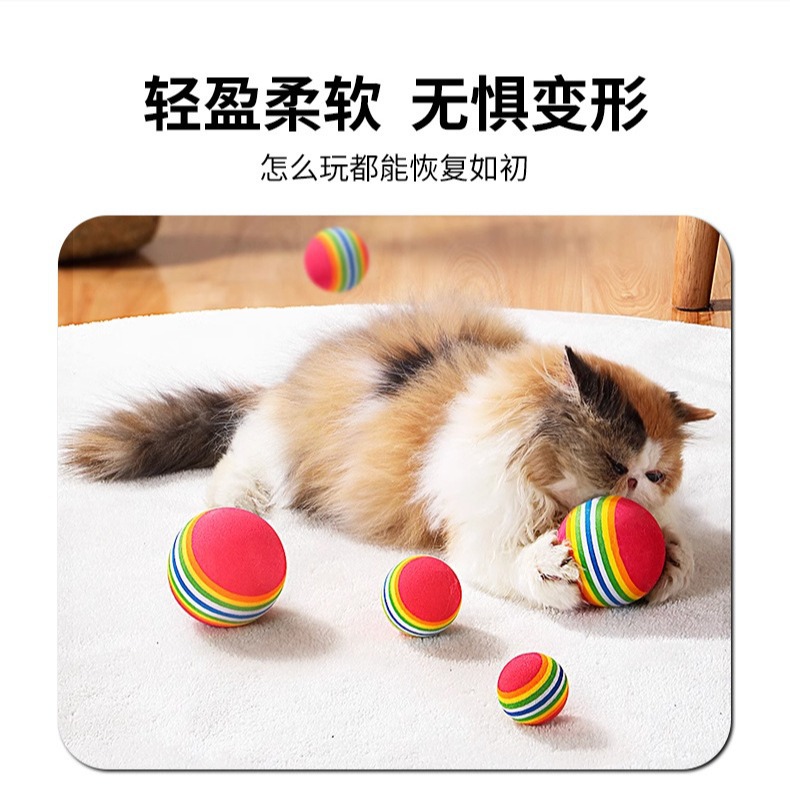 공장 재고 EVA 폼 무지개 공 다채로운 미세 탄성 쥐고 노는 고양이 장난감 무소음 공 EVA 고양이 강아지 장난감 공