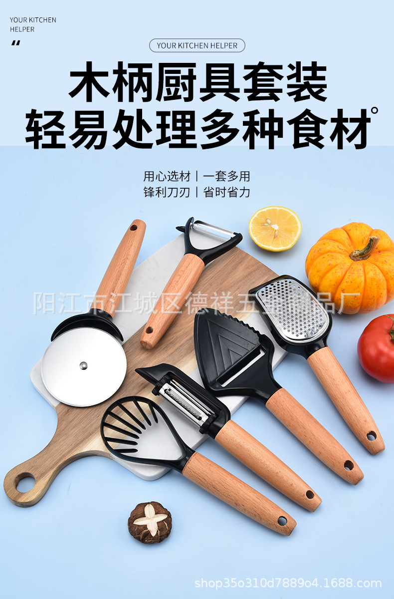 나무 손잡이 나무 강판 주방 가제트 세트 피자 롤 치즈 휠 나이프 강판 굽기 가제트스토어 가기