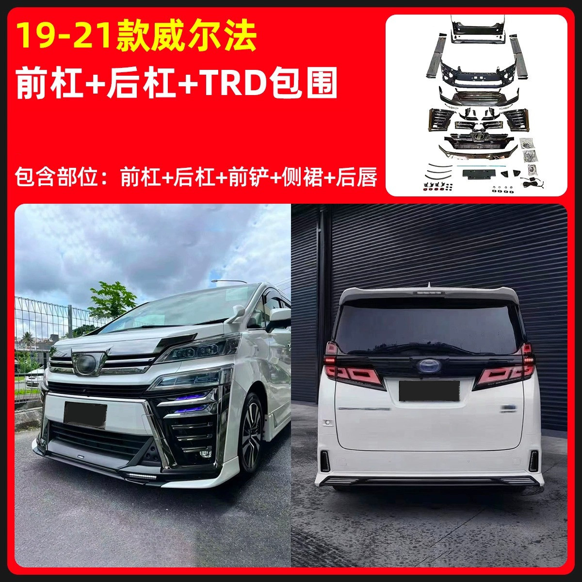 • 프론트 범퍼 어셈블리 + 리어 범퍼 + TRD 서라운드(테일 스로트 제외)