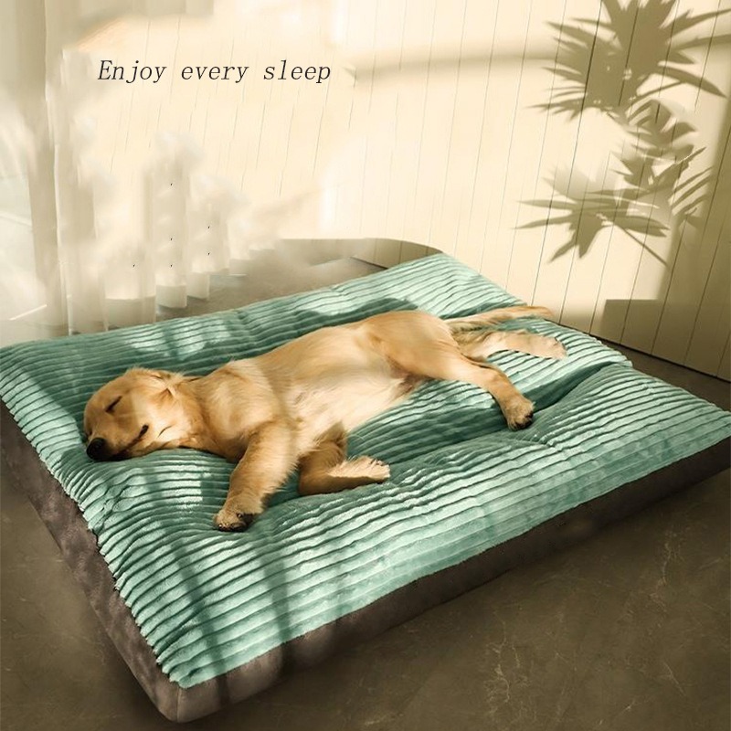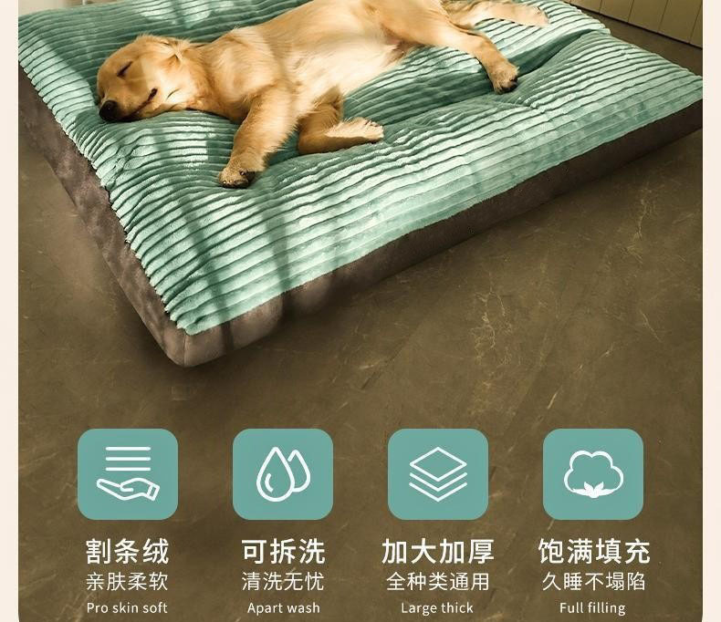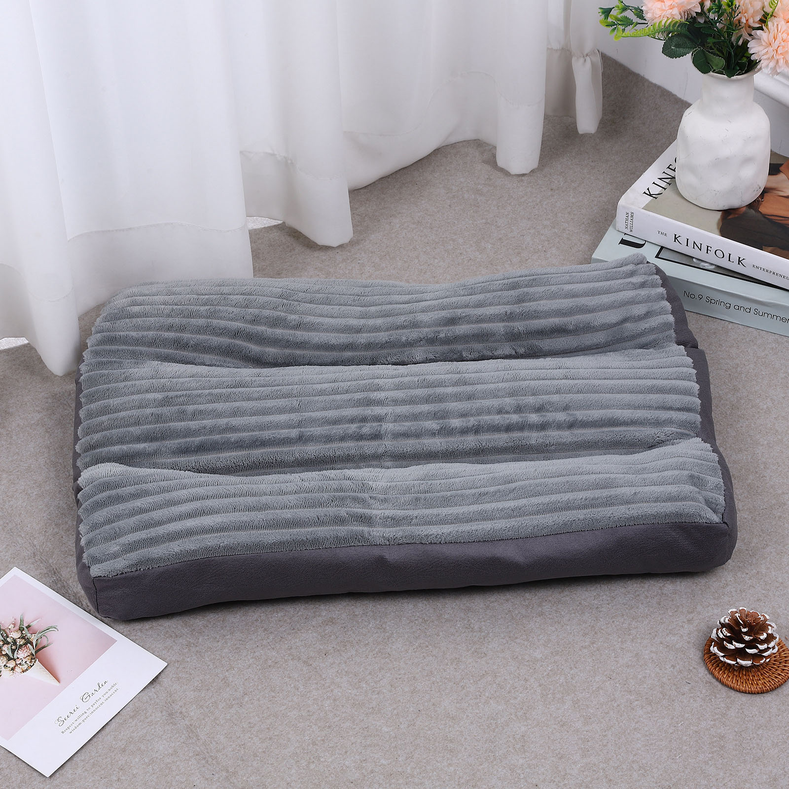 국경 사계절 따뜻한 개 침대 이동식 및 빨 수있는 개 매트 줄무늬 미끄럼 방지 두꺼운 애완 동물 둥지 중형 및 대형 개 애완 동물 매트