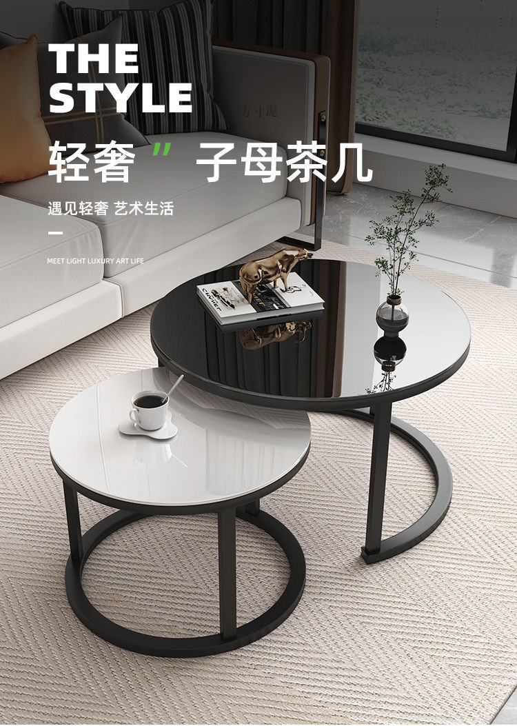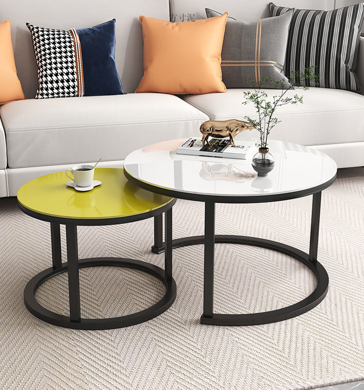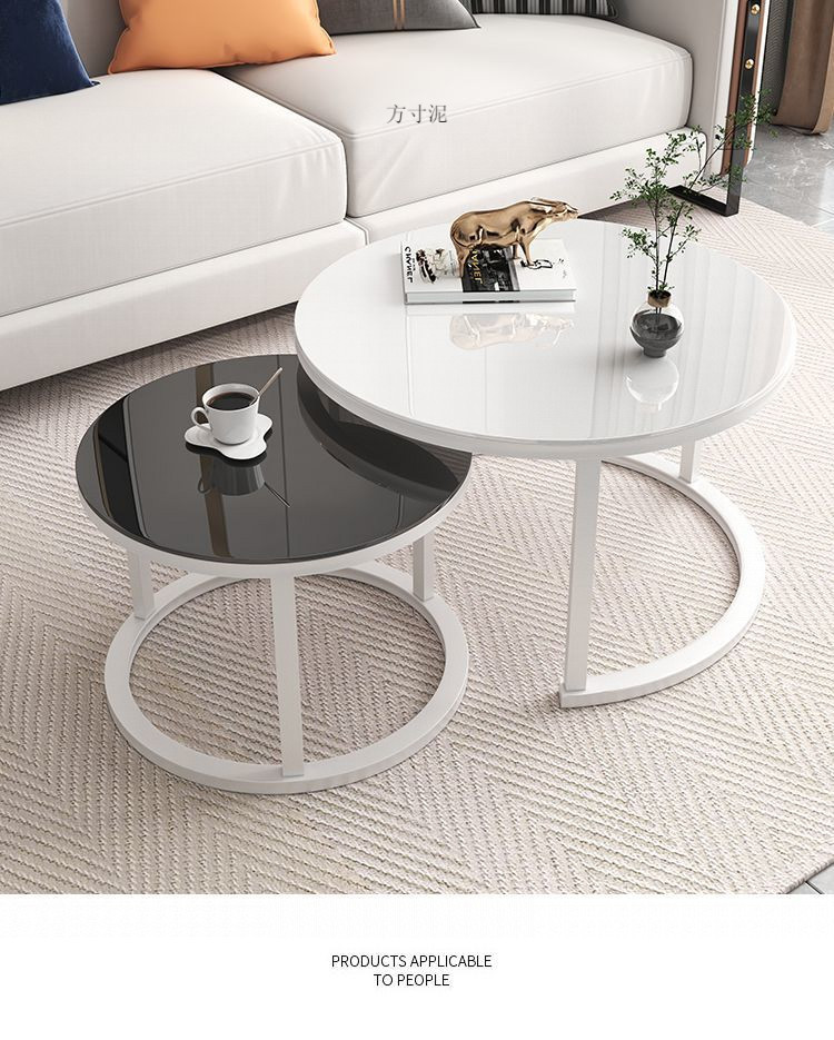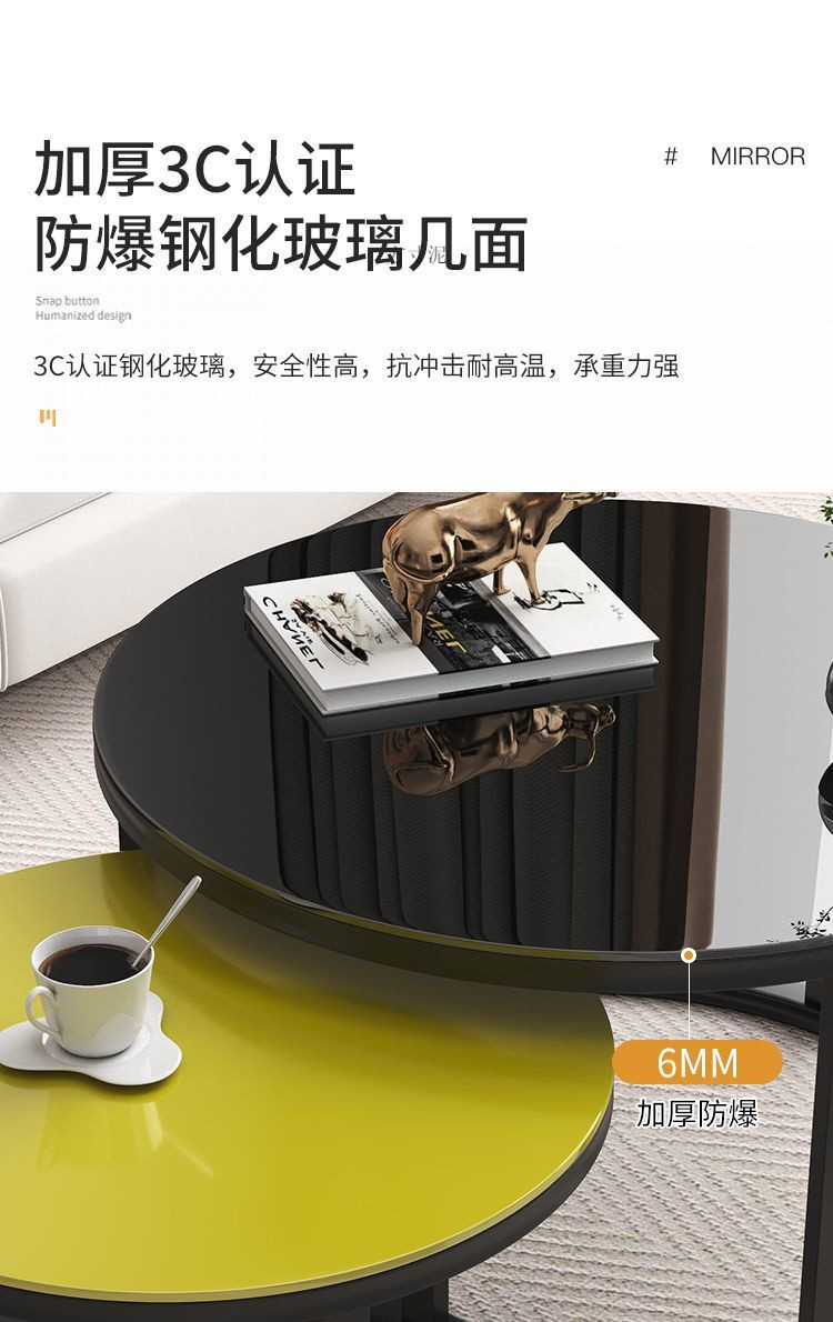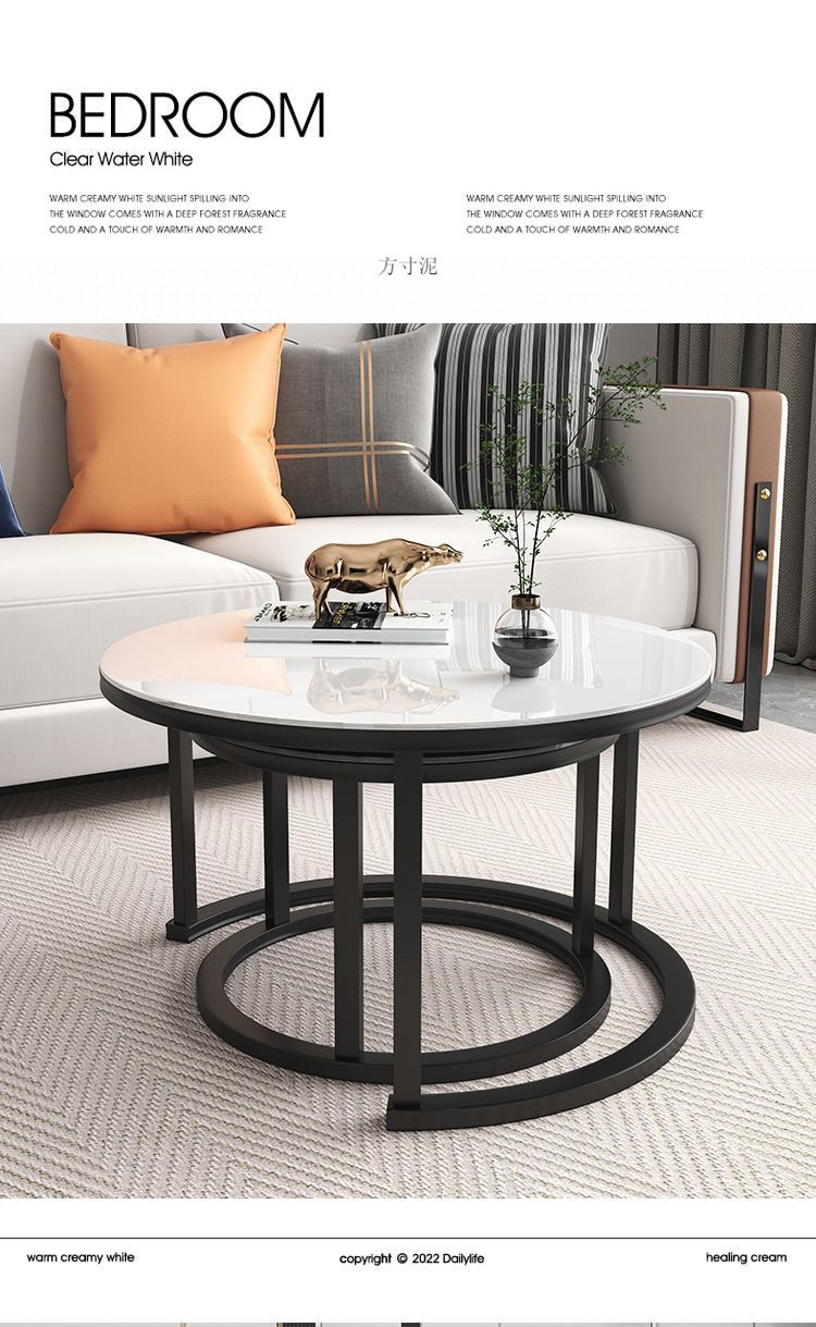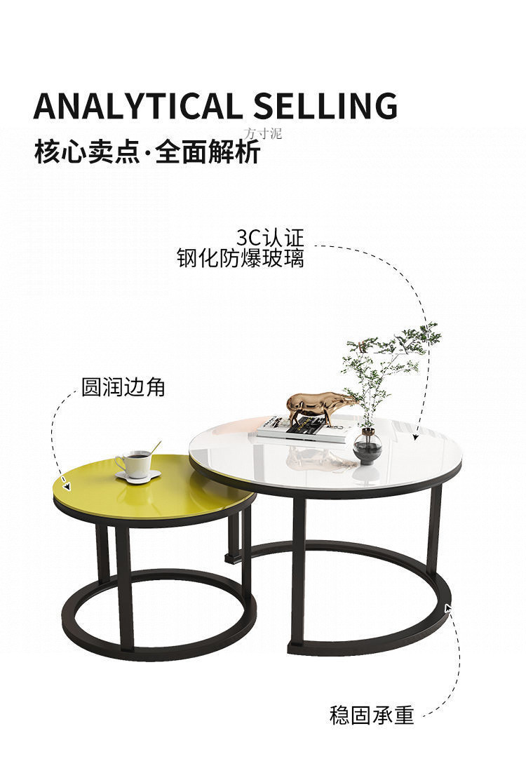 커피 테이블 가정용 거실 강화 유리 테이블 작은 아파트 인터넷 연예인 빛 럭셔리 현대 라운드 테이블 조합 세트 도매스토어 가기