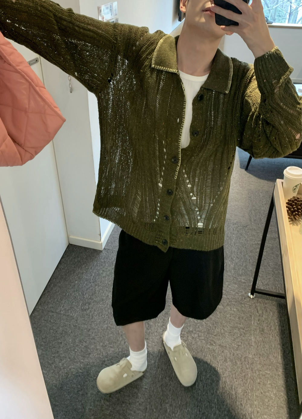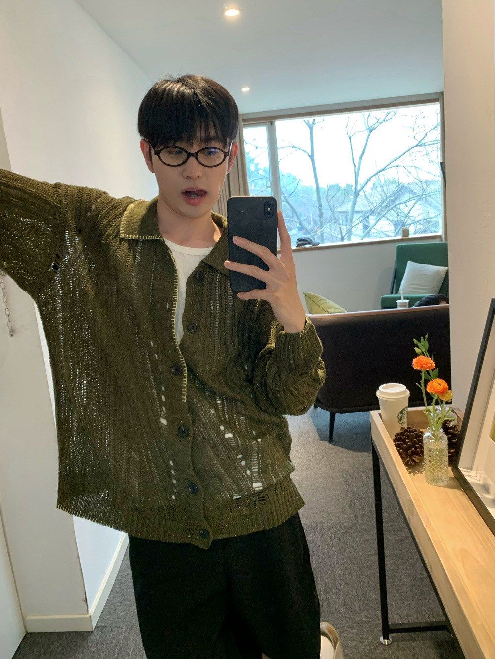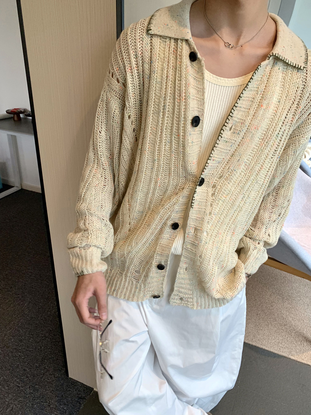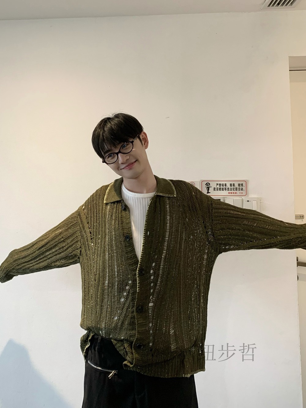 이른 가을 캐주얼 게으른 패션 브랜드 카디건 버튼 디자인 간단한 단색 느슨한 미국 긴 소매 스웨터 남성과 여성스토어 가기