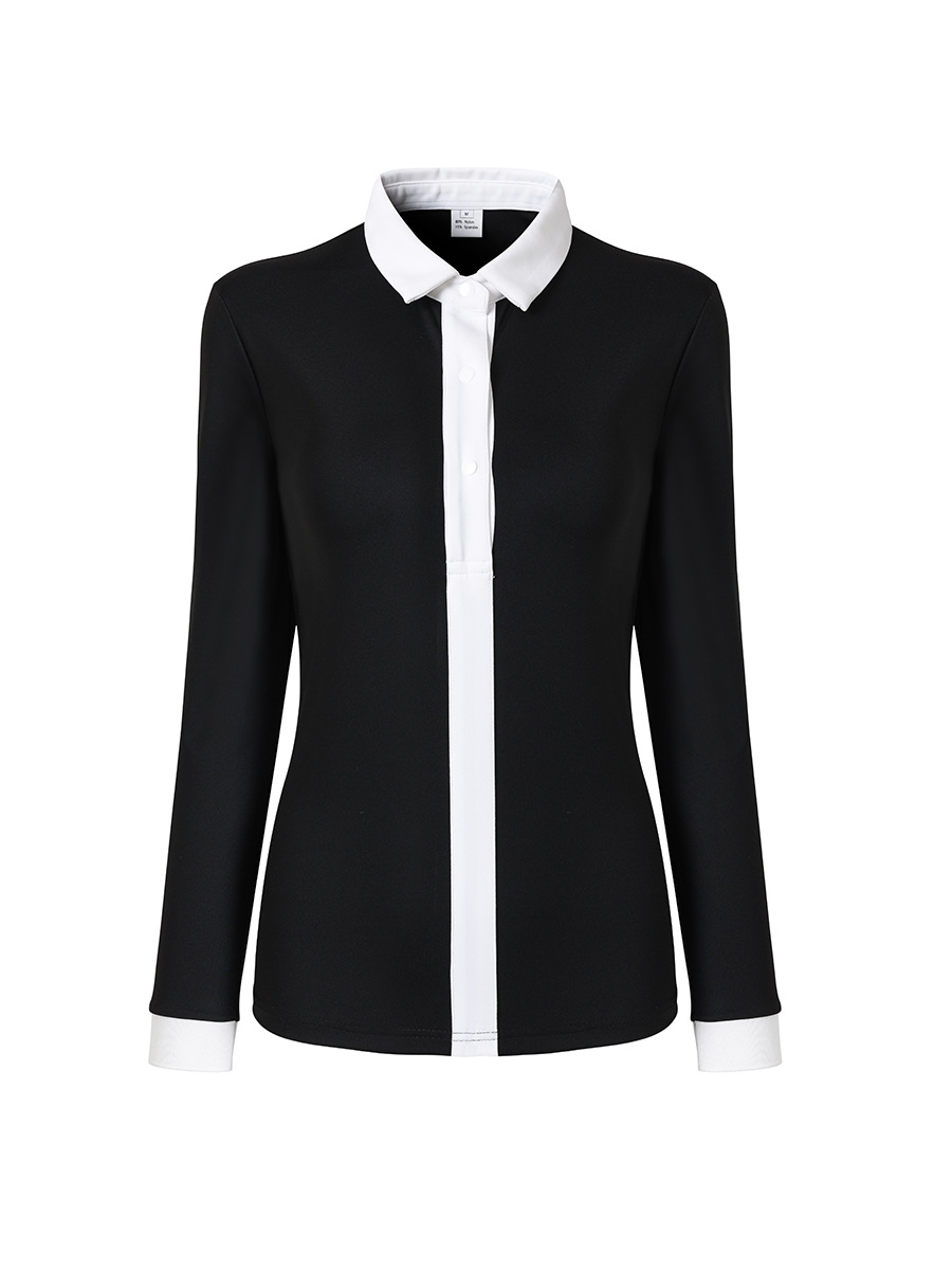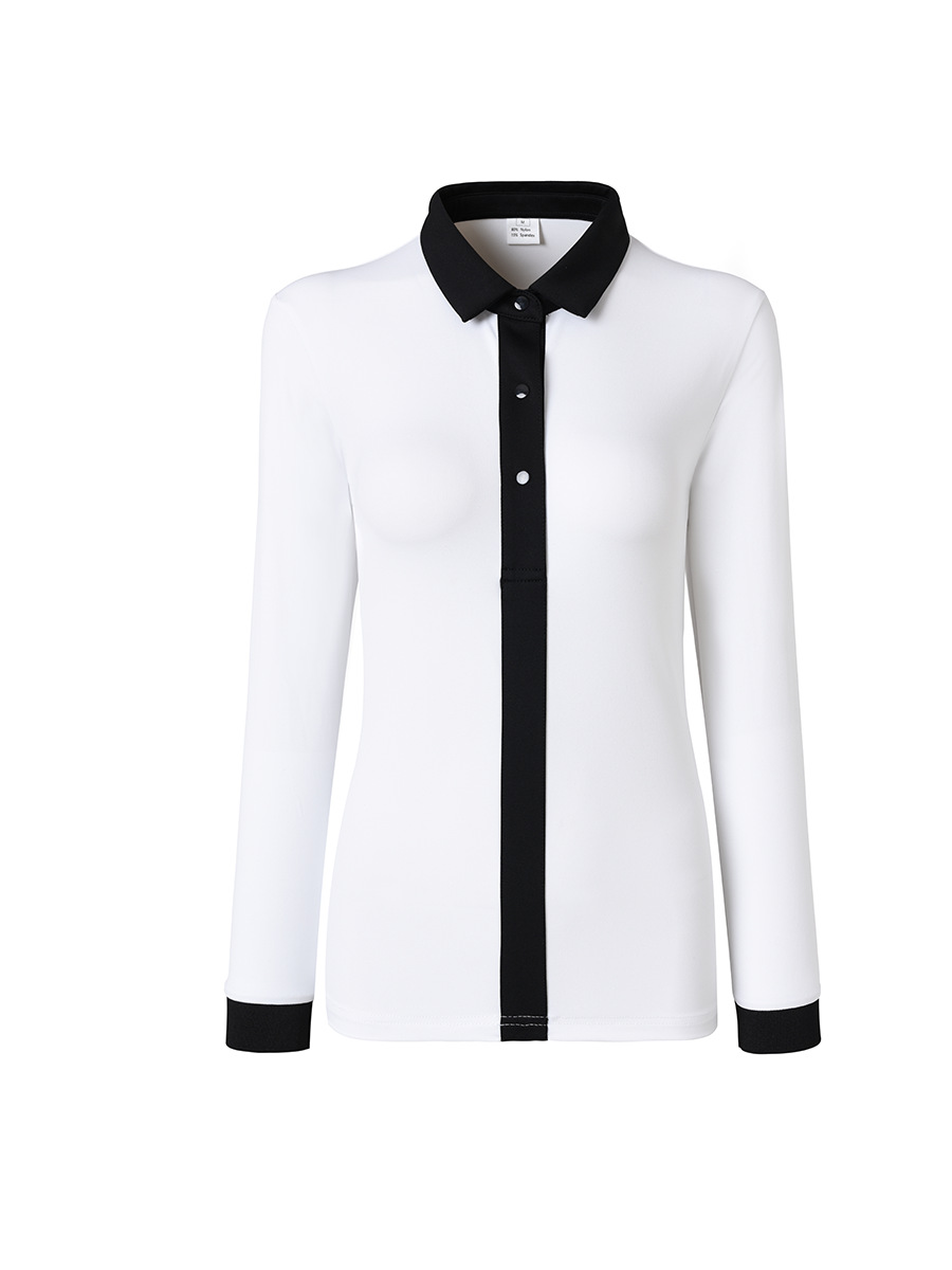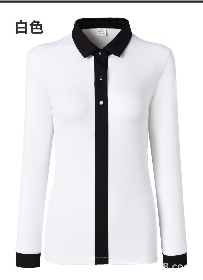 골프 의류 여성 봄과 가을 긴팔 새 옷깃 슬림핏 올매치 대비 컬러 스티칭 탑 유행 스트레치 폴로 셔츠
