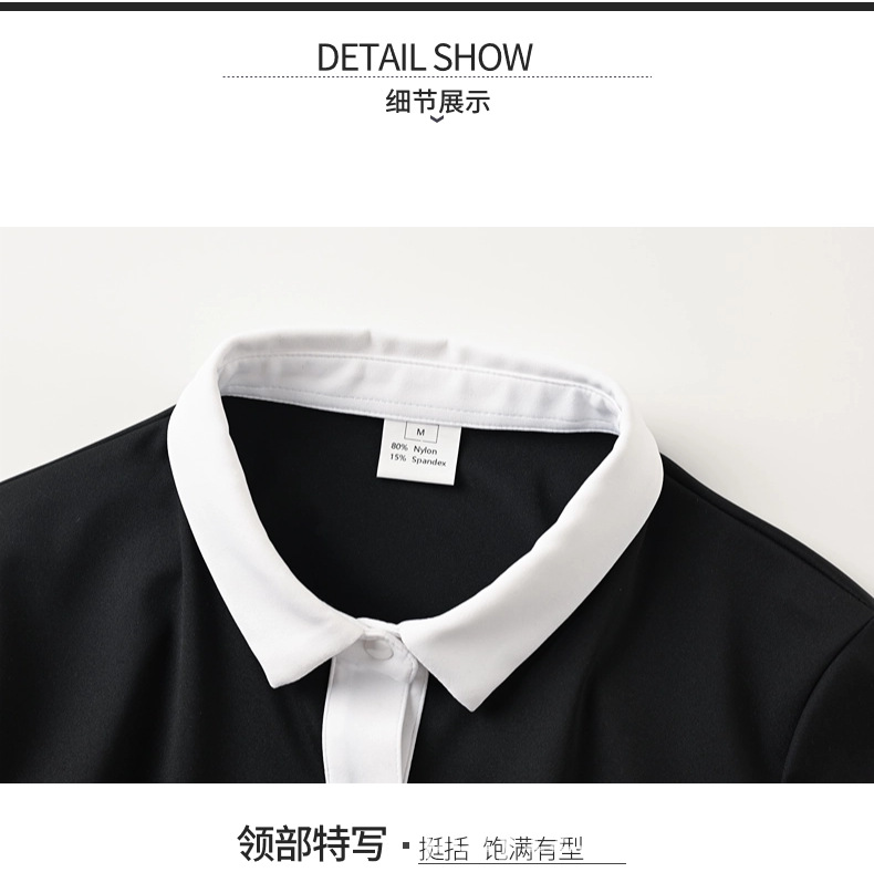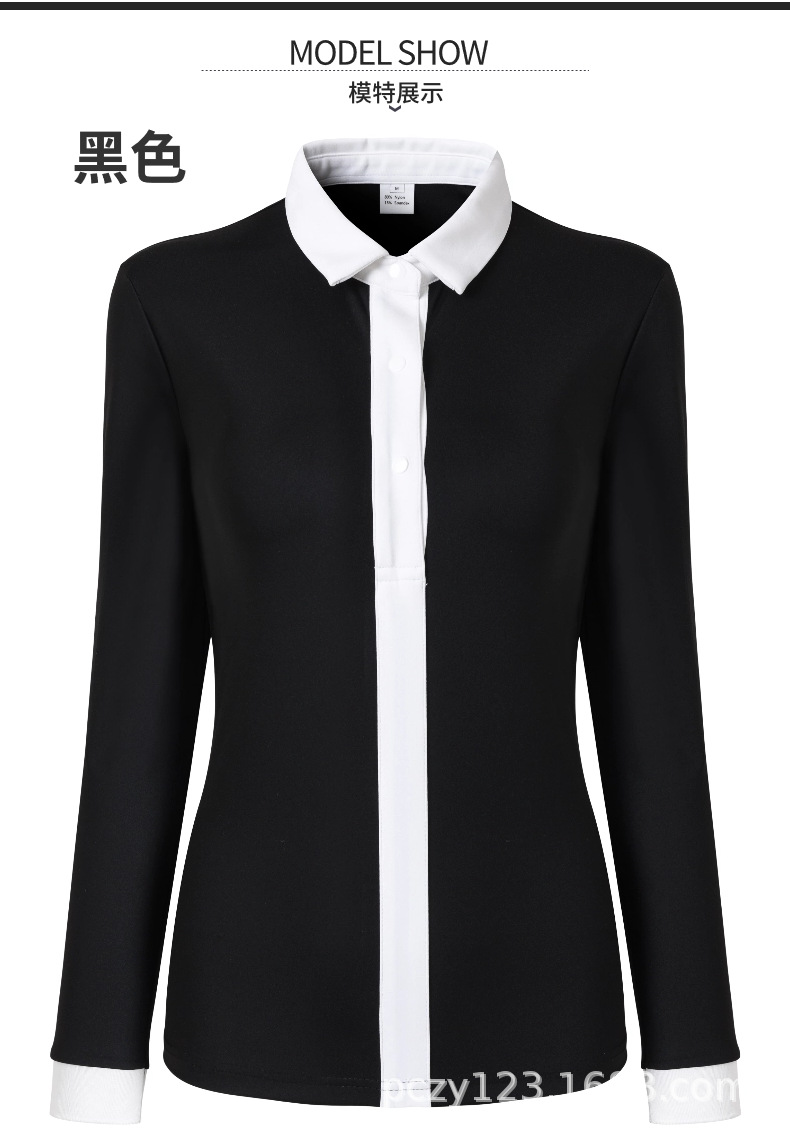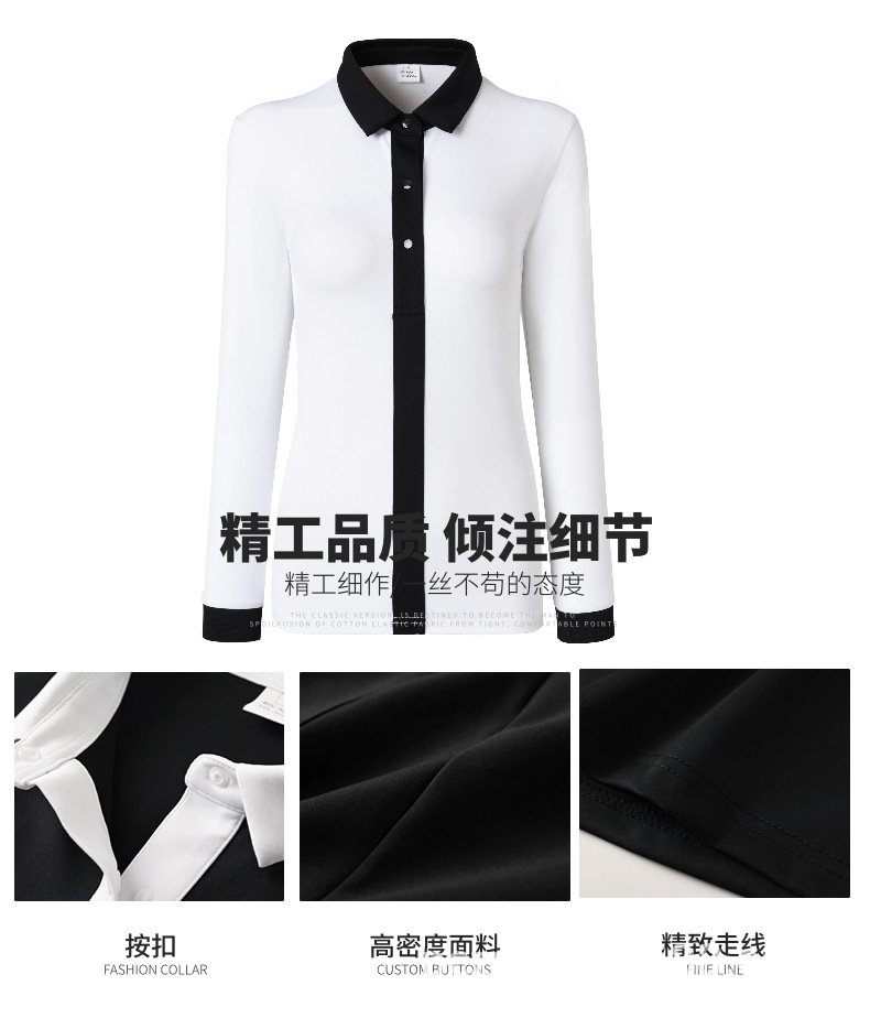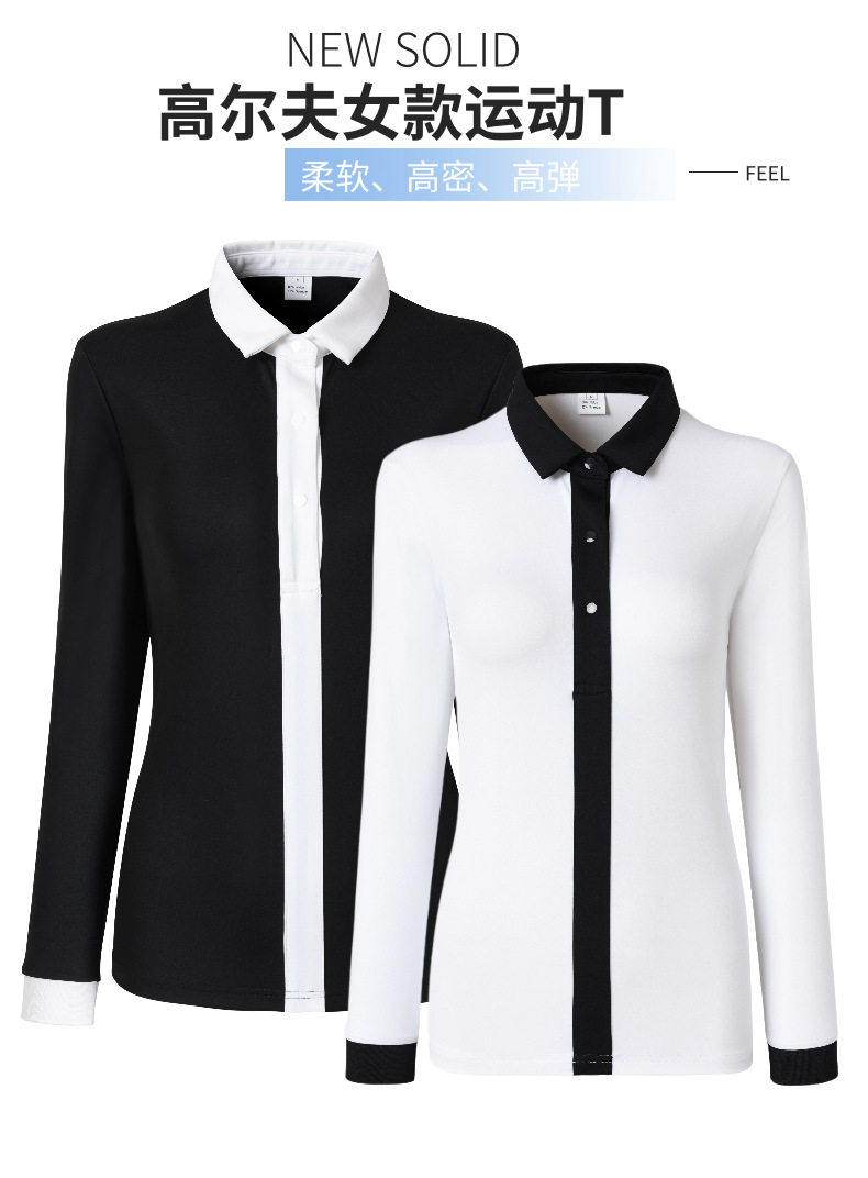 高尔夫服女春秋长袖新款翻领修身百搭撞色拼接上衣时尚弹力polo衫