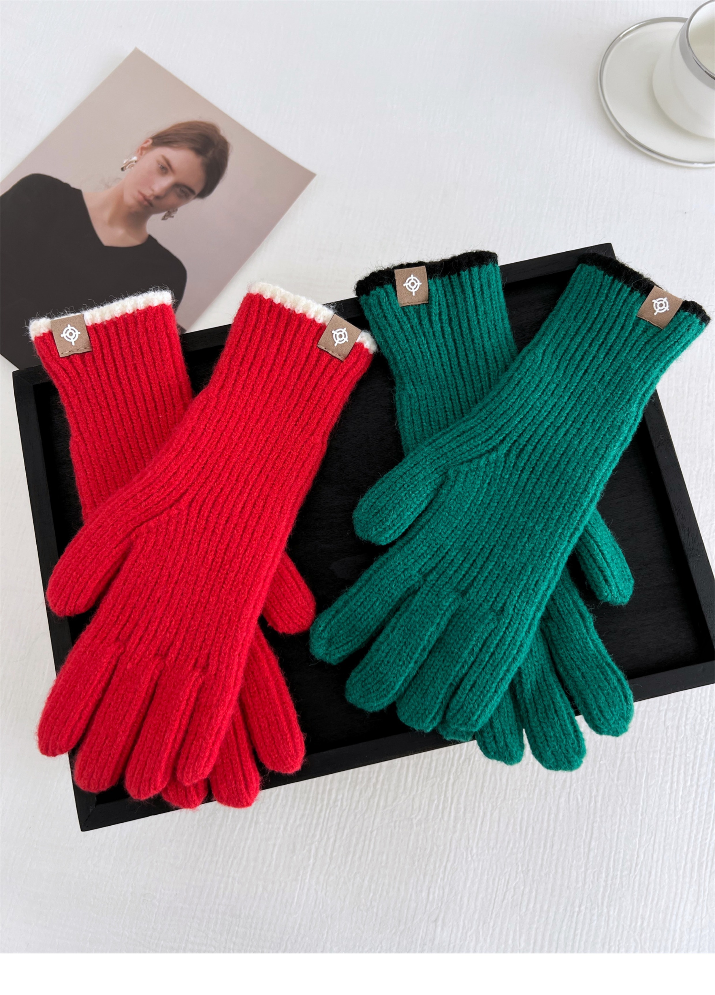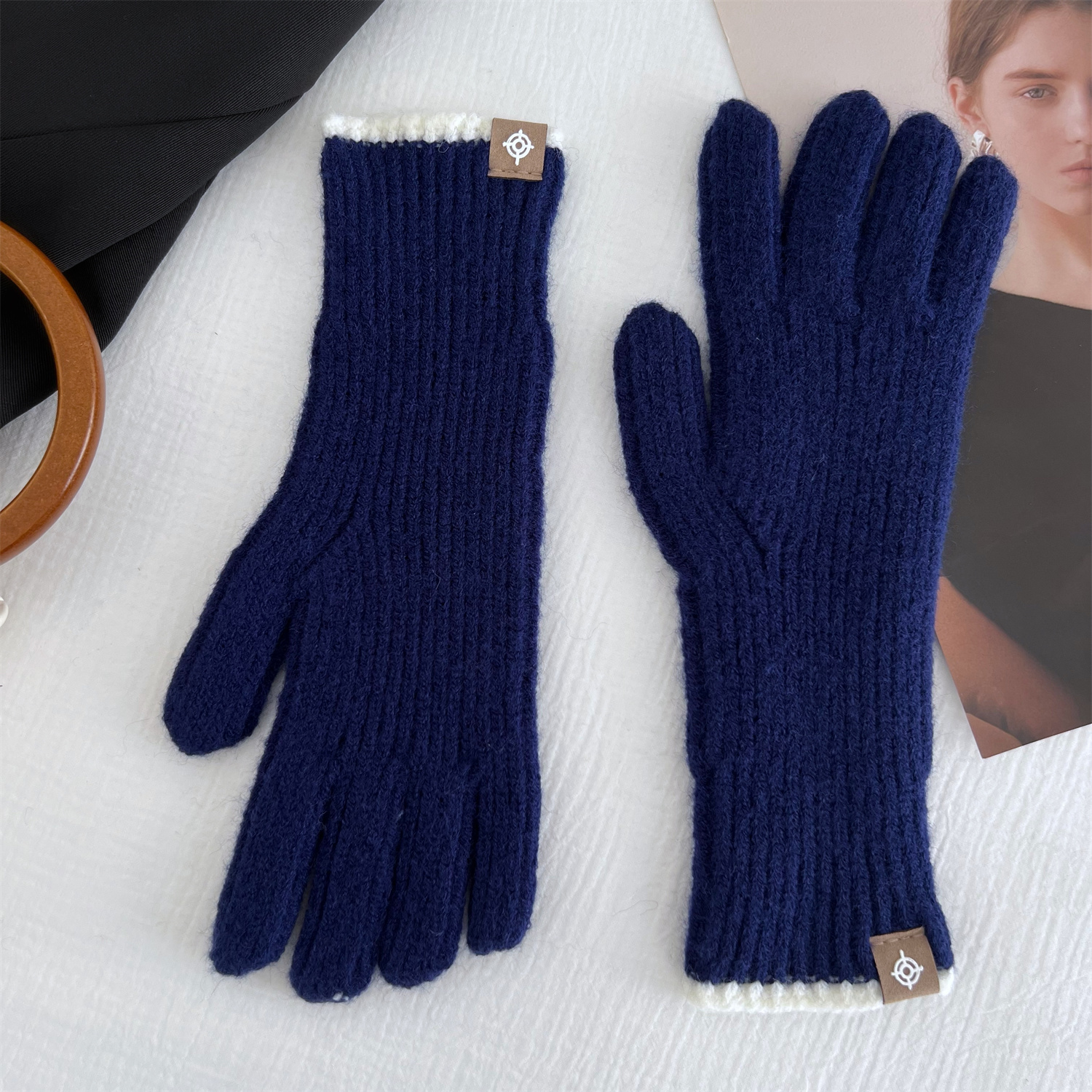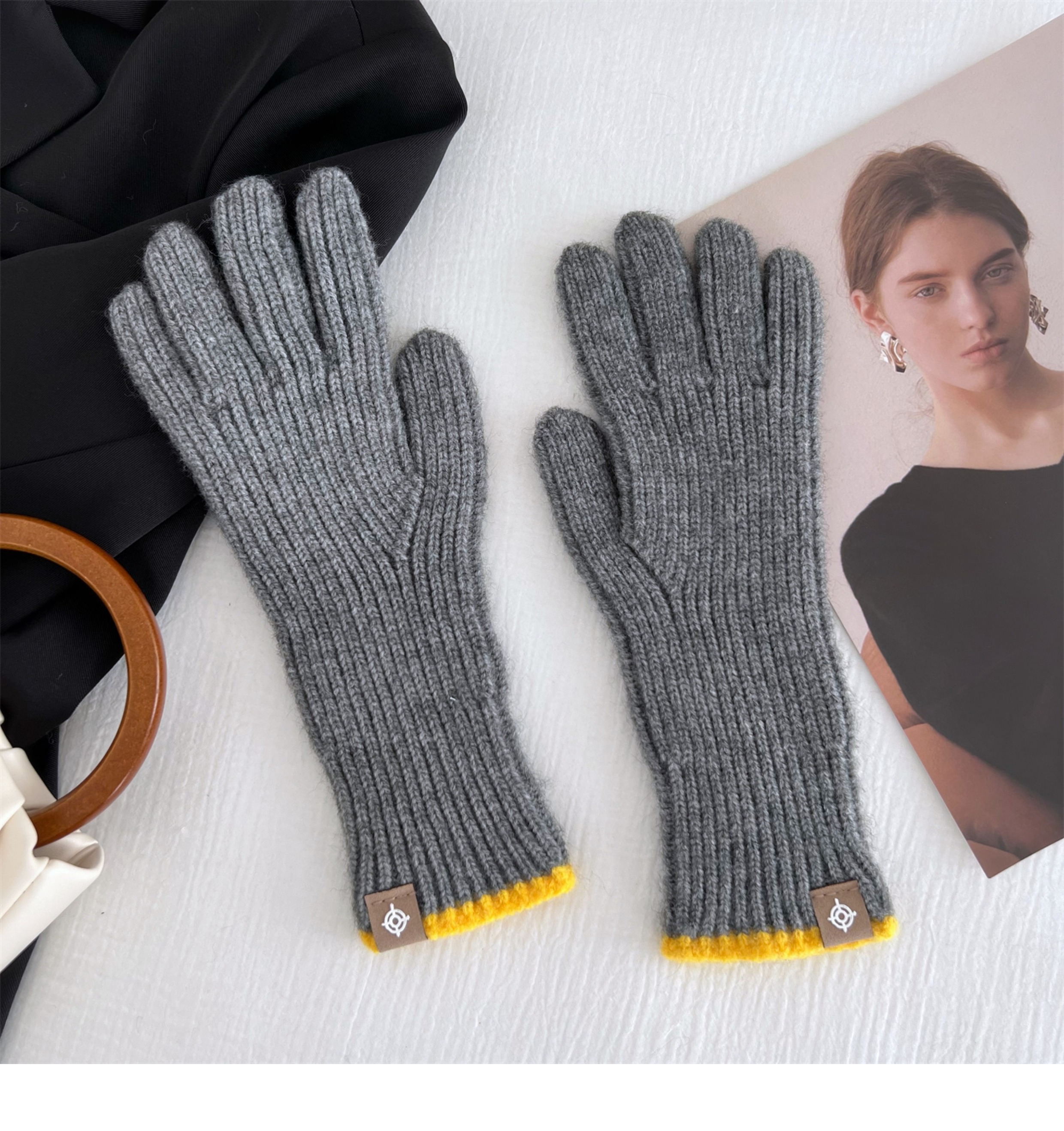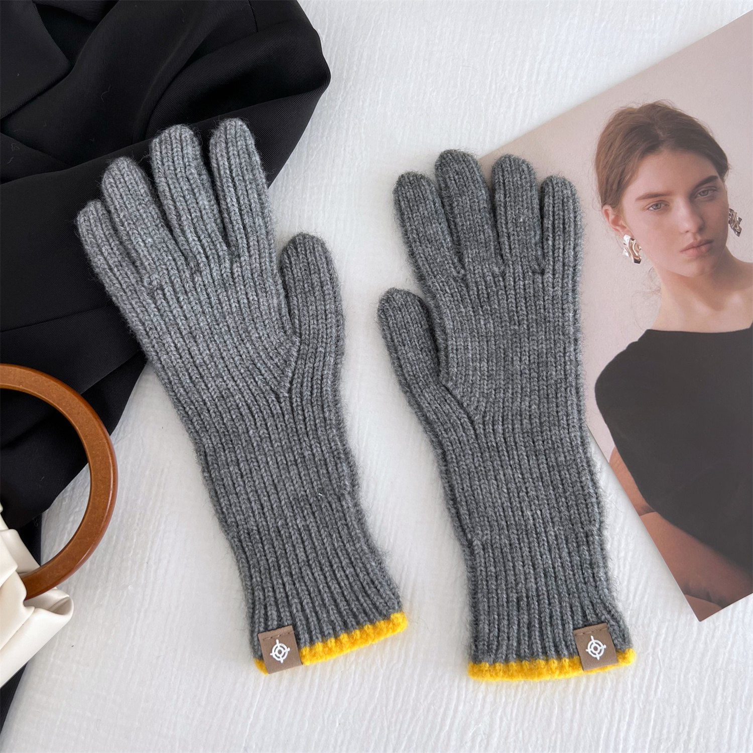 한국 따뜻한 대비 색상 대학 스타일 캐주얼 따뜻한 손가락 장갑 인터넷 유명 인사 터치 스크린 다양한 니트 장갑