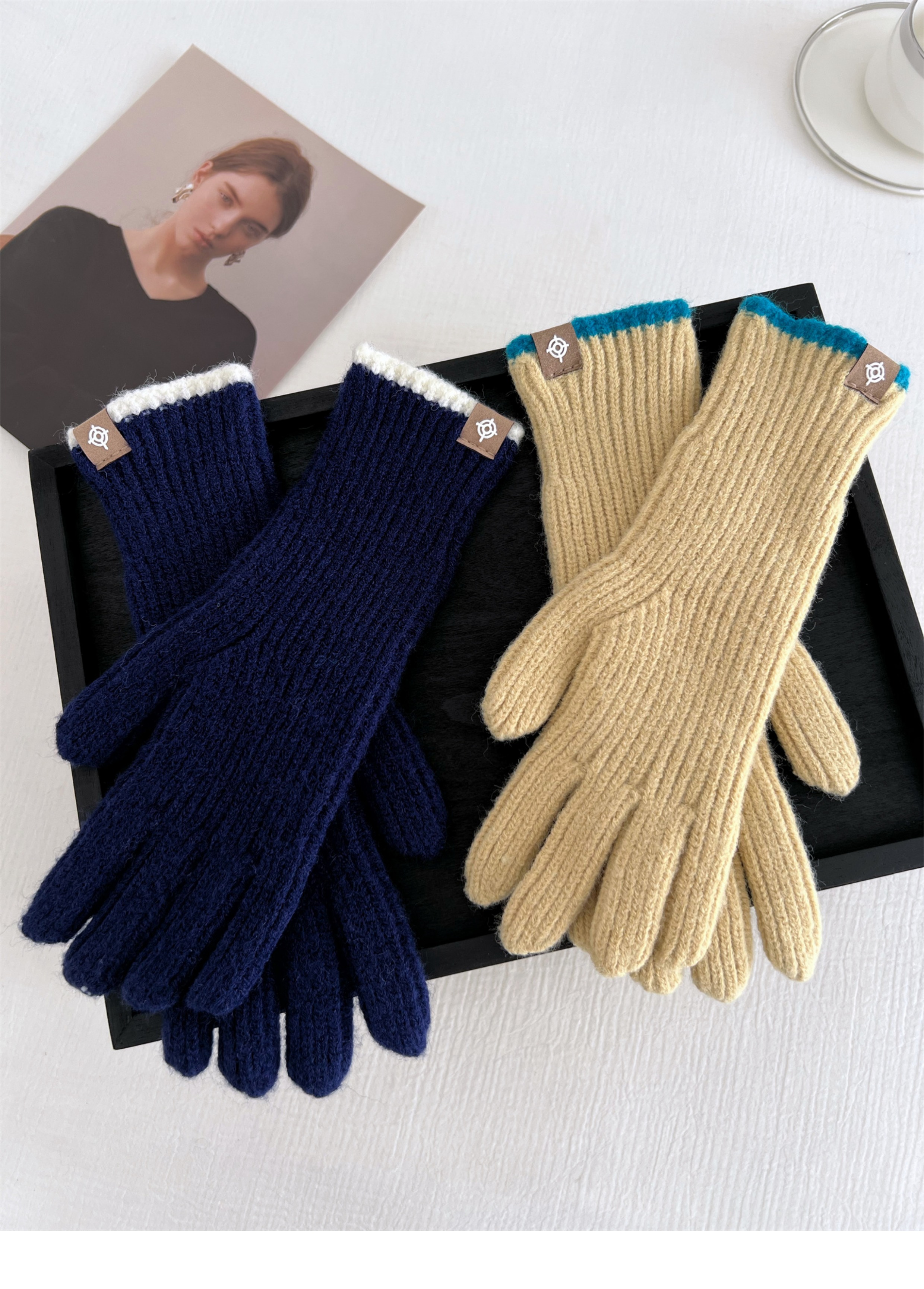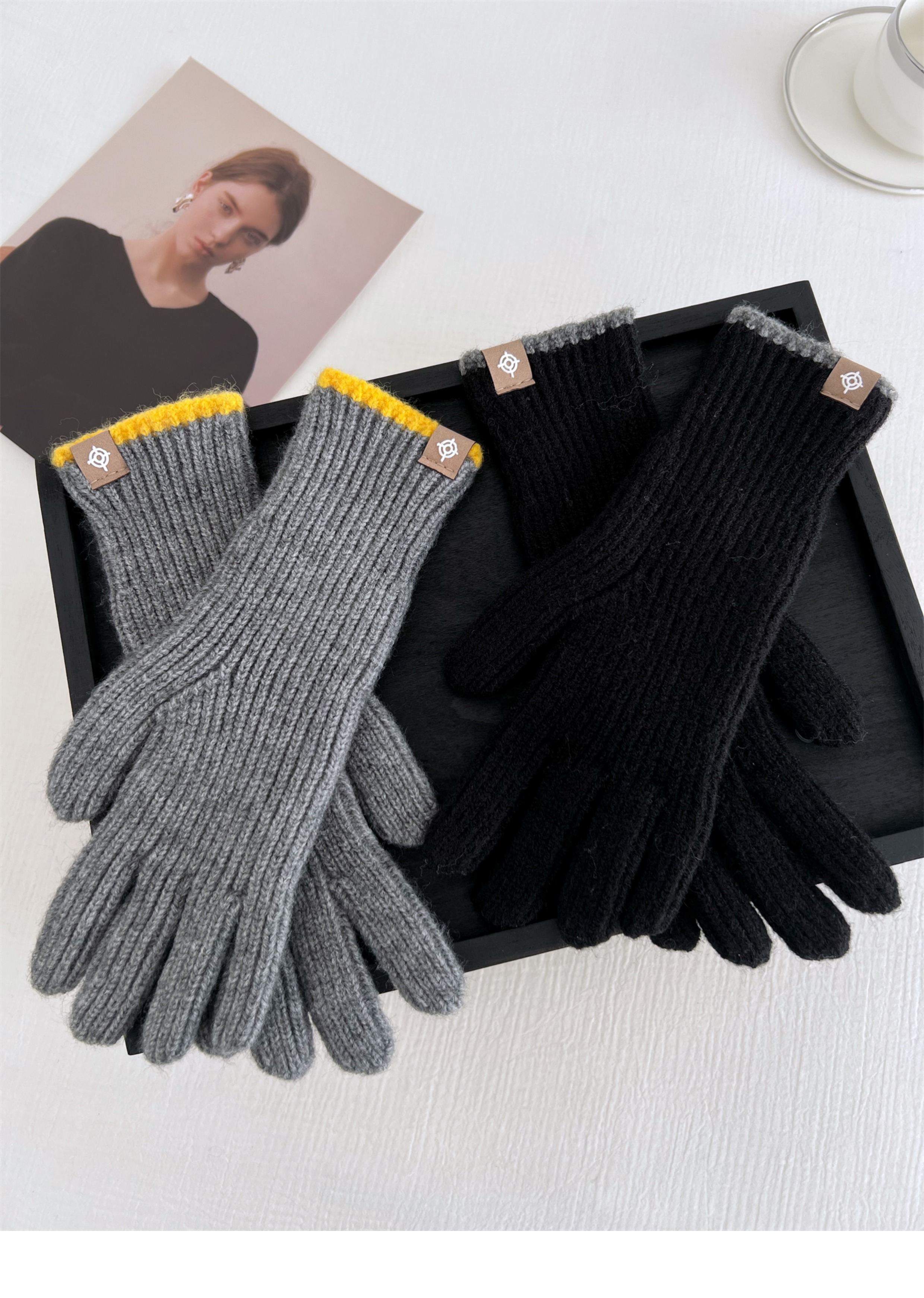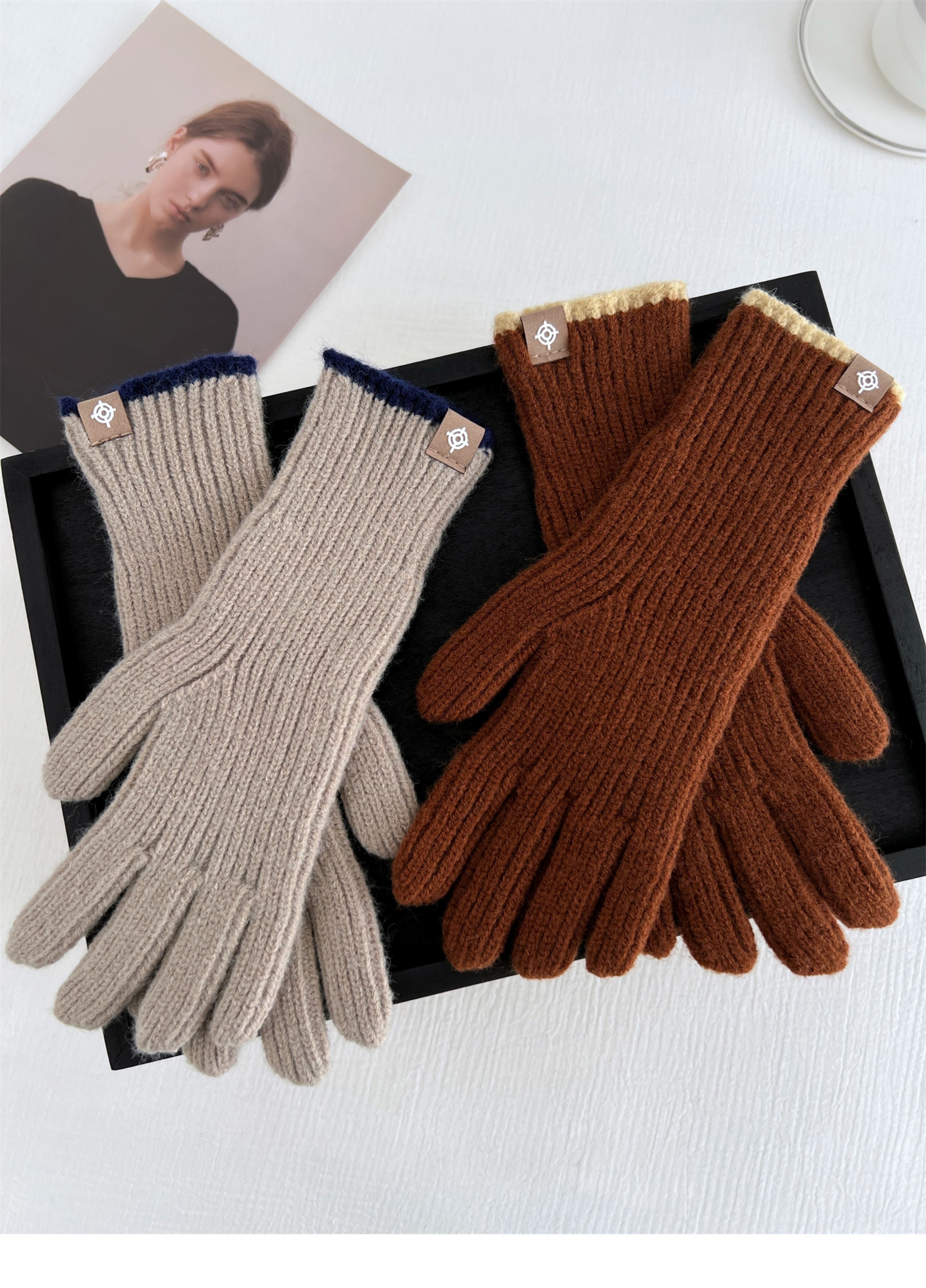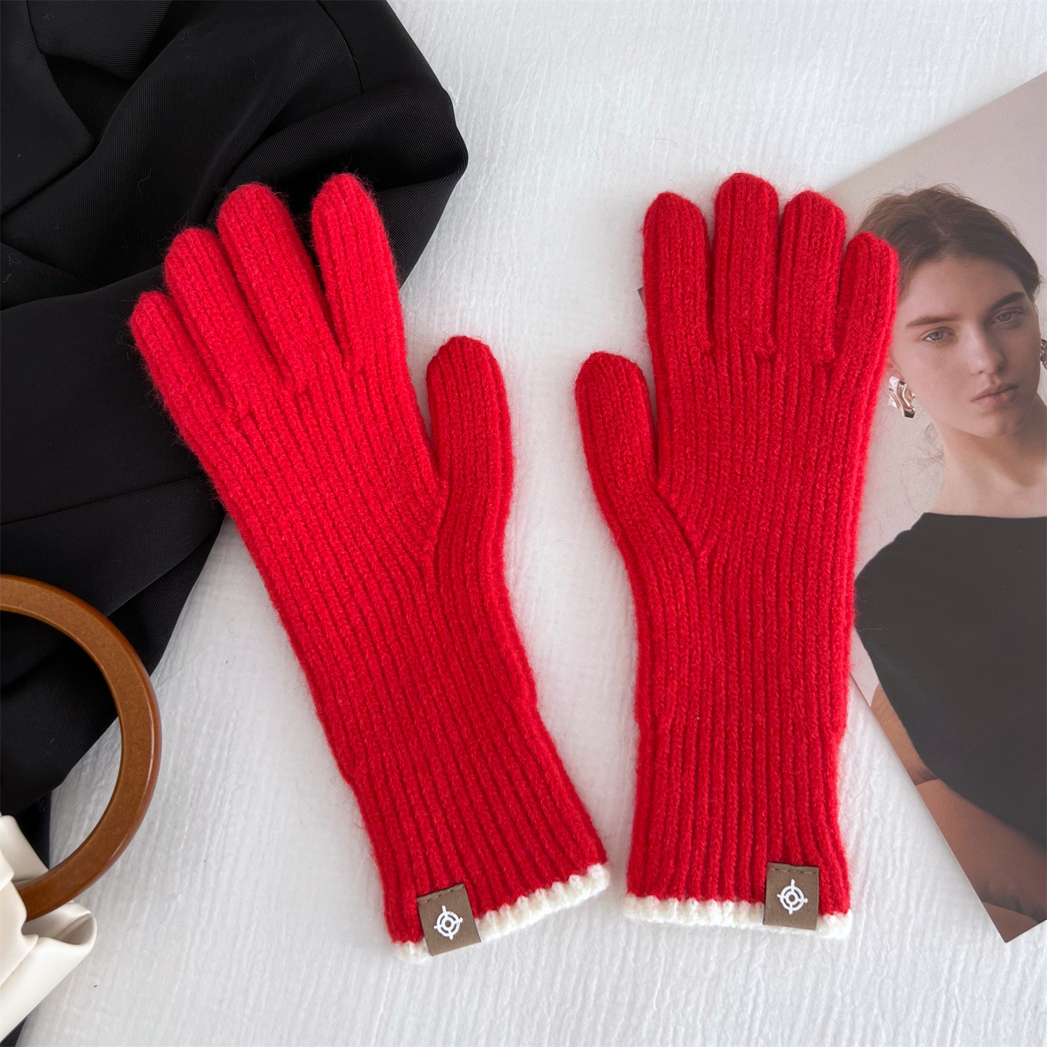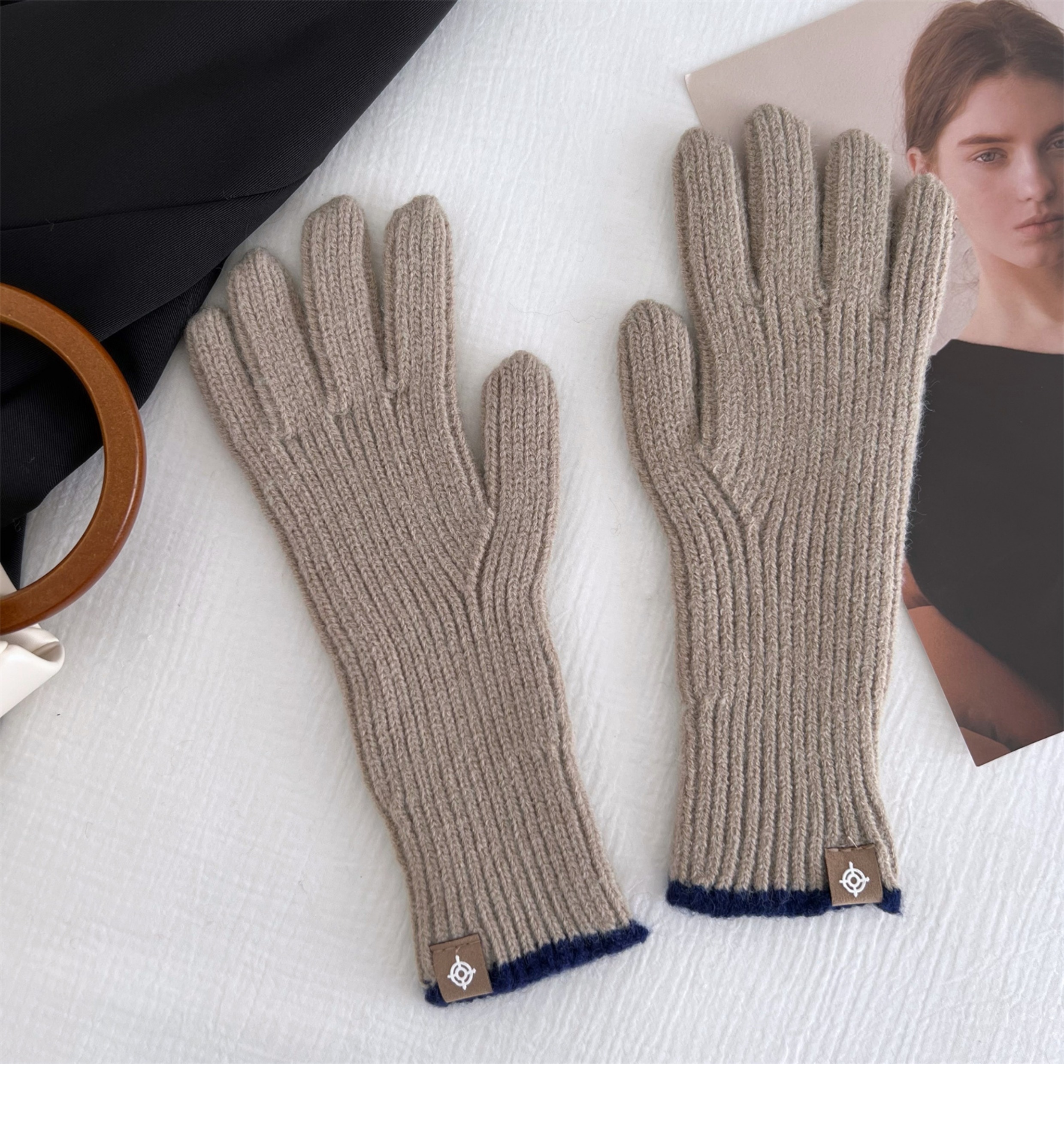 한국 따뜻한 대비 색상 대학 스타일 캐주얼 따뜻한 손가락 장갑 인터넷 유명 인사 터치 스크린 다양한 니트 장갑