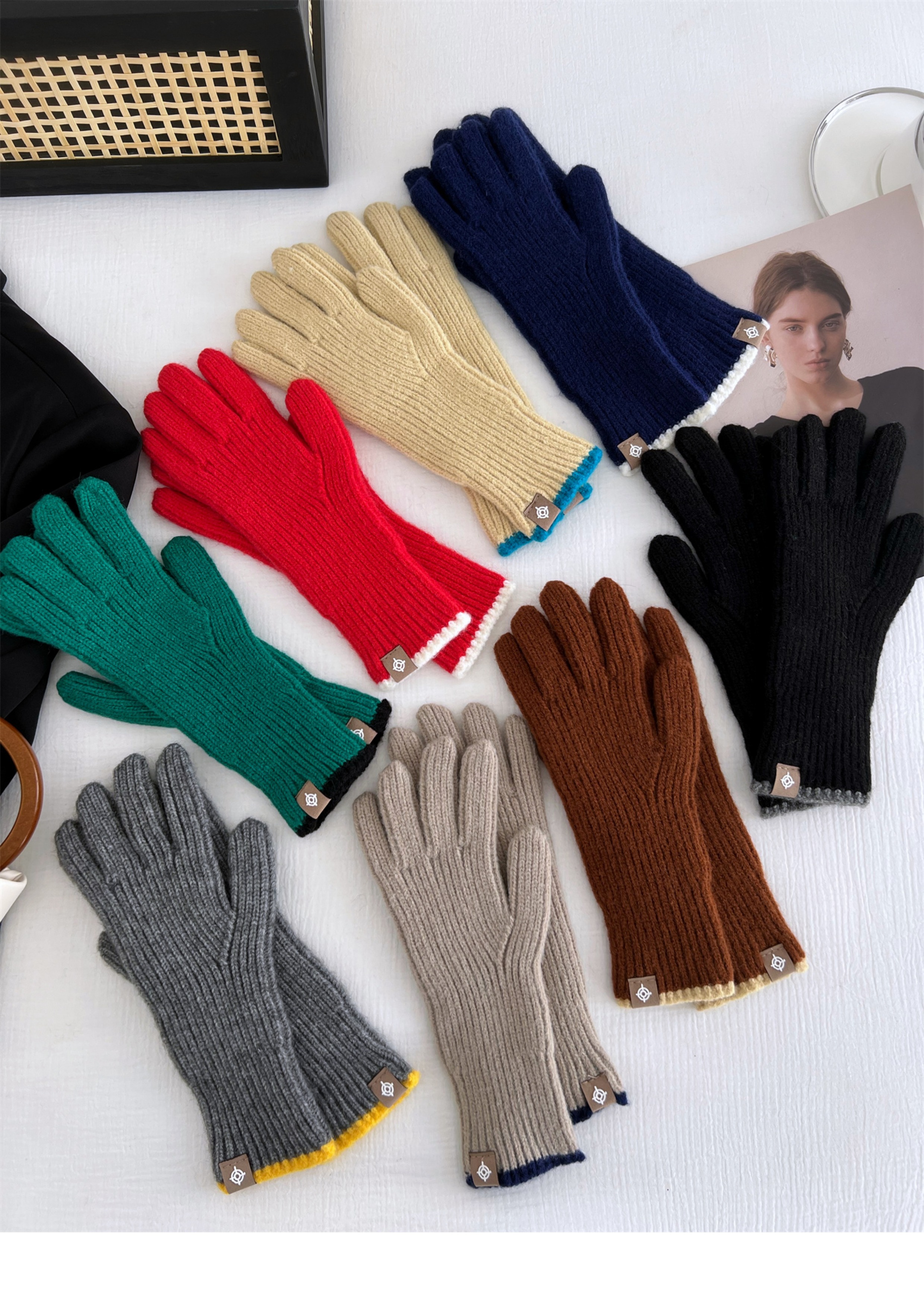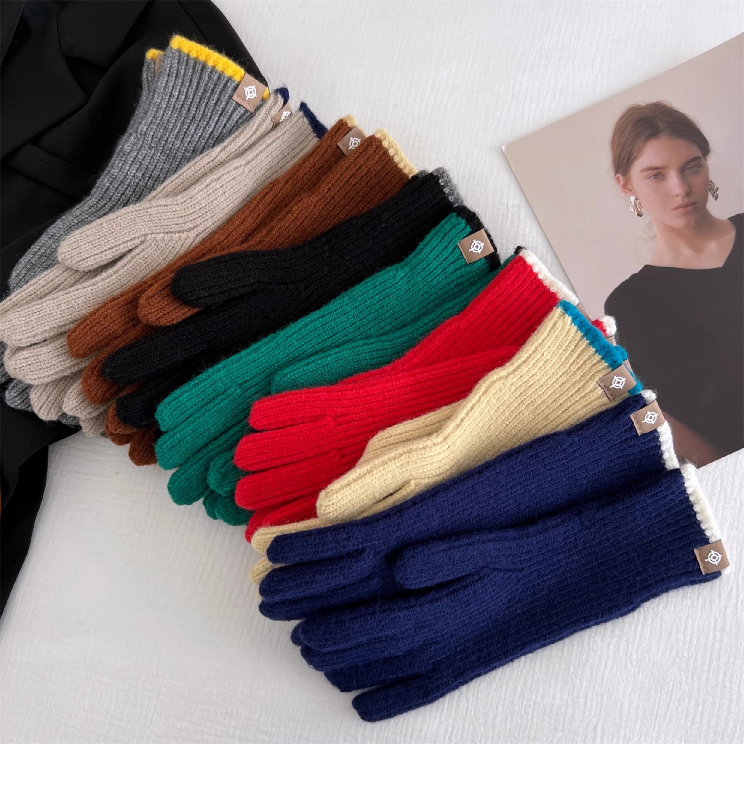 한국 따뜻한 대비 색상 대학 스타일 캐주얼 따뜻한 손가락 장갑 인터넷 유명 인사 터치 스크린 다양한 니트 장갑스토어 가기