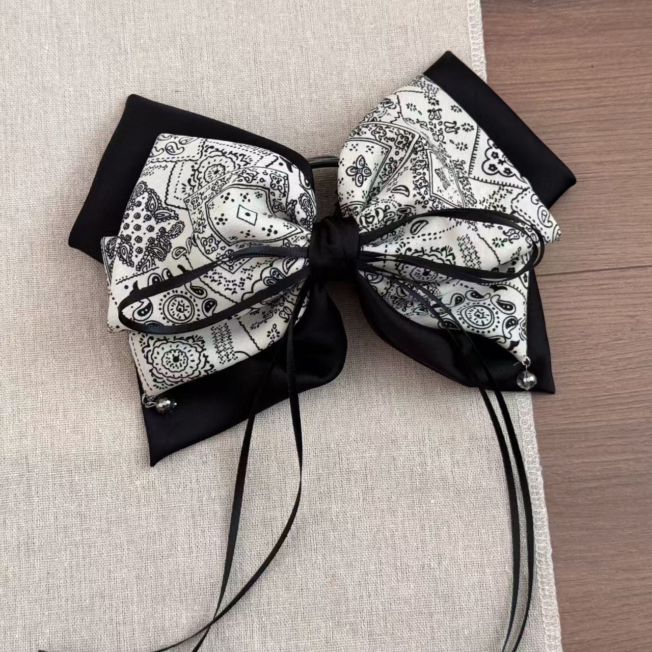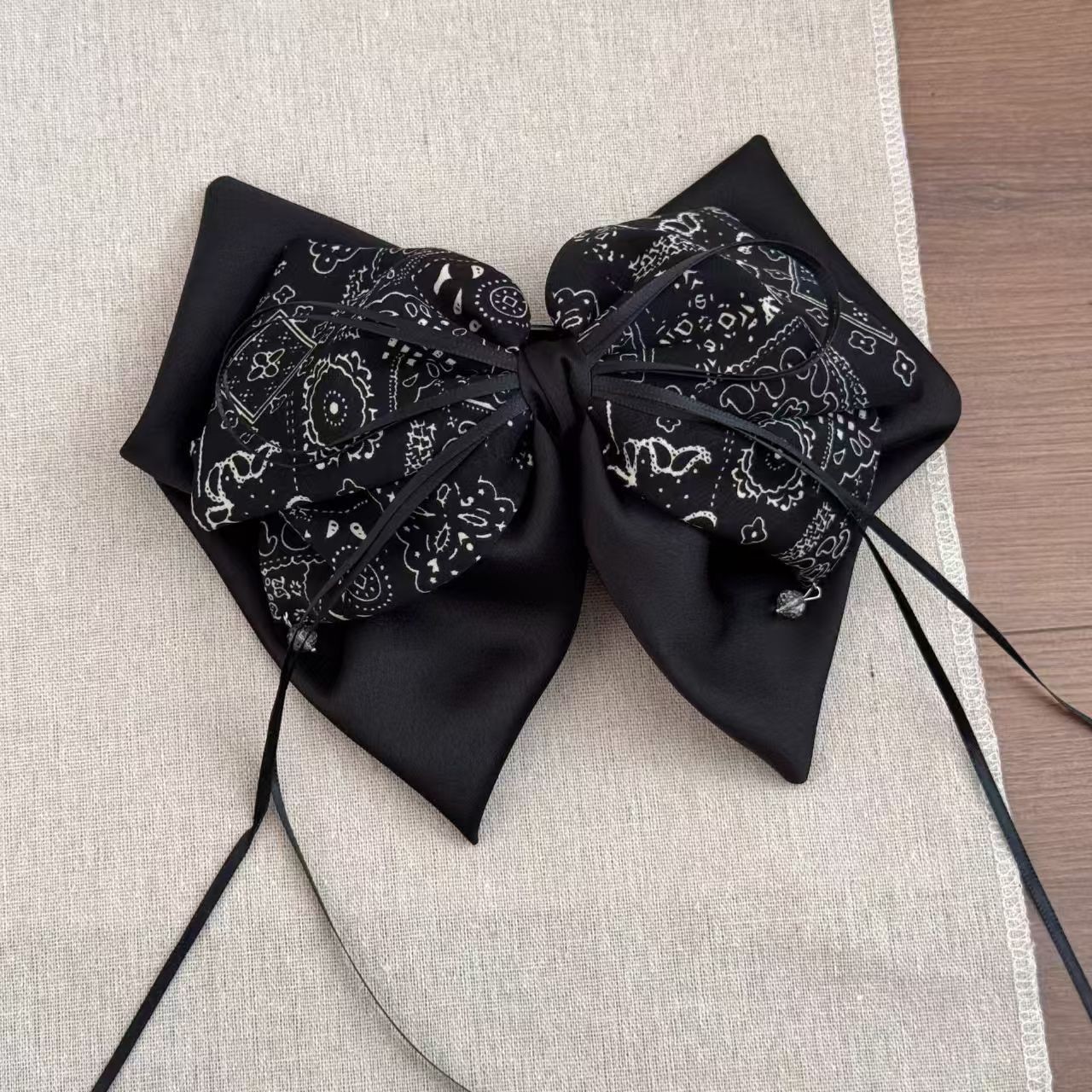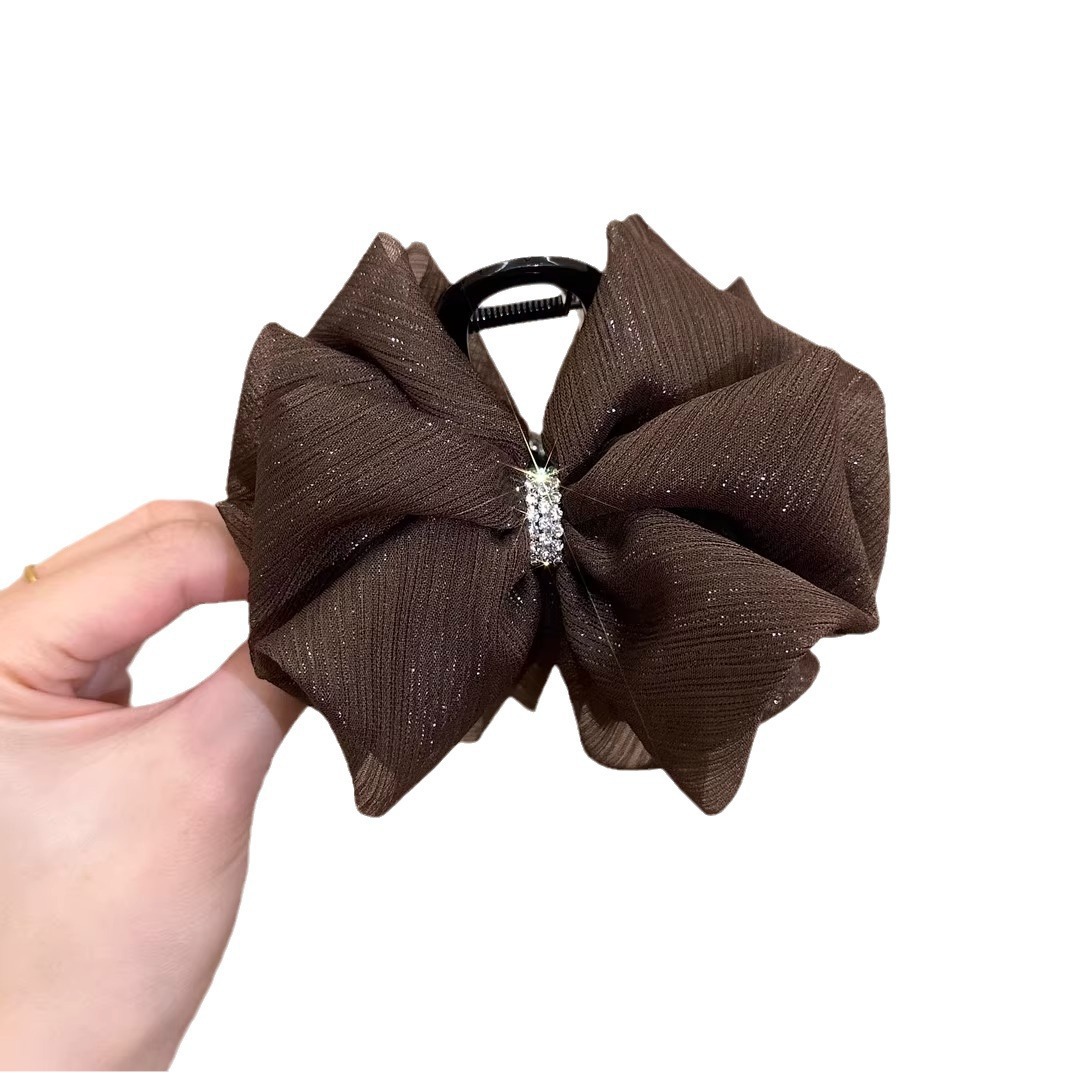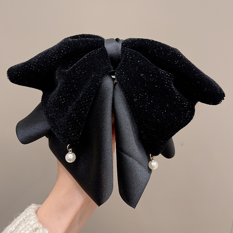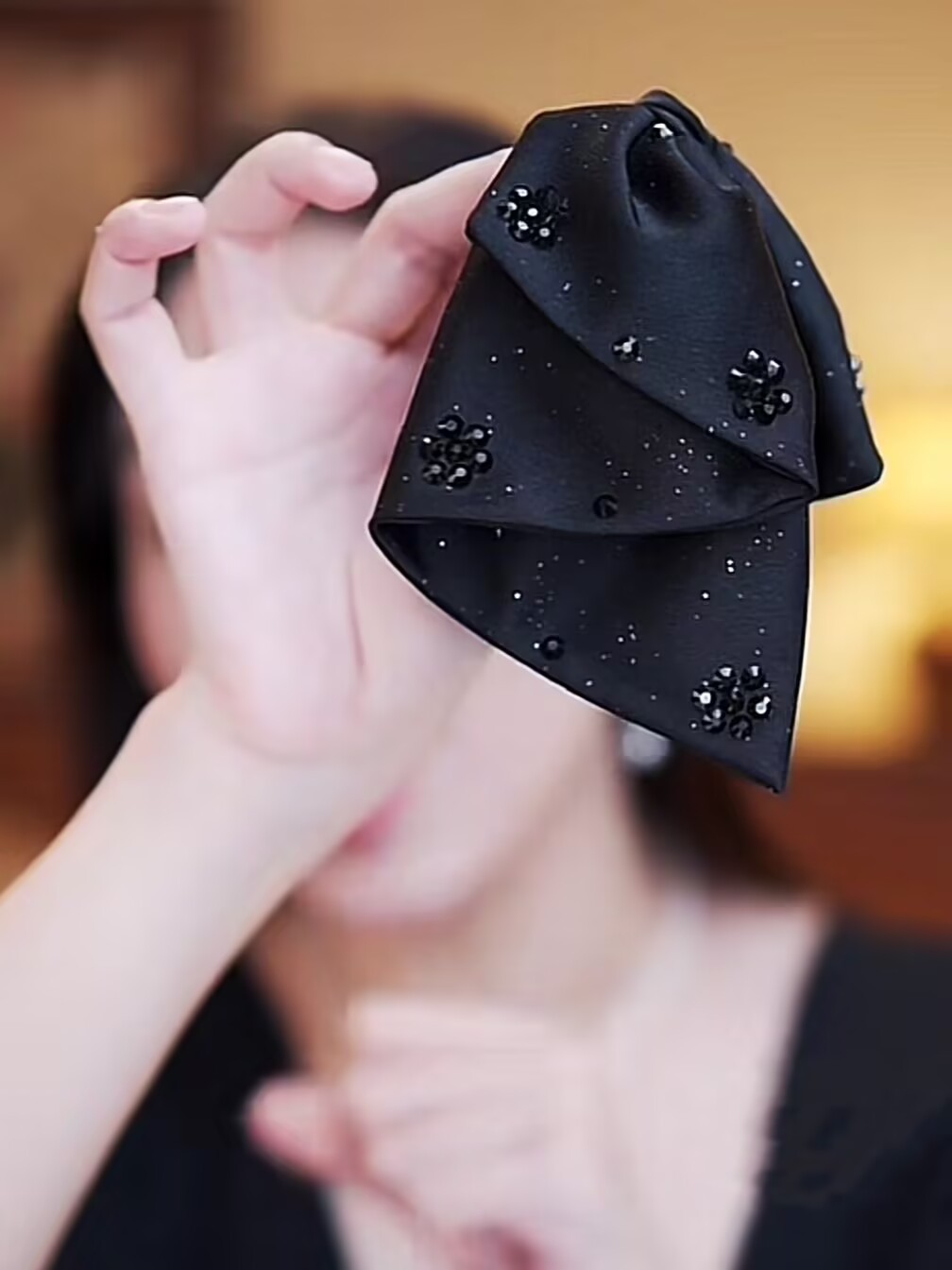 高级感缎面大号黑色蝴蝶结鲨鱼夹头饰方形钻后脑勺发夹抓夹女发卡