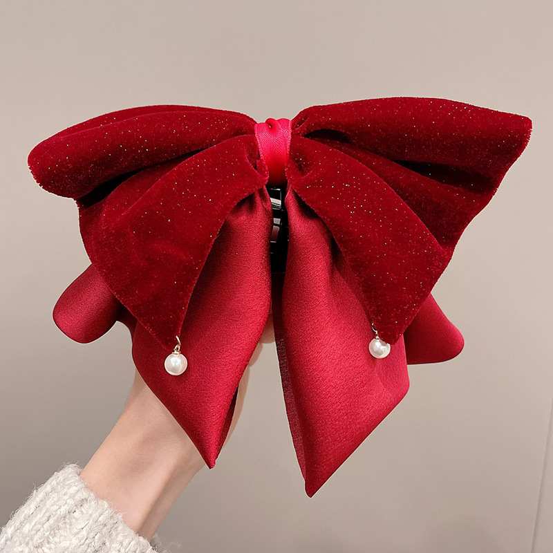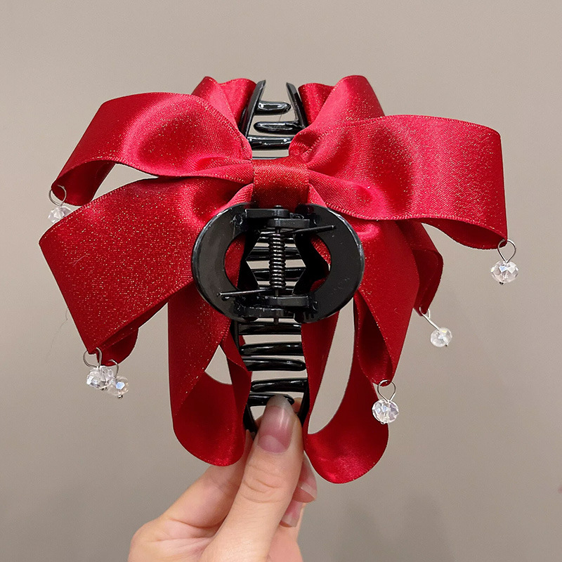 • 크리스마스 레드 리본 크리스탈 집게핀