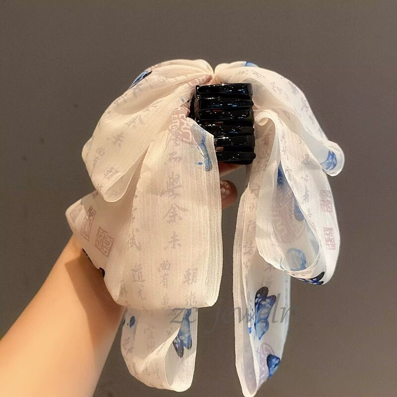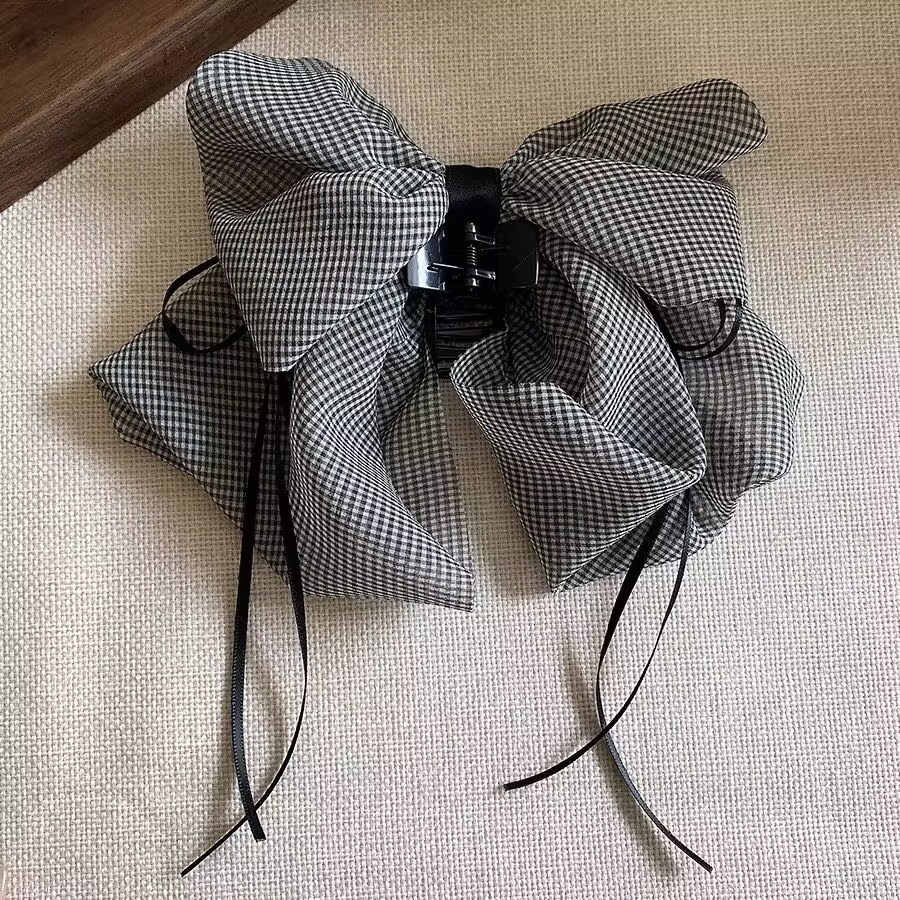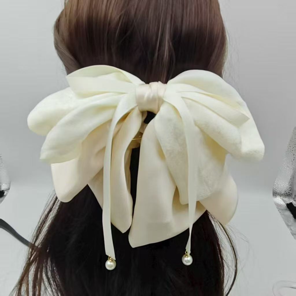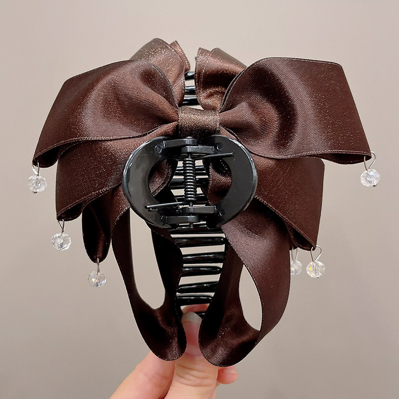 빈티지 새틴 활 그랩 클립 여성용 하이 엔드 우아한 우아한 로우 포니 테일 클립 백 헤드 클립 헤어 클립