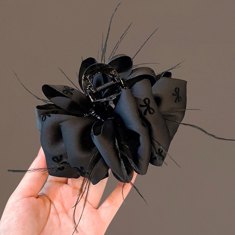 气质感羽毛黑色蝴蝶结抓夹女泡泡云朵发夹后脑勺大号鲨鱼夹