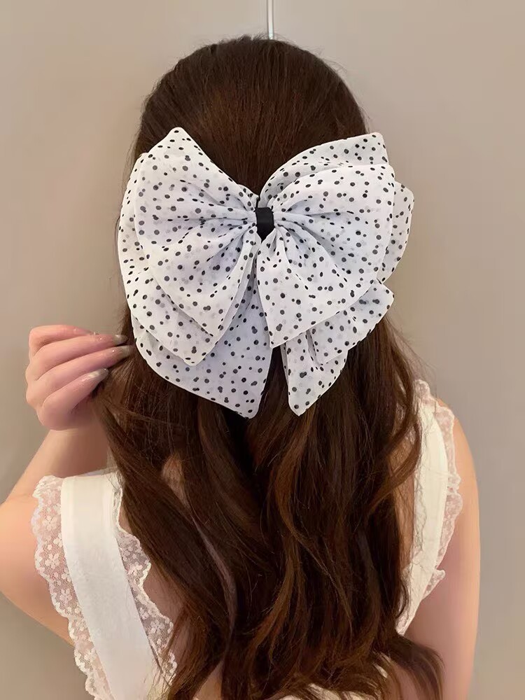 • 블랙 새틴 폴카 도트 클라우드 클립