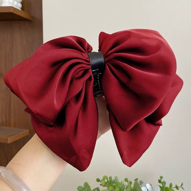 复古缎面蝴蝶结抓夹女高级感气质优雅低马尾夹后脑勺夹子头饰发夹