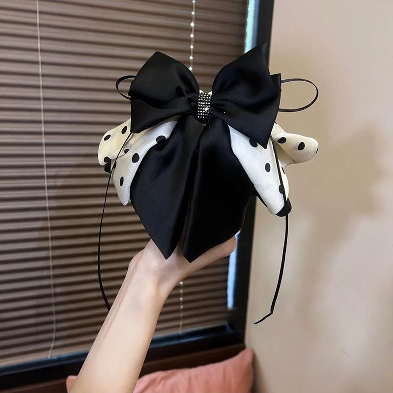 • 블랙(골드래빗) 새틴 폴카 도트 클라우드 클립