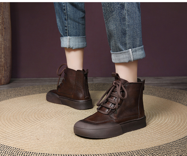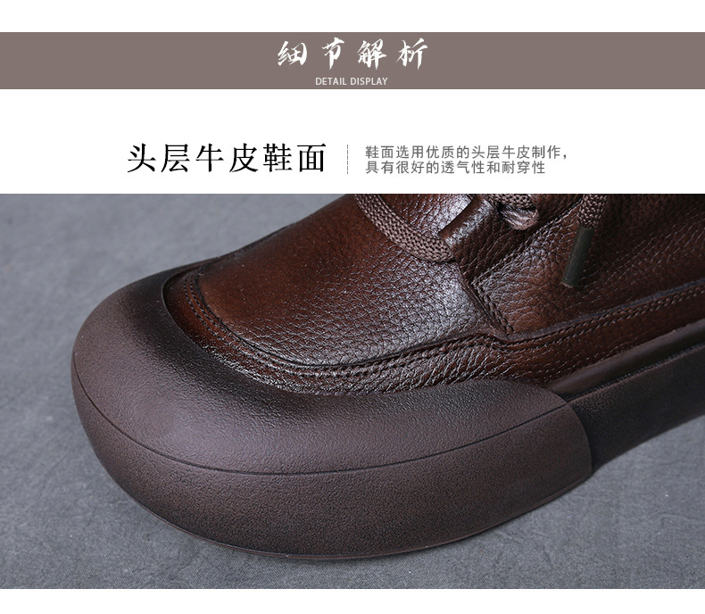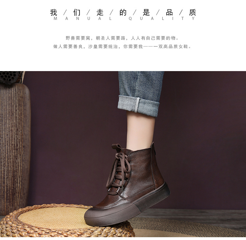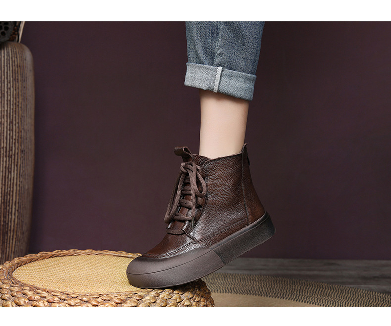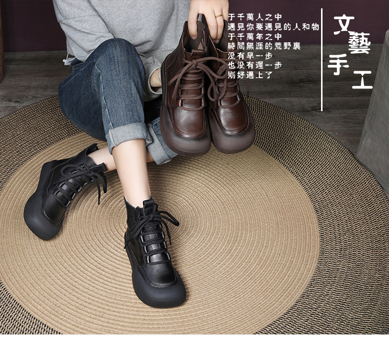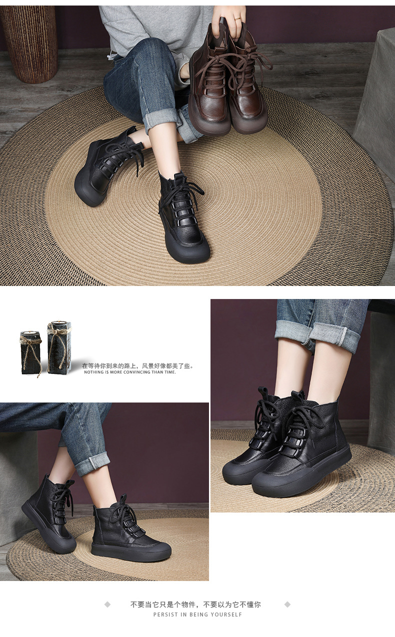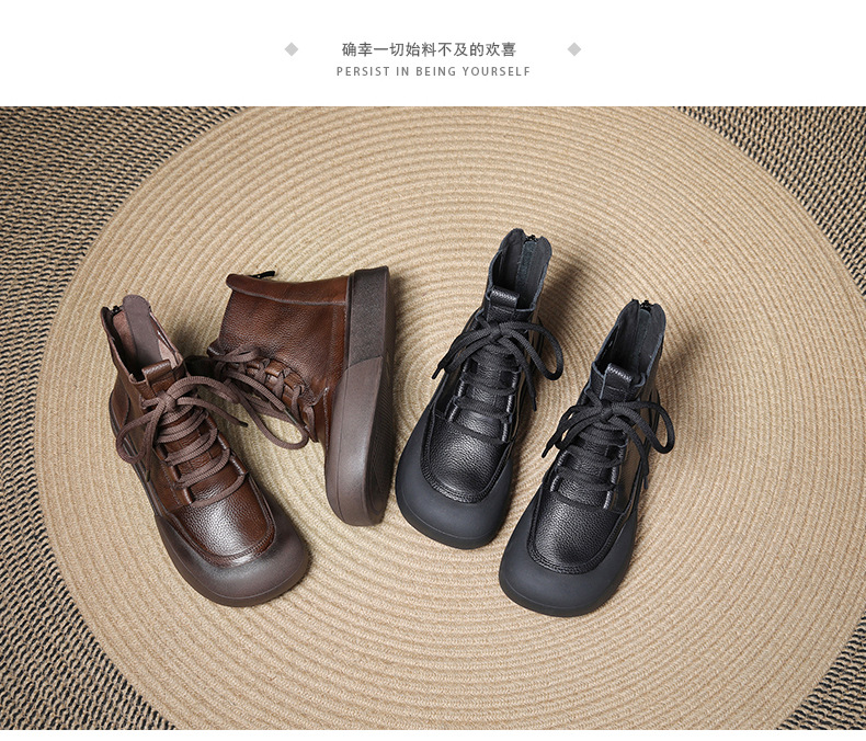 Delphinium 2024 가을과 겨울 새로운 첫 번째 레이어 소 가죽 복고풍 캐주얼 플랫 힐 두꺼운 바닥 충돌 방지 발가락 백 지퍼 마틴 부츠스토어 가기