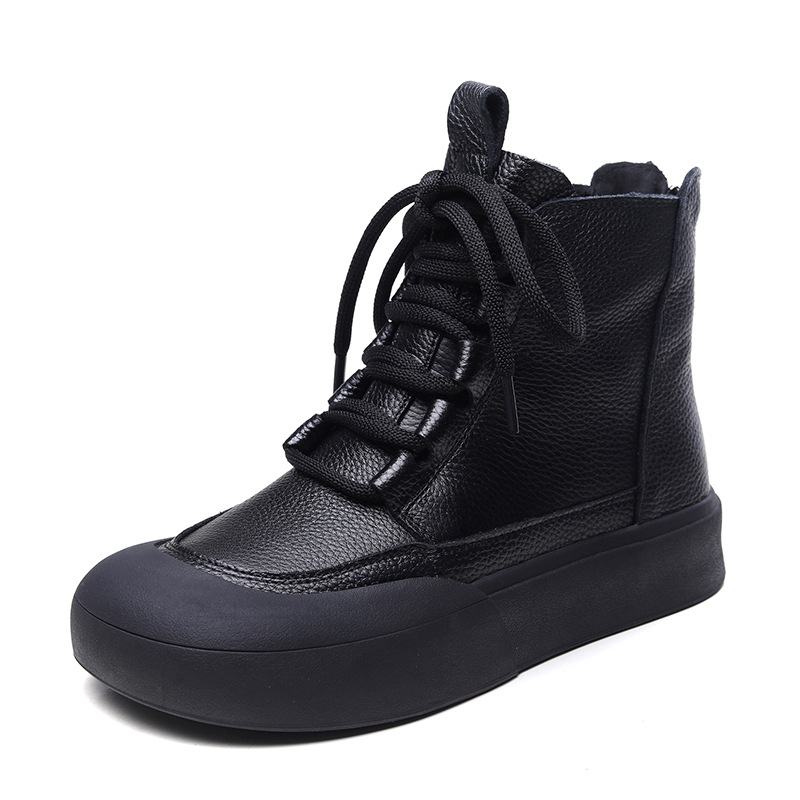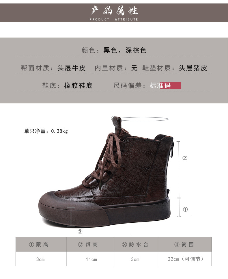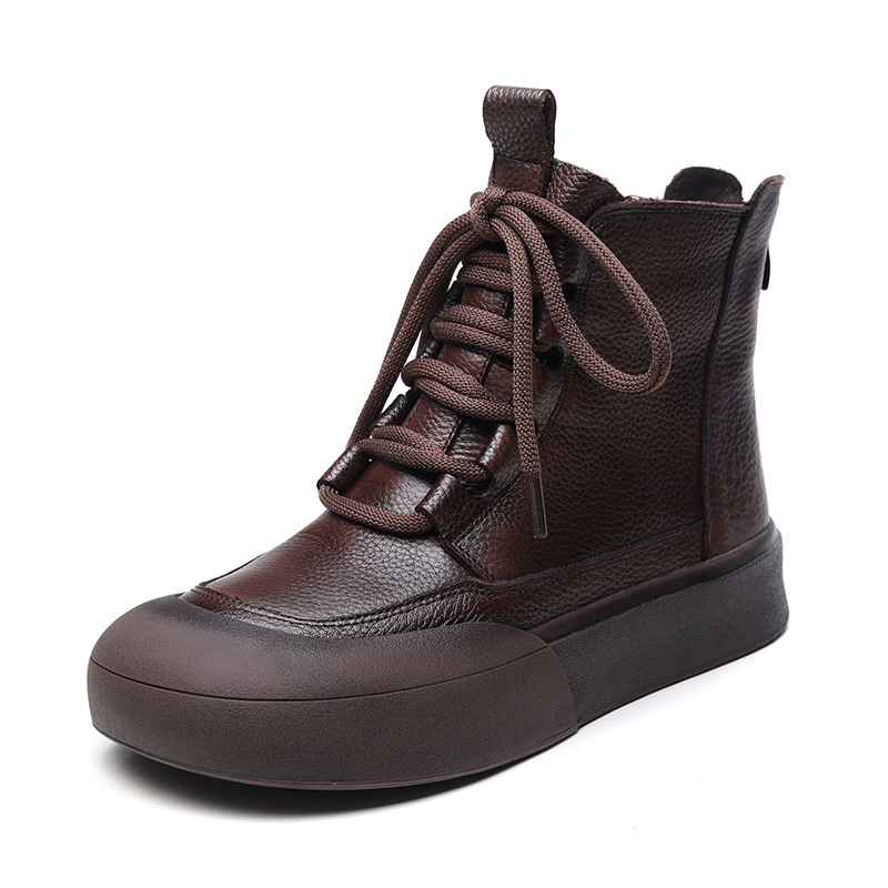 Delphinium 2024 가을과 겨울 새로운 첫 번째 레이어 소 가죽 복고풍 캐주얼 플랫 힐 두꺼운 바닥 충돌 방지 발가락 백 지퍼 마틴 부츠