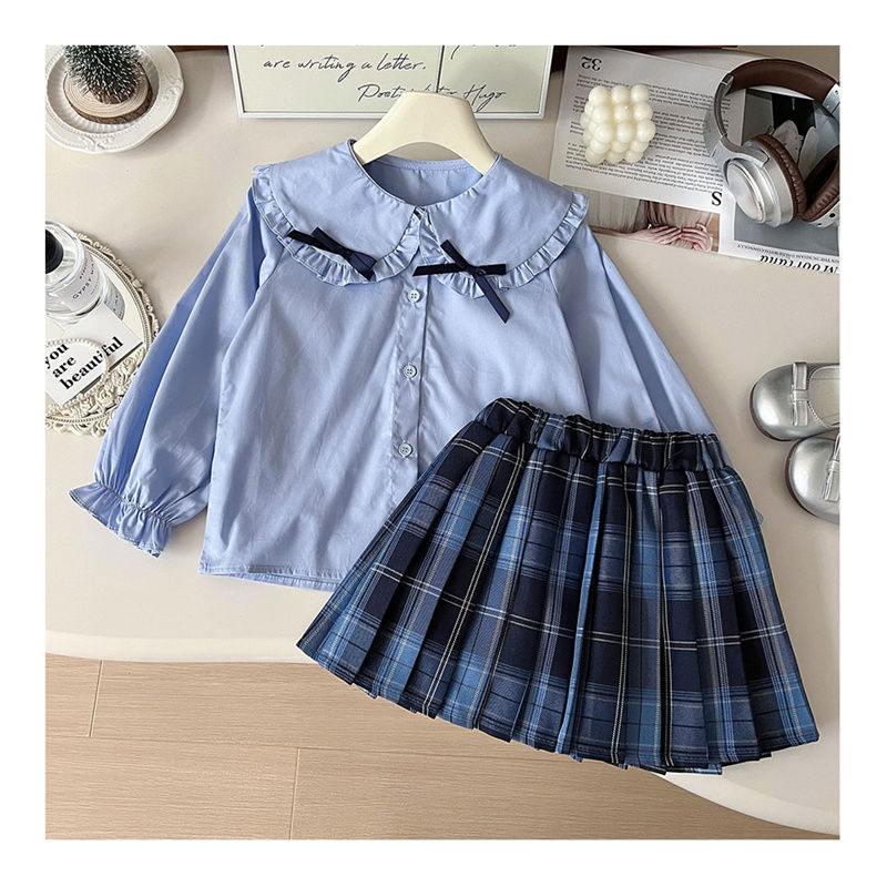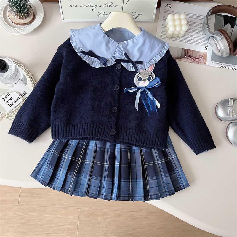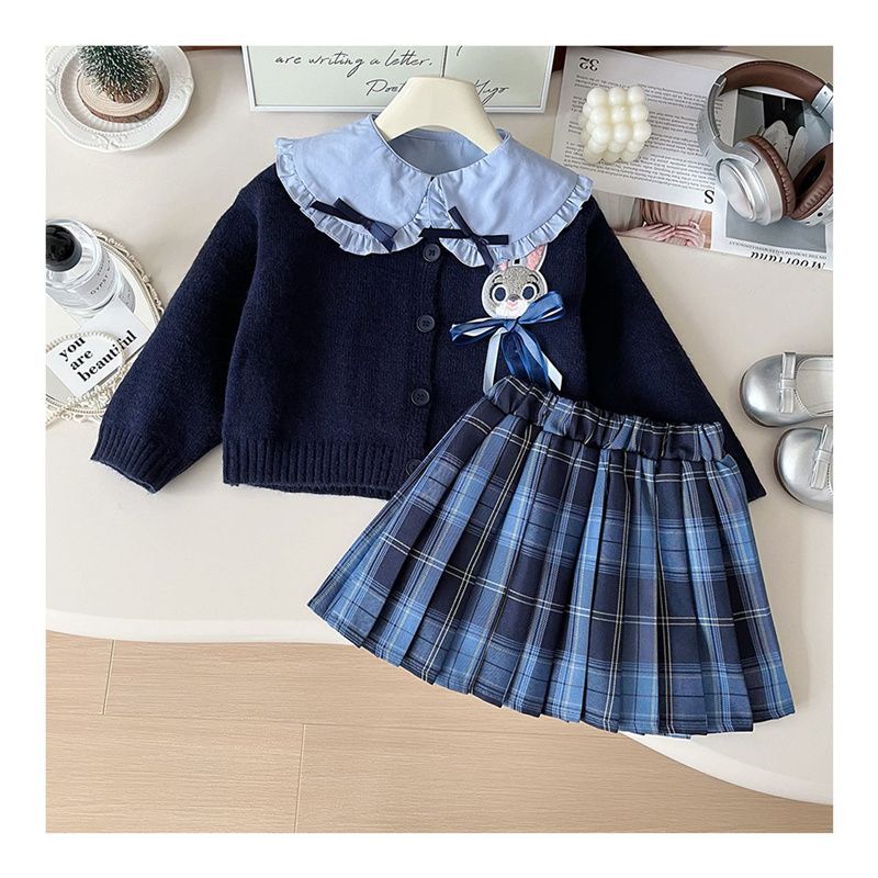 【재고 있음】여아 2025 신상 가을옷 세련된 토끼 경찰관 의상 니트 아동복 세트 여아 jk 스커트