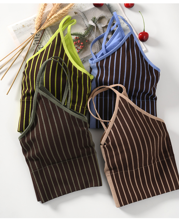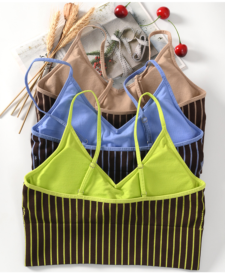 여성용 스파게티 스트랩 가슴 패드가 내장된 가슴 감싸는 스포츠 브라, 러닝용 내장 충격 방지 조절 가능한 서스펜더, 가슴 패드 포함스토어 가기