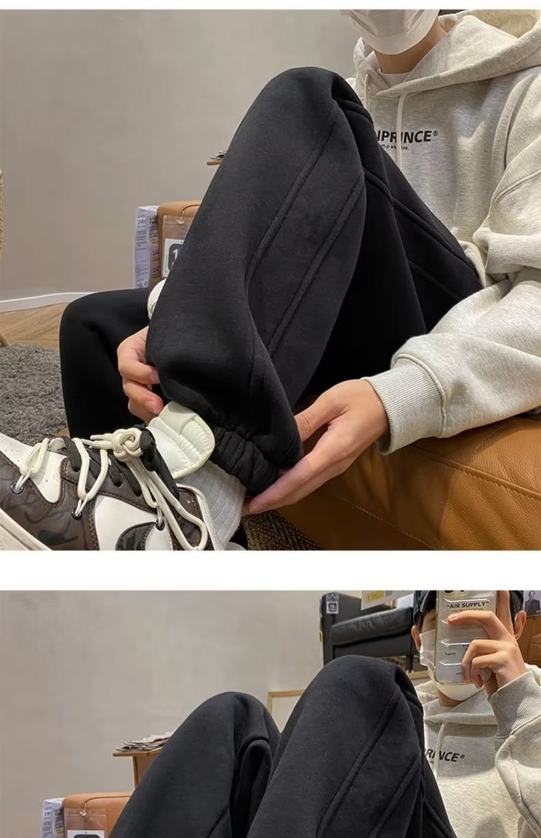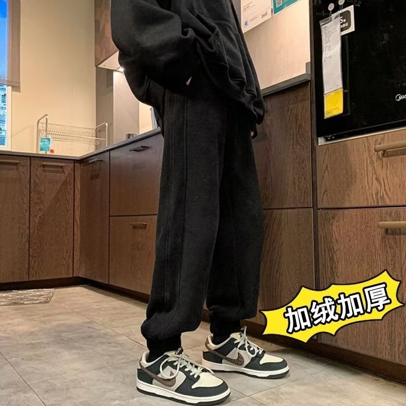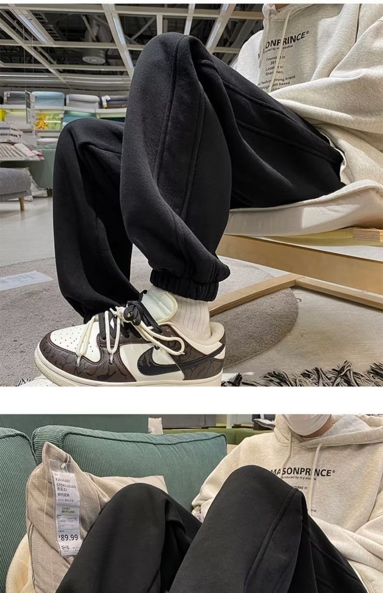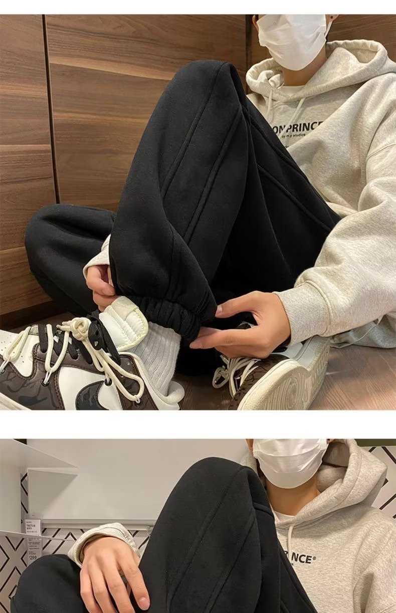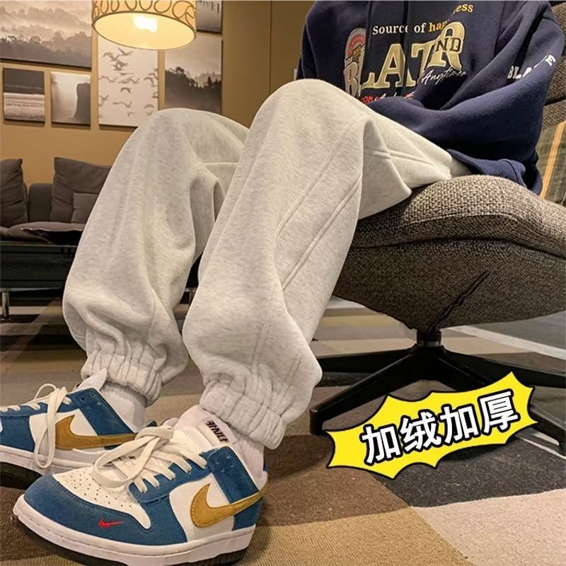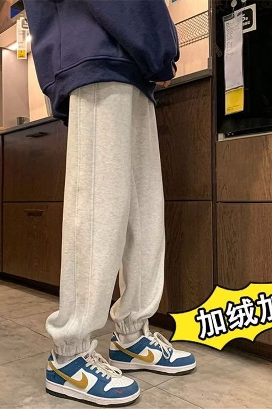 기모 운동복 남자 가을과 겨울 느슨한 바지 유행 스포츠 바지 청소년 Ins 홍콩 스타일 캐주얼 바지 자른 바지
