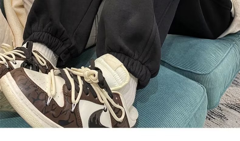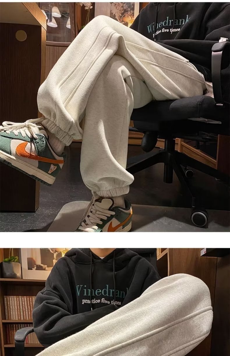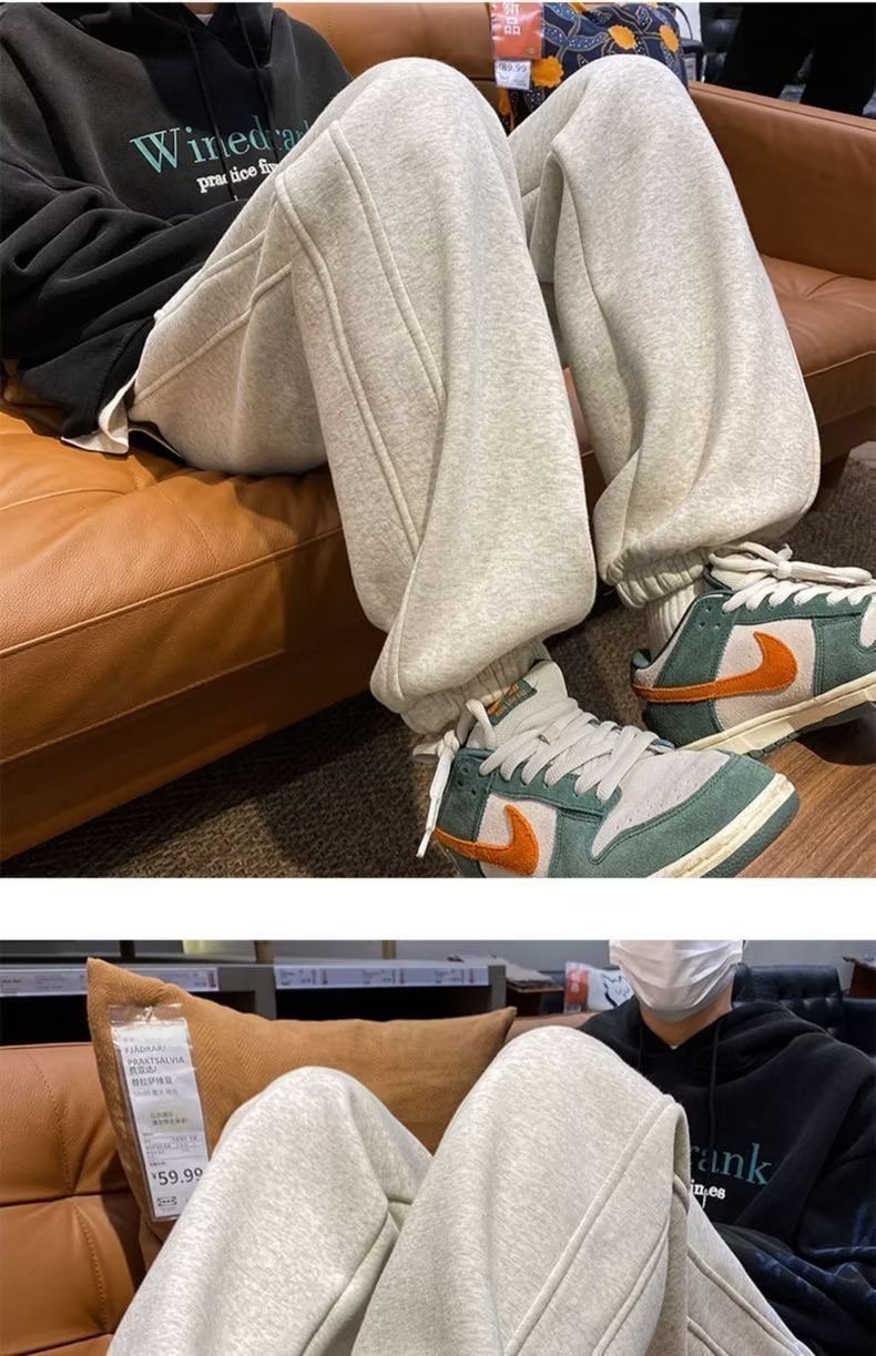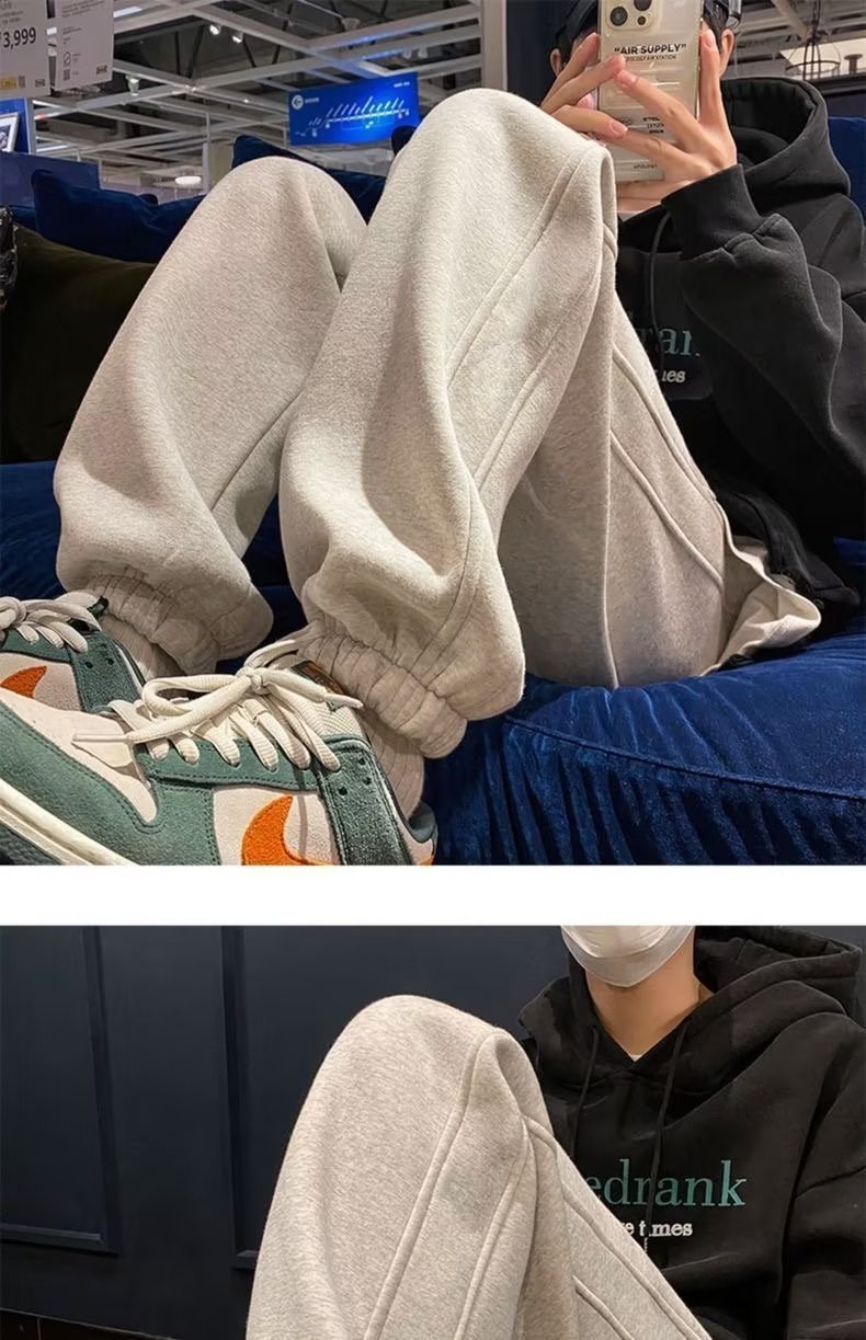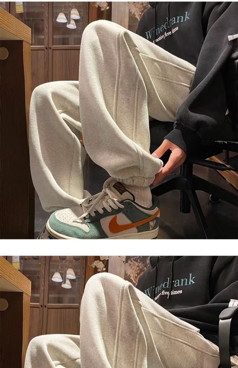 기모 운동복 남자 가을과 겨울 느슨한 바지 유행 스포츠 바지 청소년 Ins 홍콩 스타일 캐주얼 바지 자른 바지