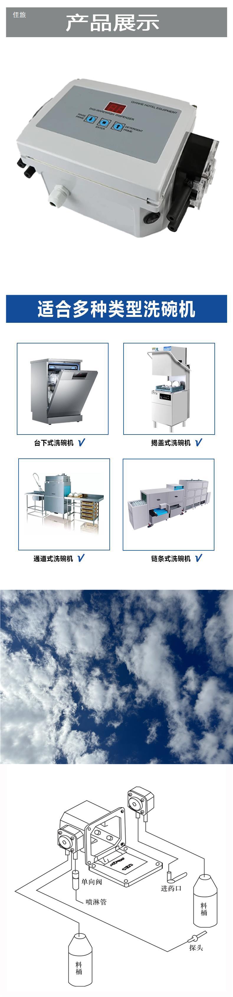상업용 식기 세척기 건조제 디스펜서가있는 자동 액체 세제 식기 세척기 용 액체 흡입기 액체 디스펜서