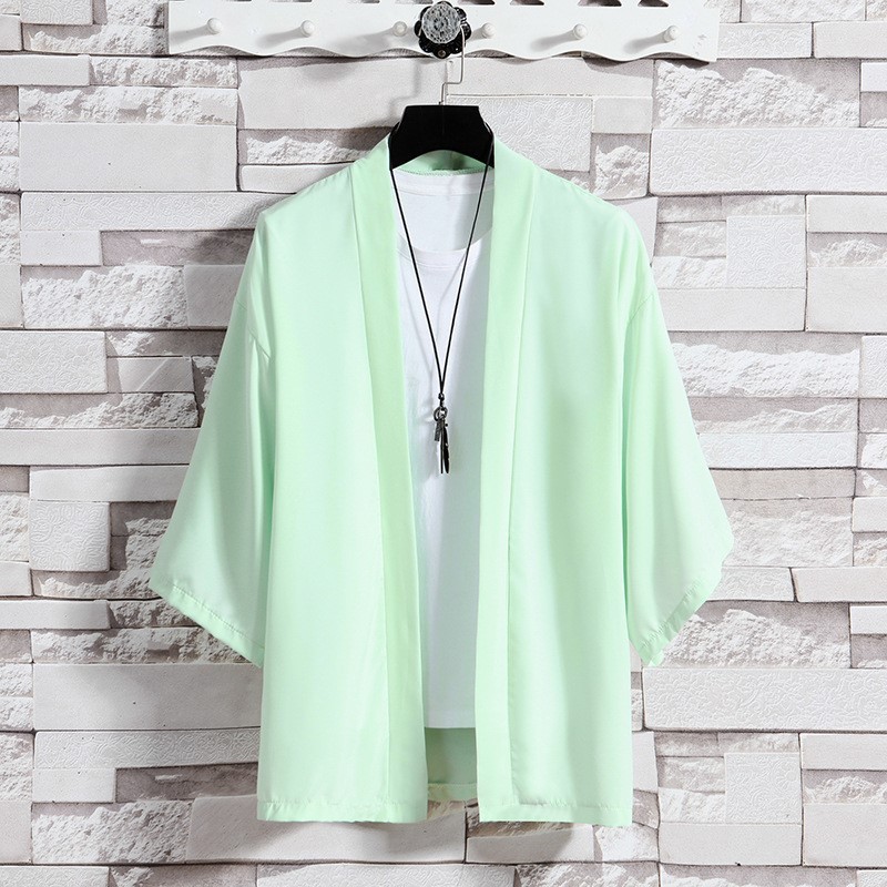국경 간 중국 스타일 셔츠 남자 아이스 실크 얇은 케이프 솔리드 컬러 버클 카디건 한푸 남자의 느슨한 자외선 차단 재킷