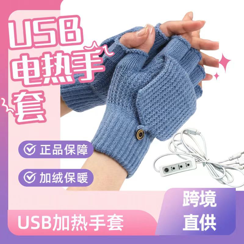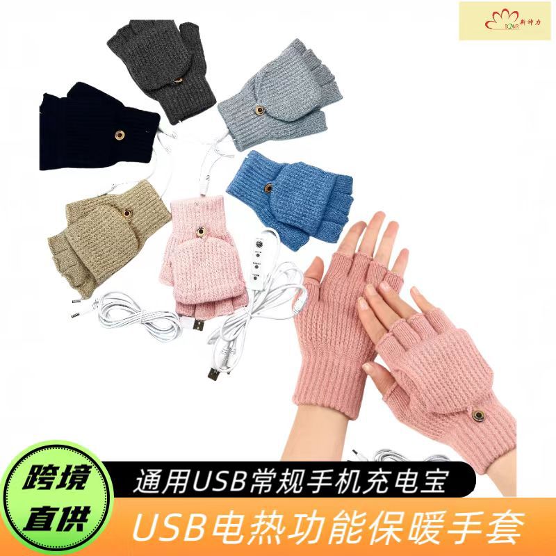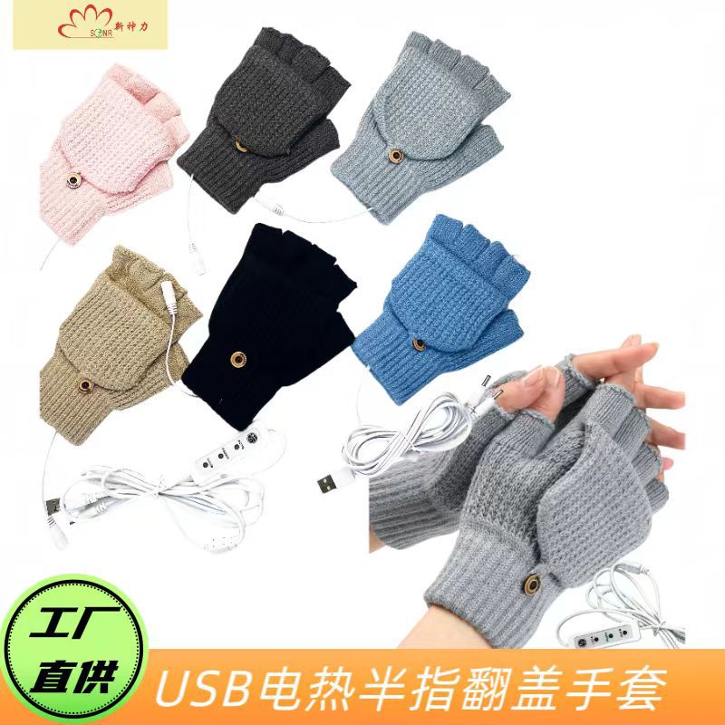 USB 전기 스트라이프 플립 울 따뜻한 장갑 국경 새 반 손가락 남성과 여성의 가을 및 겨울 쓰기 오픈 손가락 팔 커버스토어 가기
